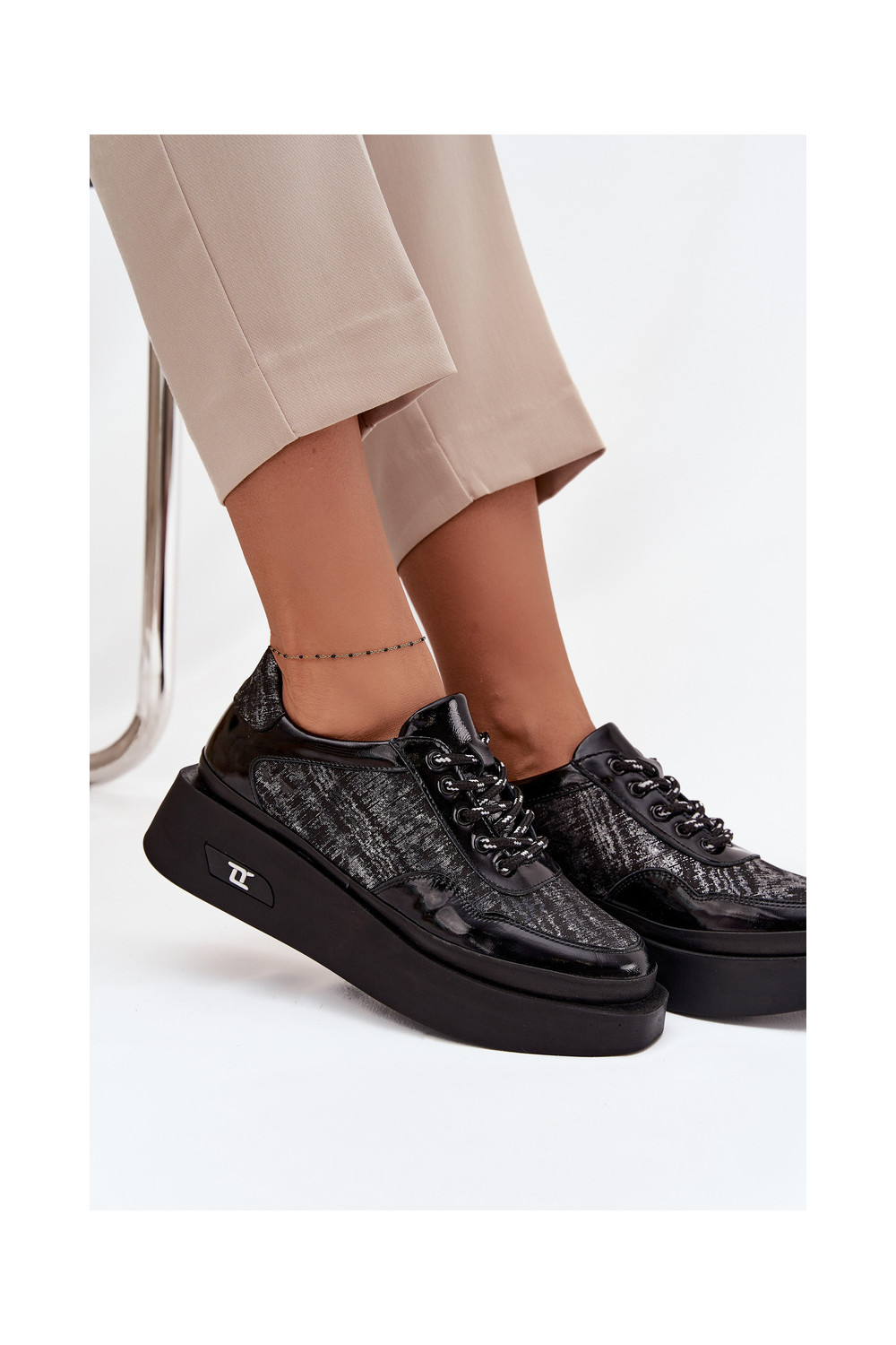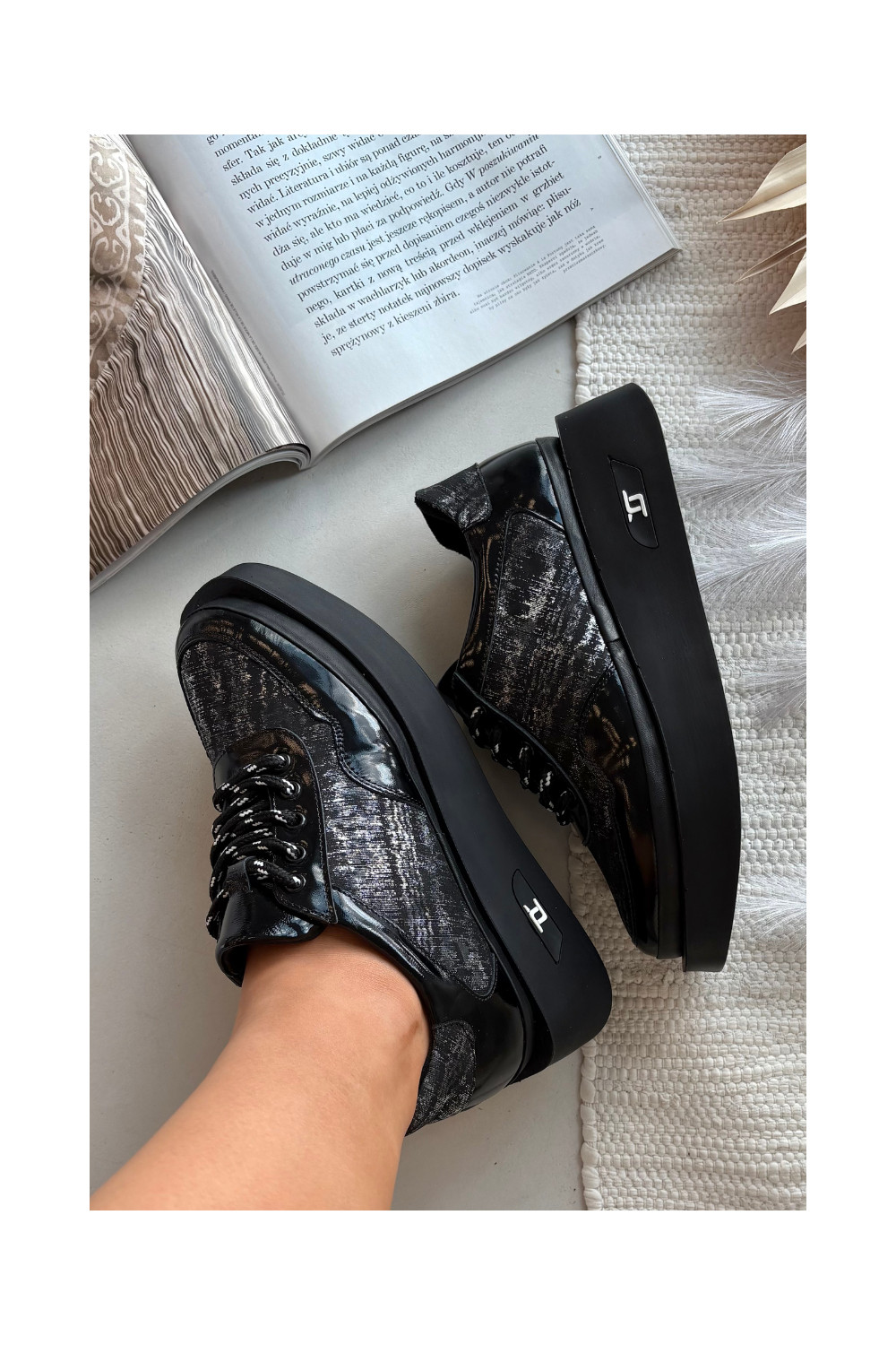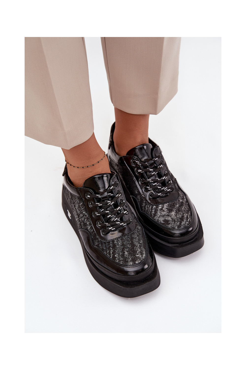 Nahast naiste sidumisjalatsid platvormiga Artiker 57C2043, must ja hõbe