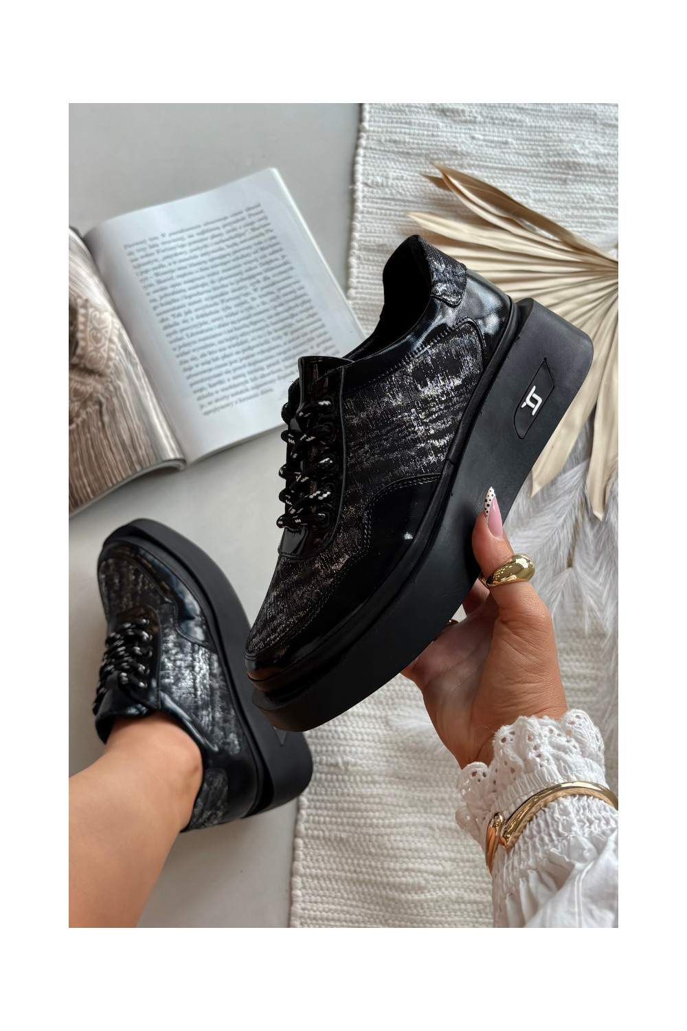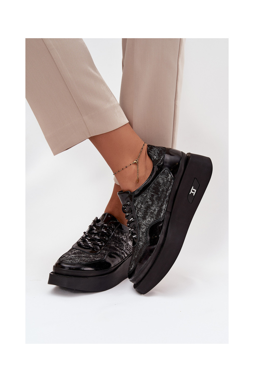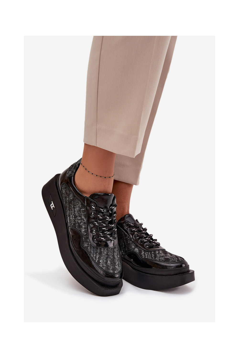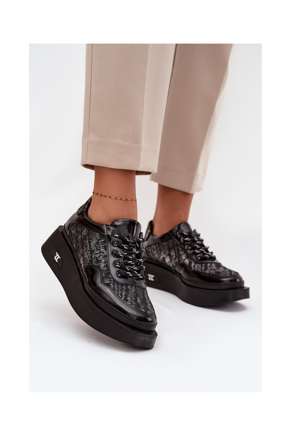 Nahast naiste sidumisjalatsid platvormiga Artiker 57C2043, must ja hõbe