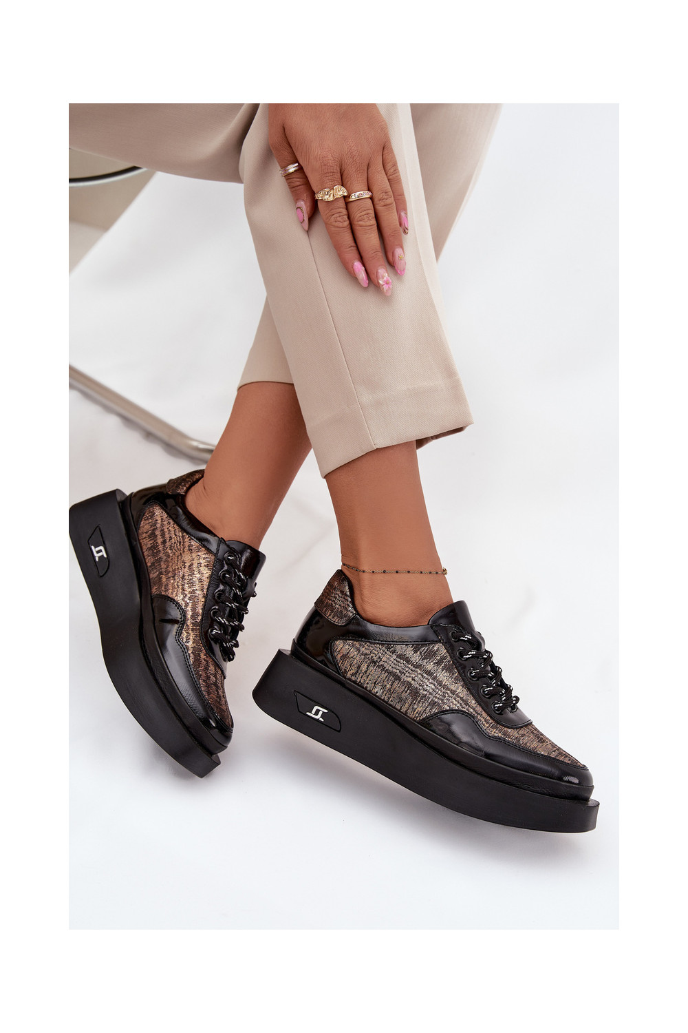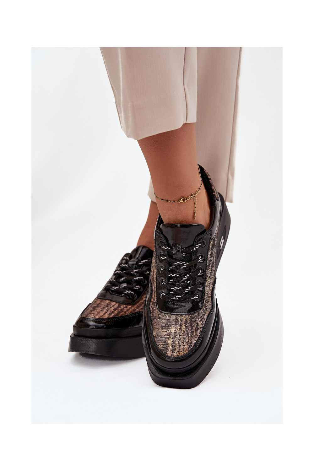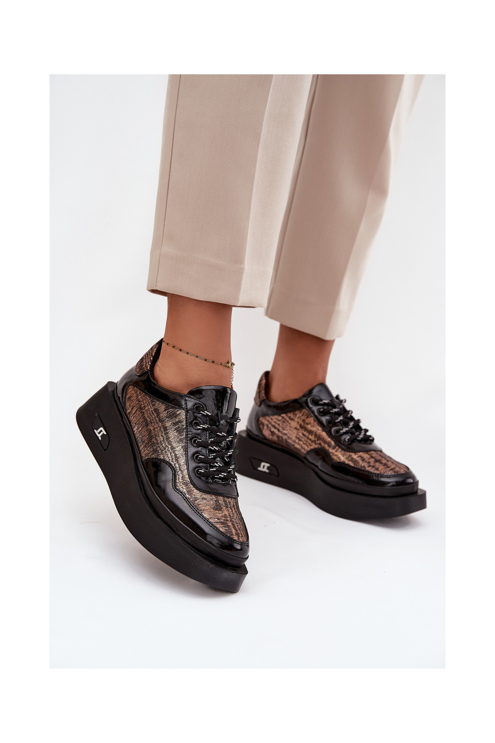 Nahast naiste sidumisjalatsid platvormiga Artiker 57C2044, must