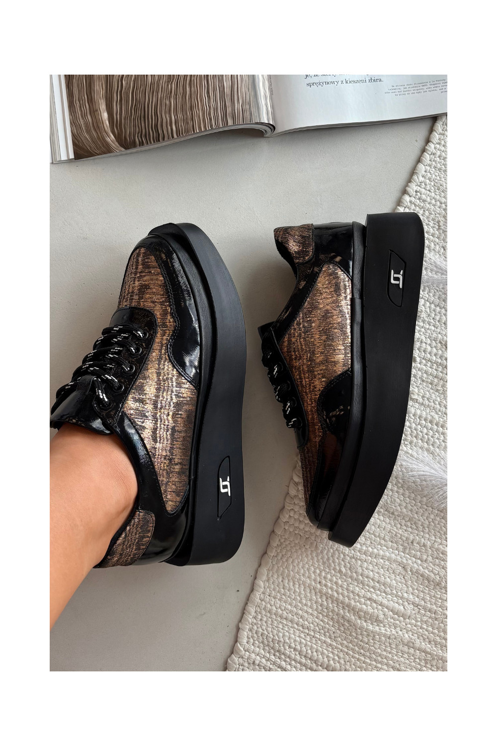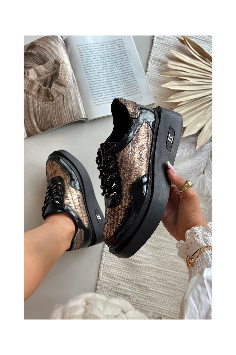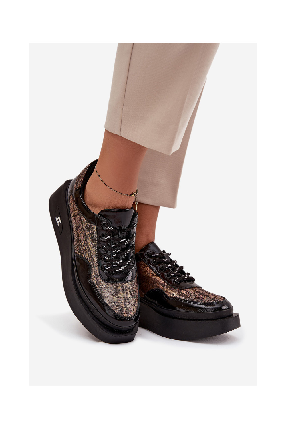 Nahast naiste sidumisjalatsid platvormiga Artiker 57C2044, must