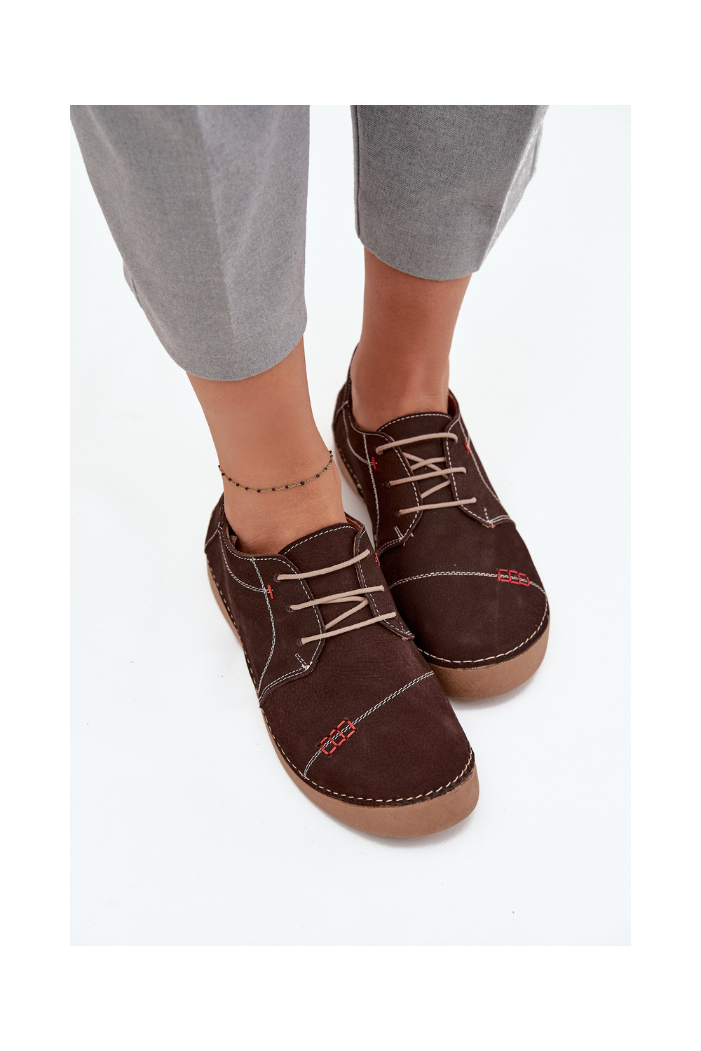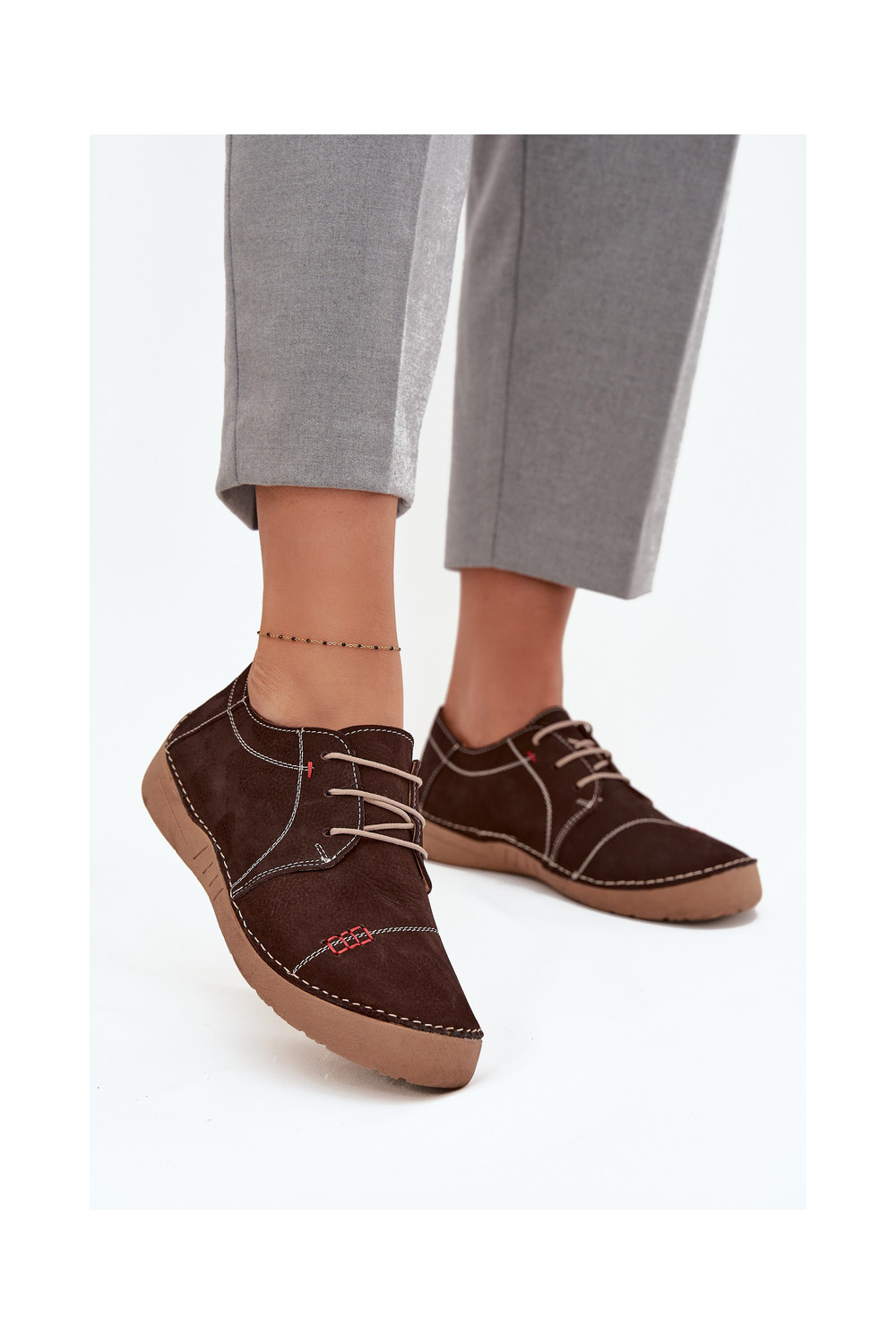 Nahast naiste jalatsid õmblustega Artiker 57C2114, pruun