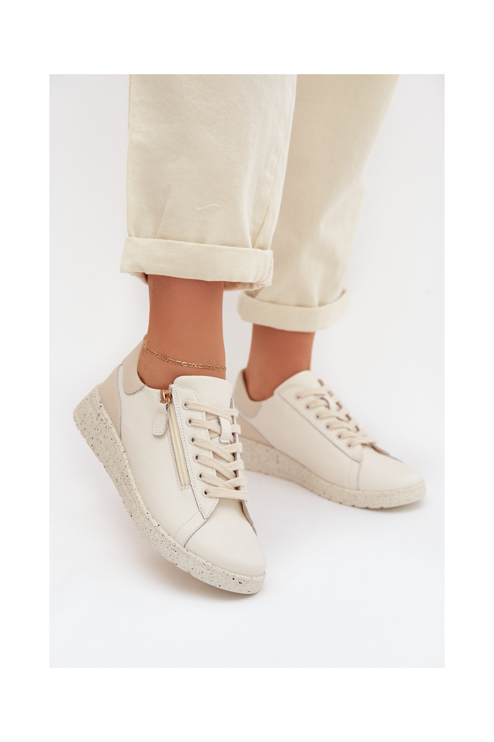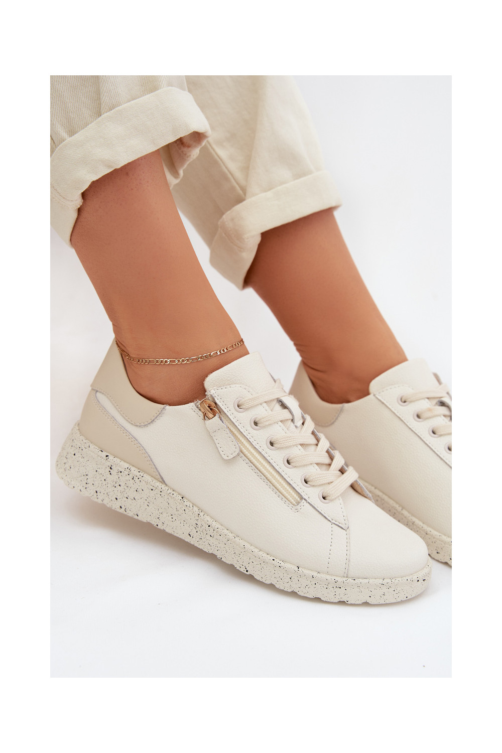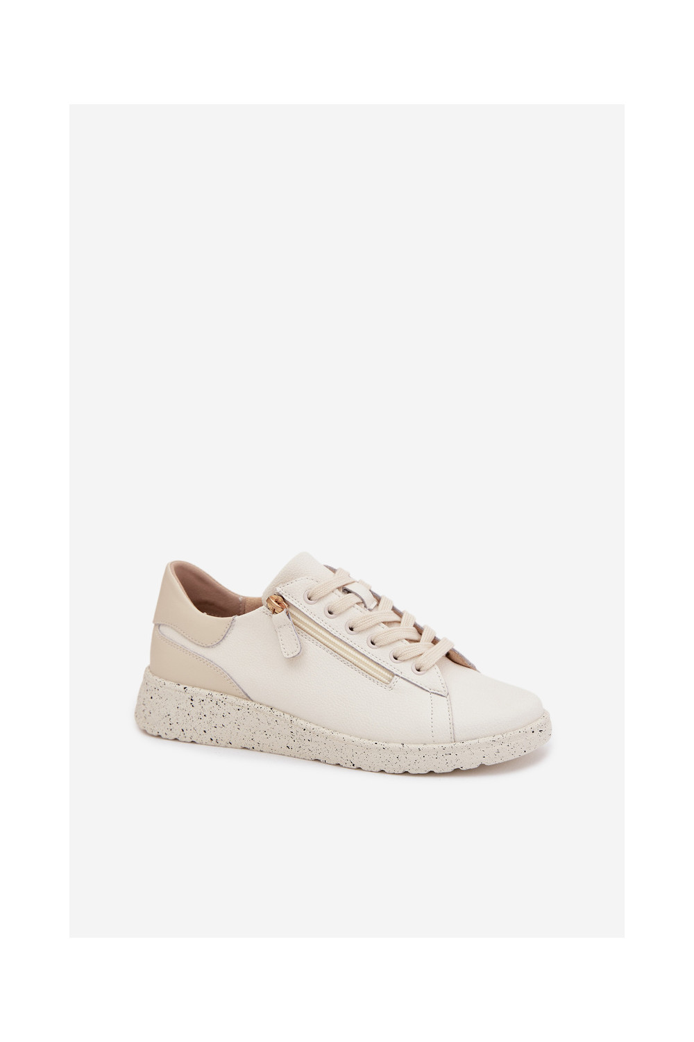 Leather Women's Loafers with Zipper Beige Dorothea
