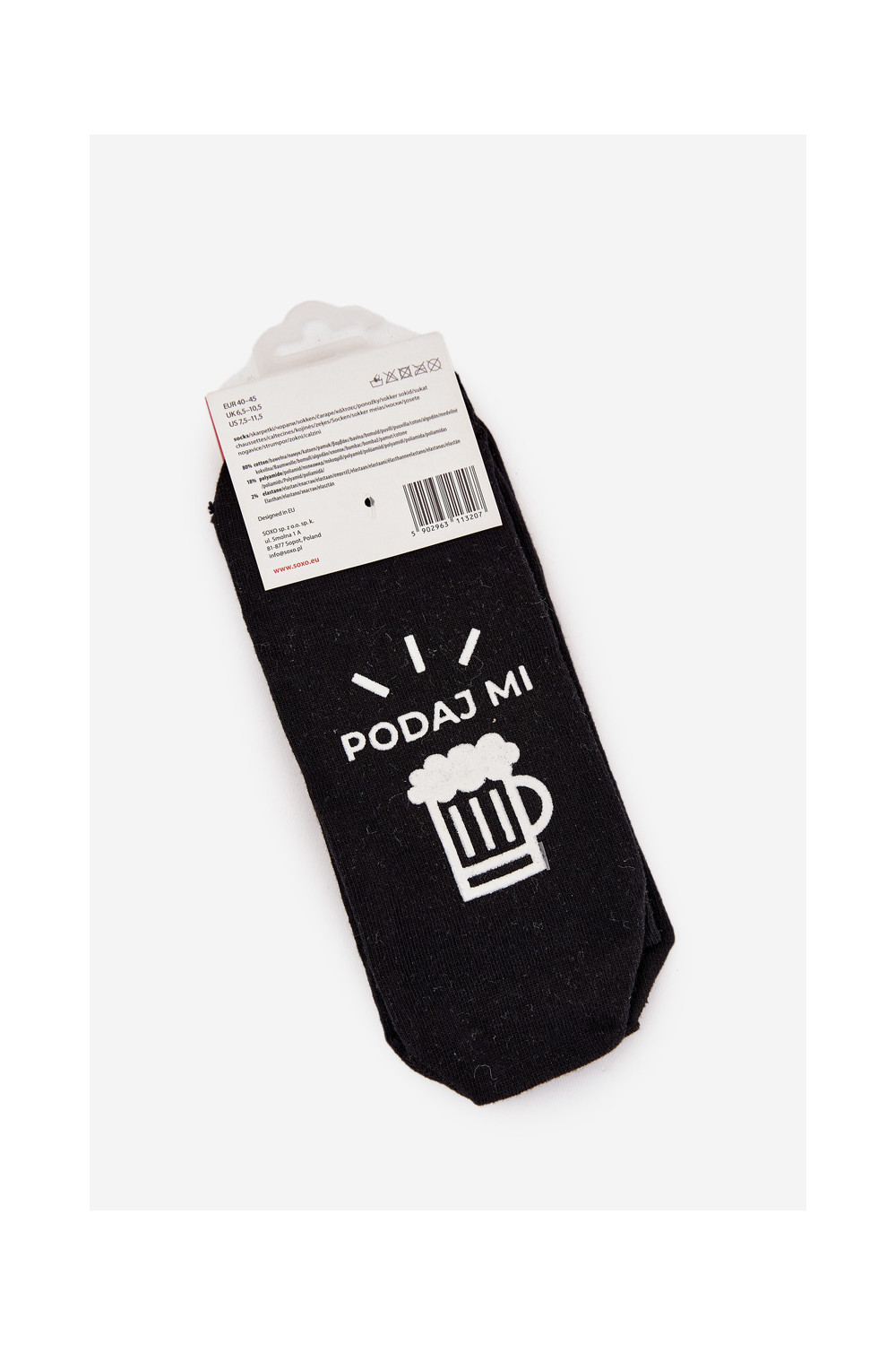 Meeste sokid, millel on kiri "Anna mulle õlut" musta värvi