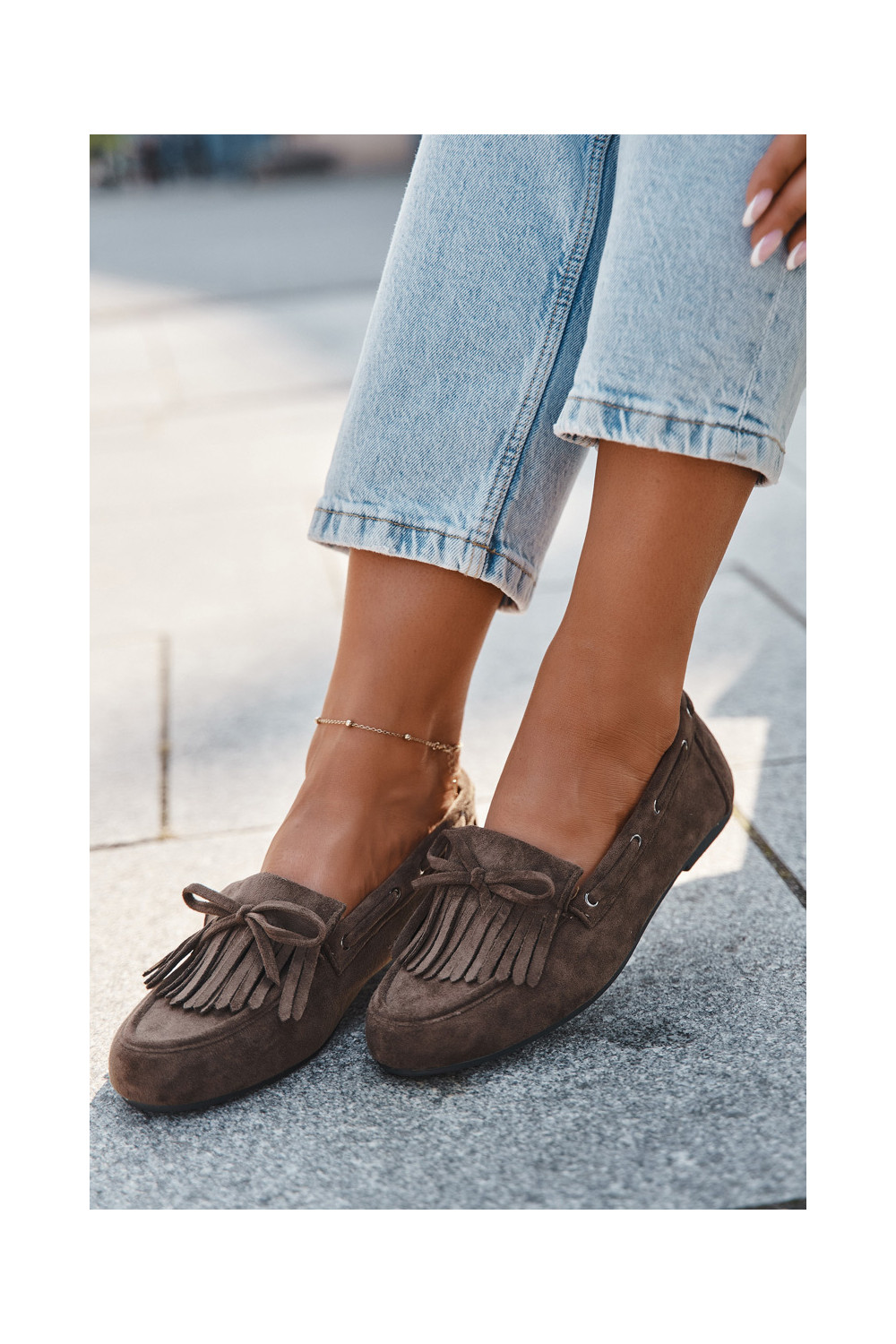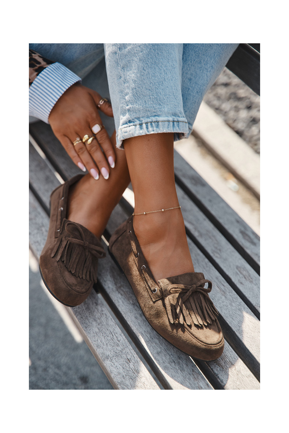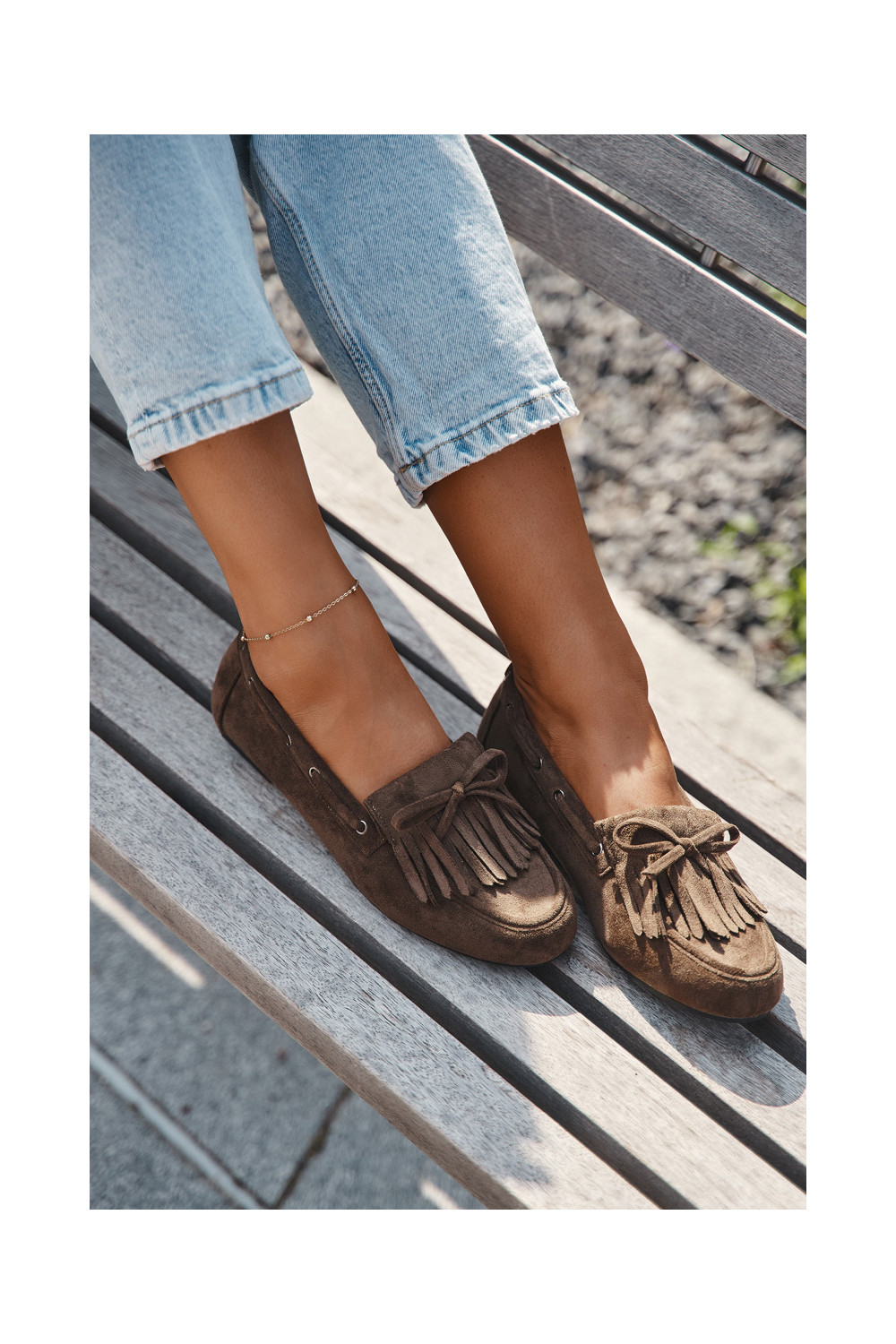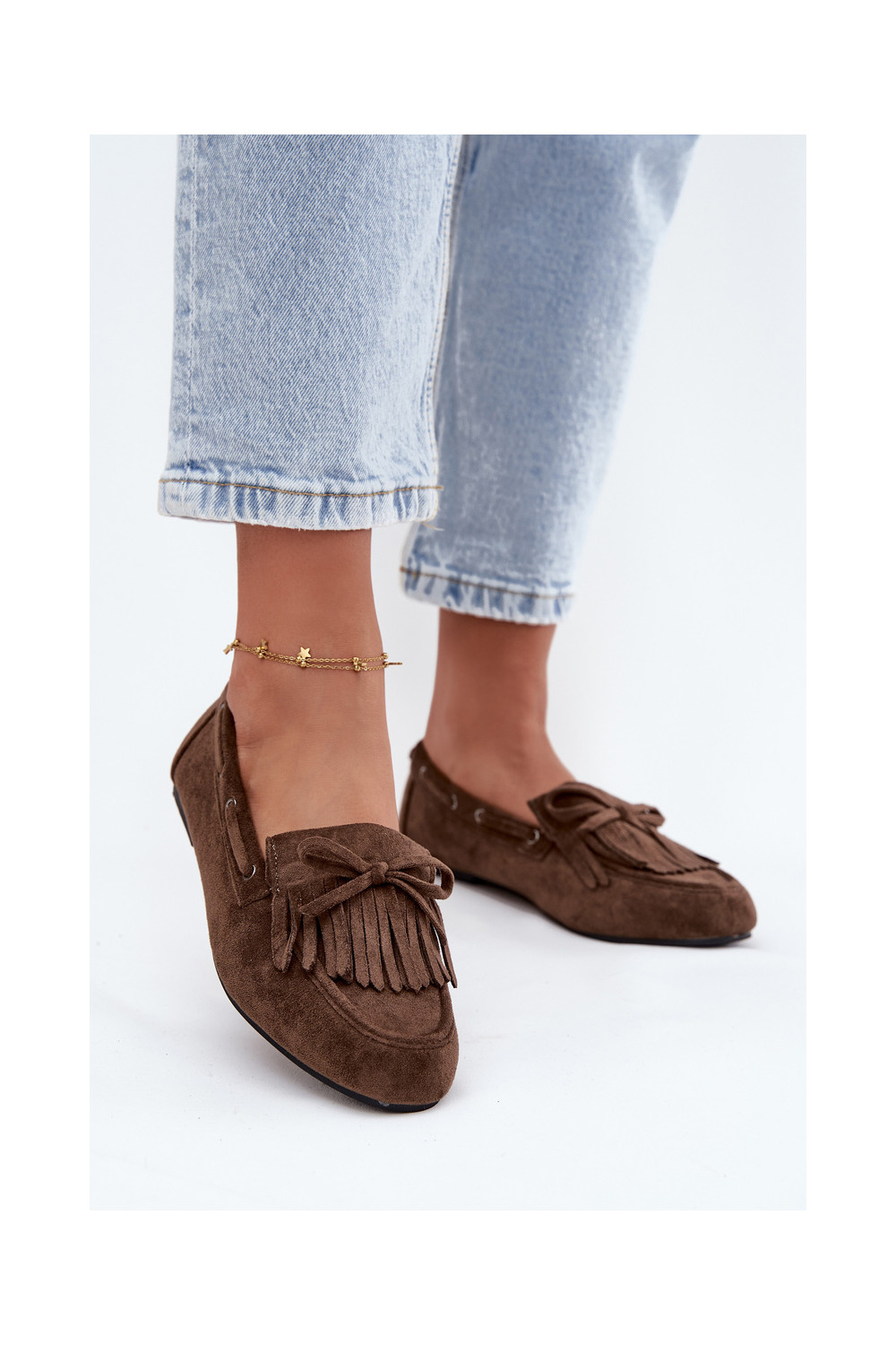 Naiste mokasiinid franskeeride ja kokardaga khaki värvi "Olivianne"
