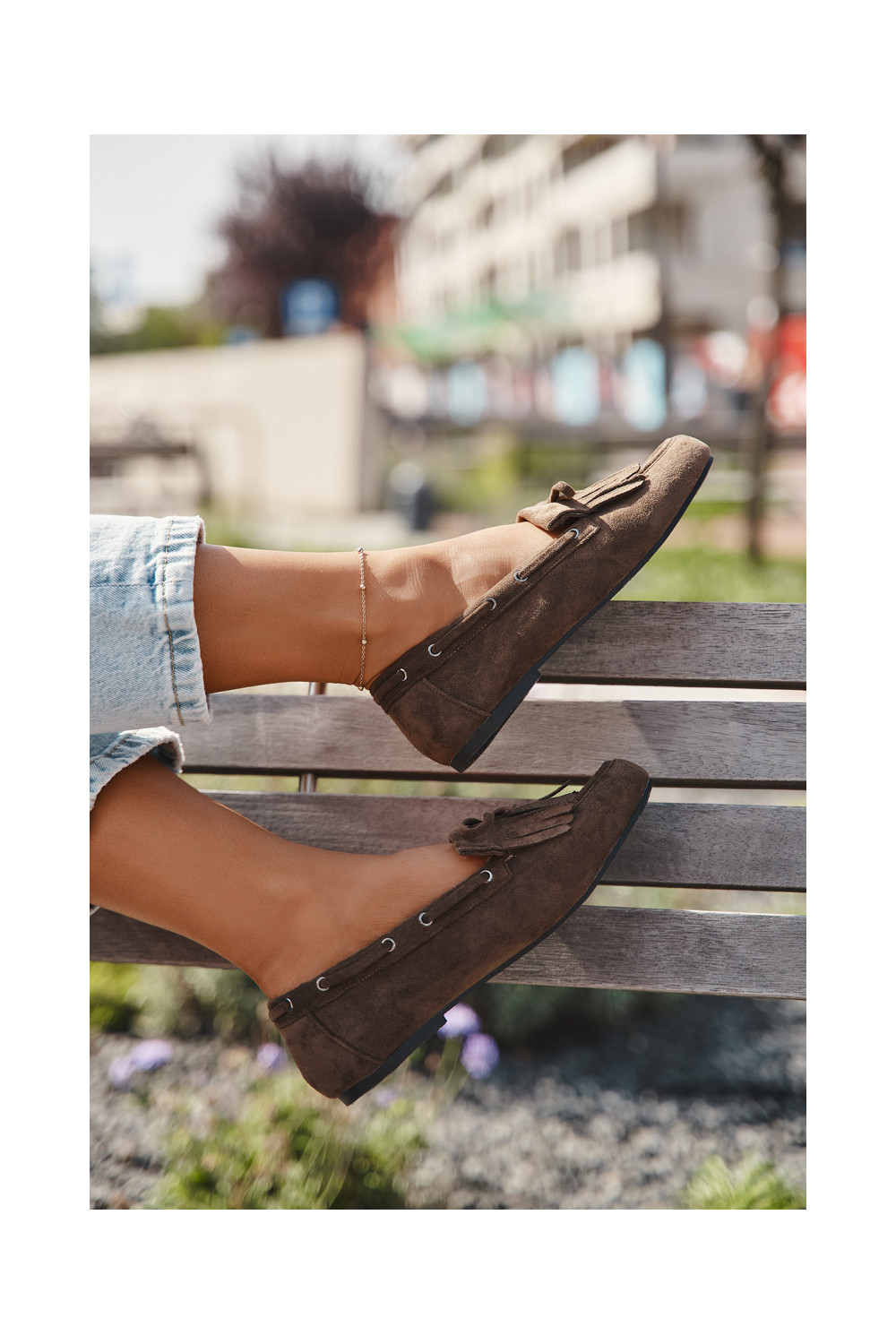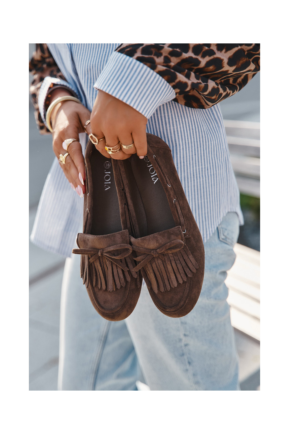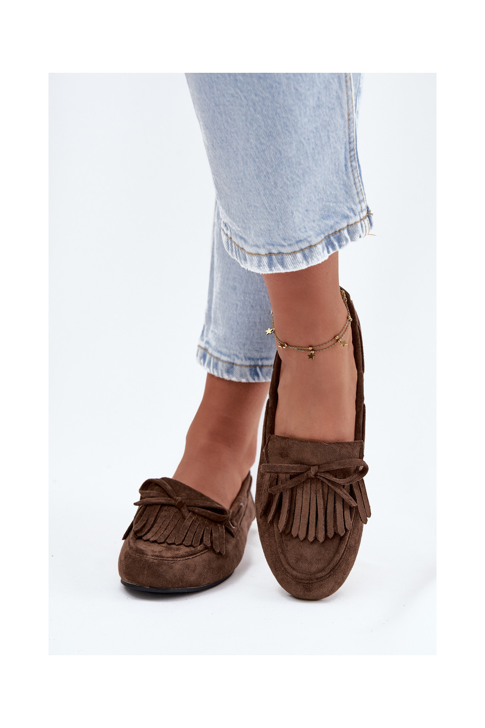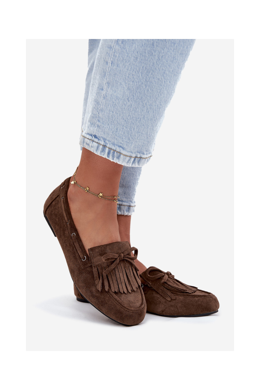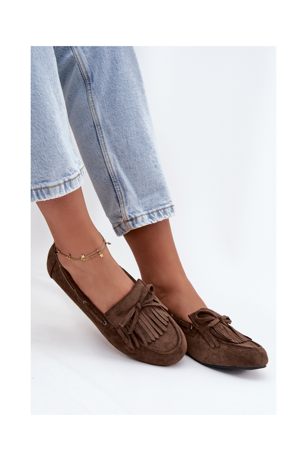Naiste mokasiinid franskeeride ja kokardaga khaki värvi "Olivianne"