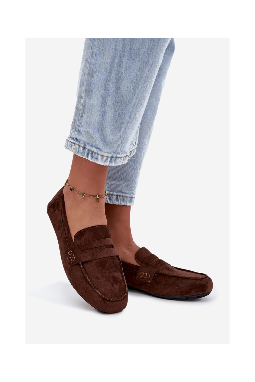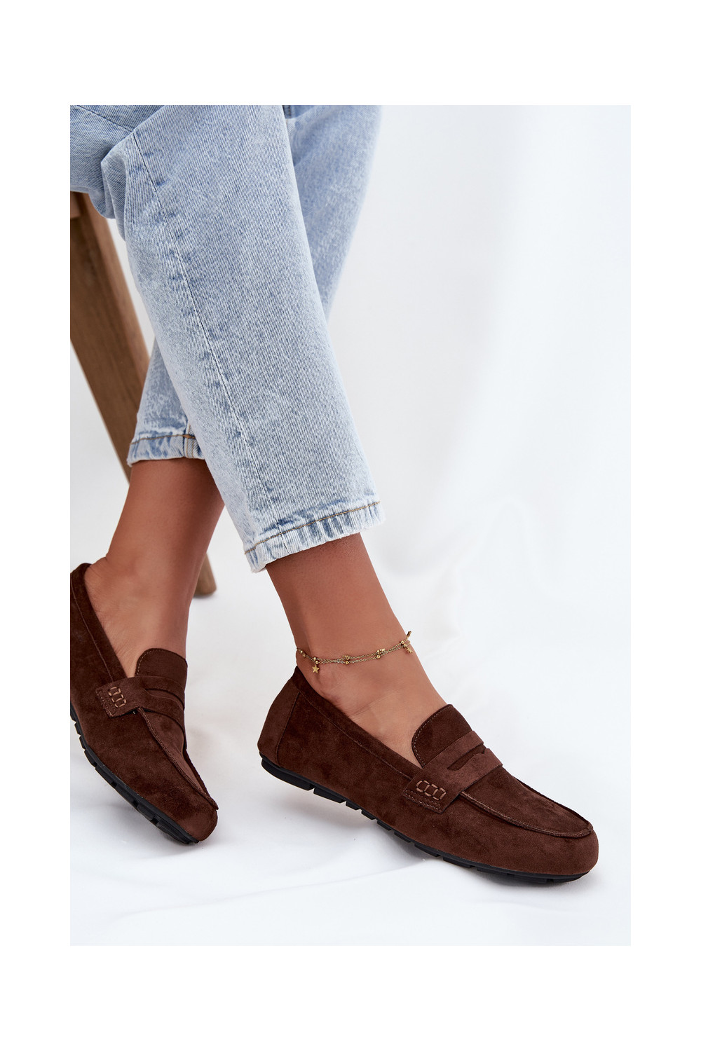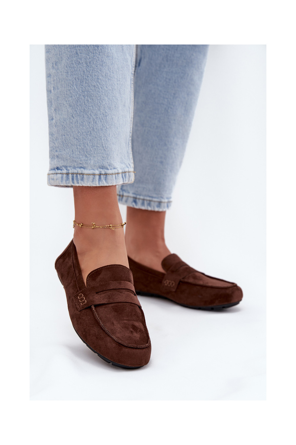 Naiste tasapinnalised mokasiinid tumepruuni värvi "Soreline"