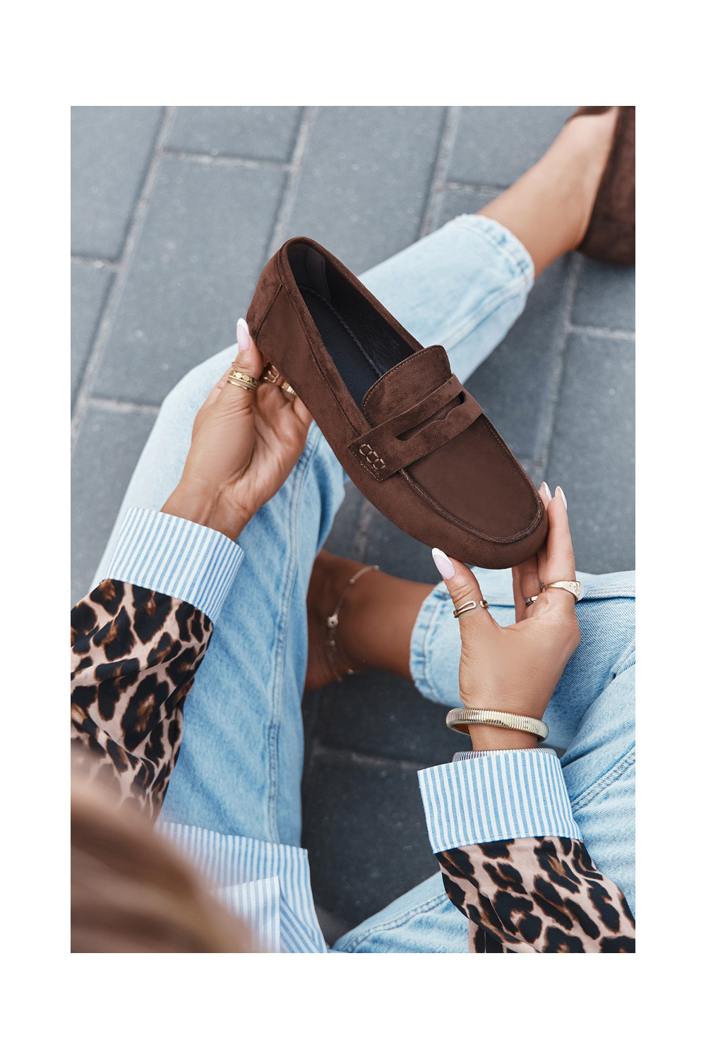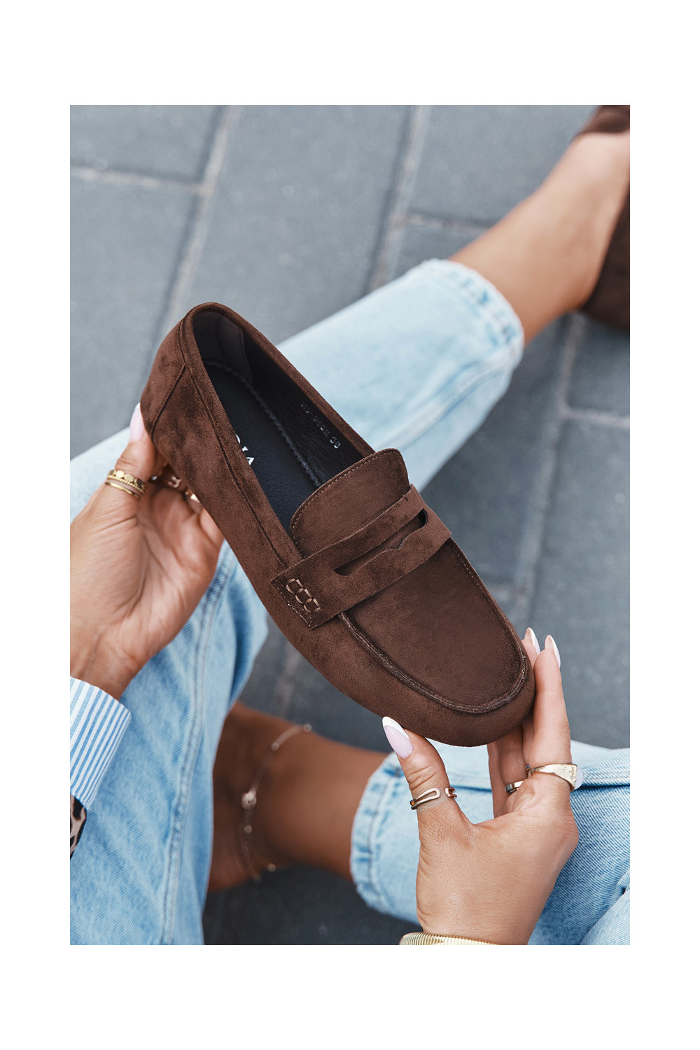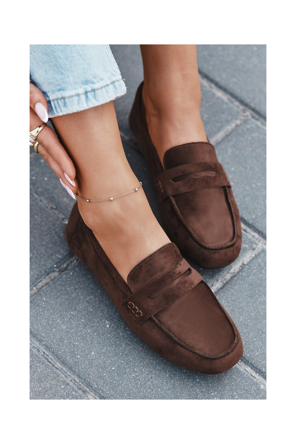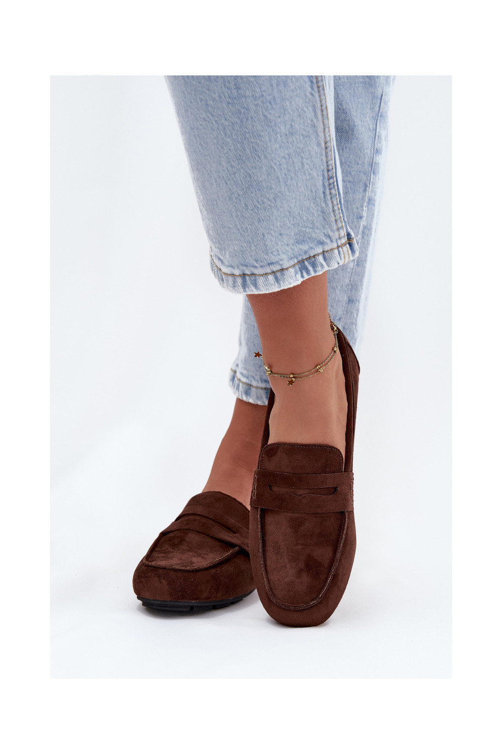 Naiste tasapinnalised mokasiinid tumepruuni värvi "Soreline"