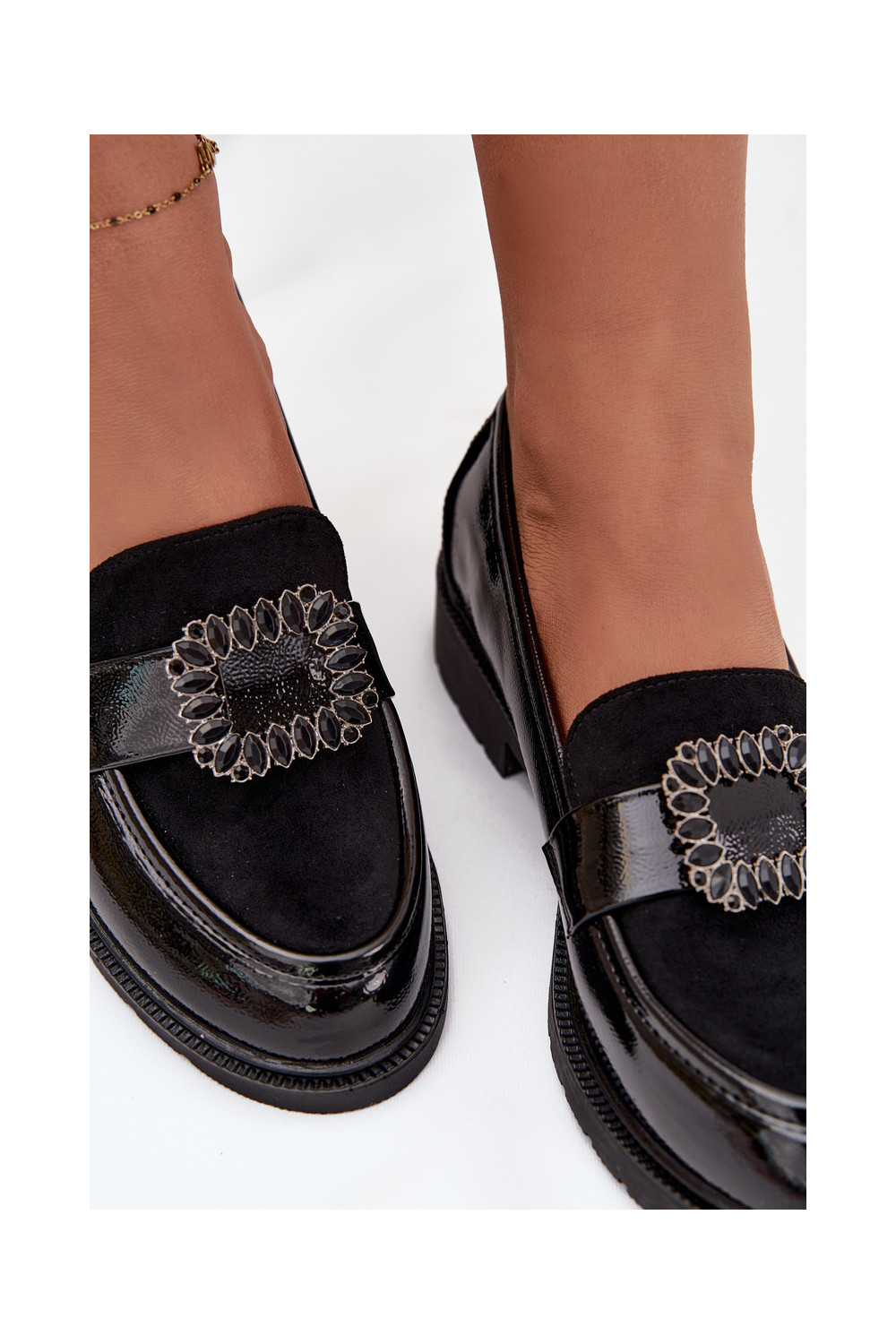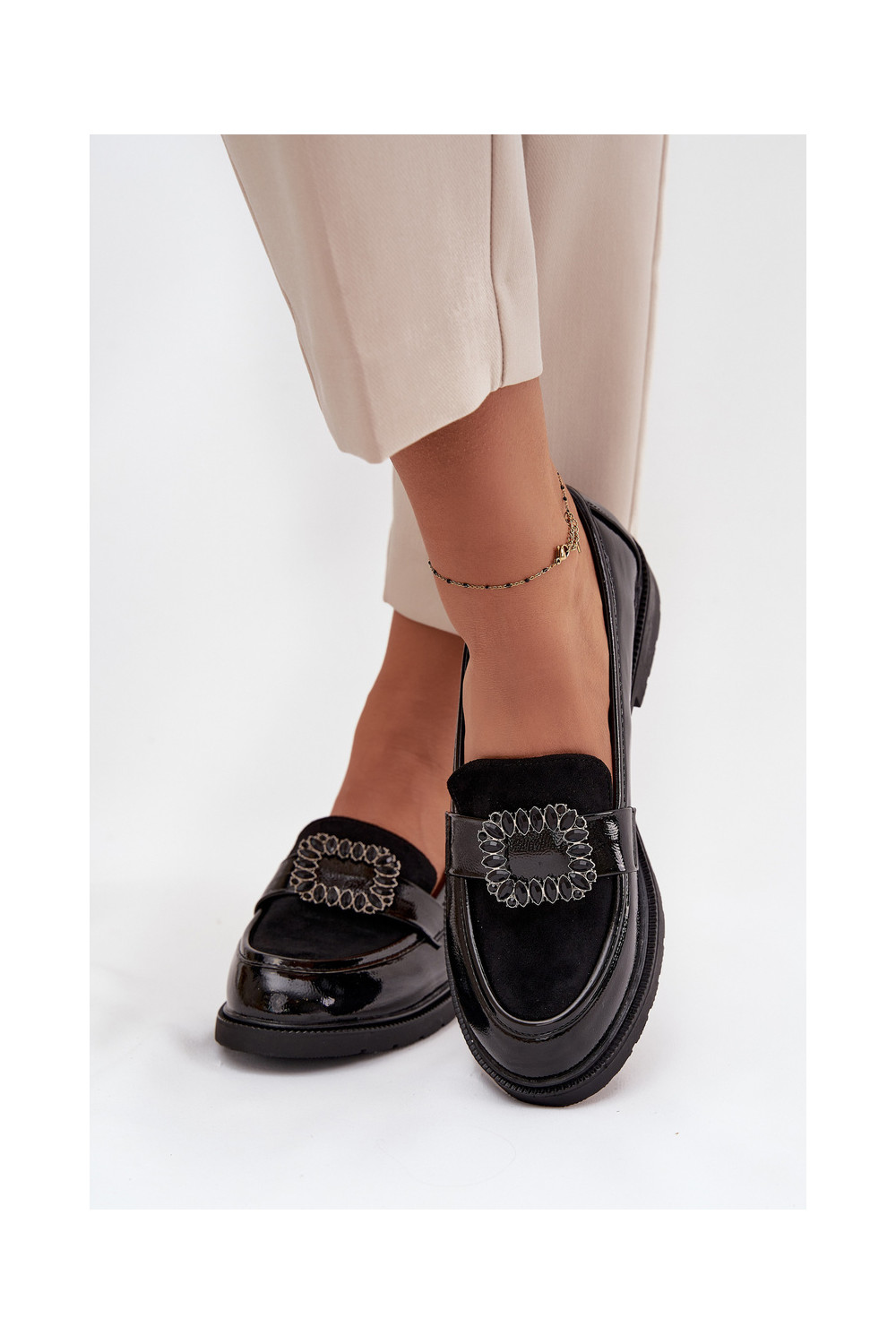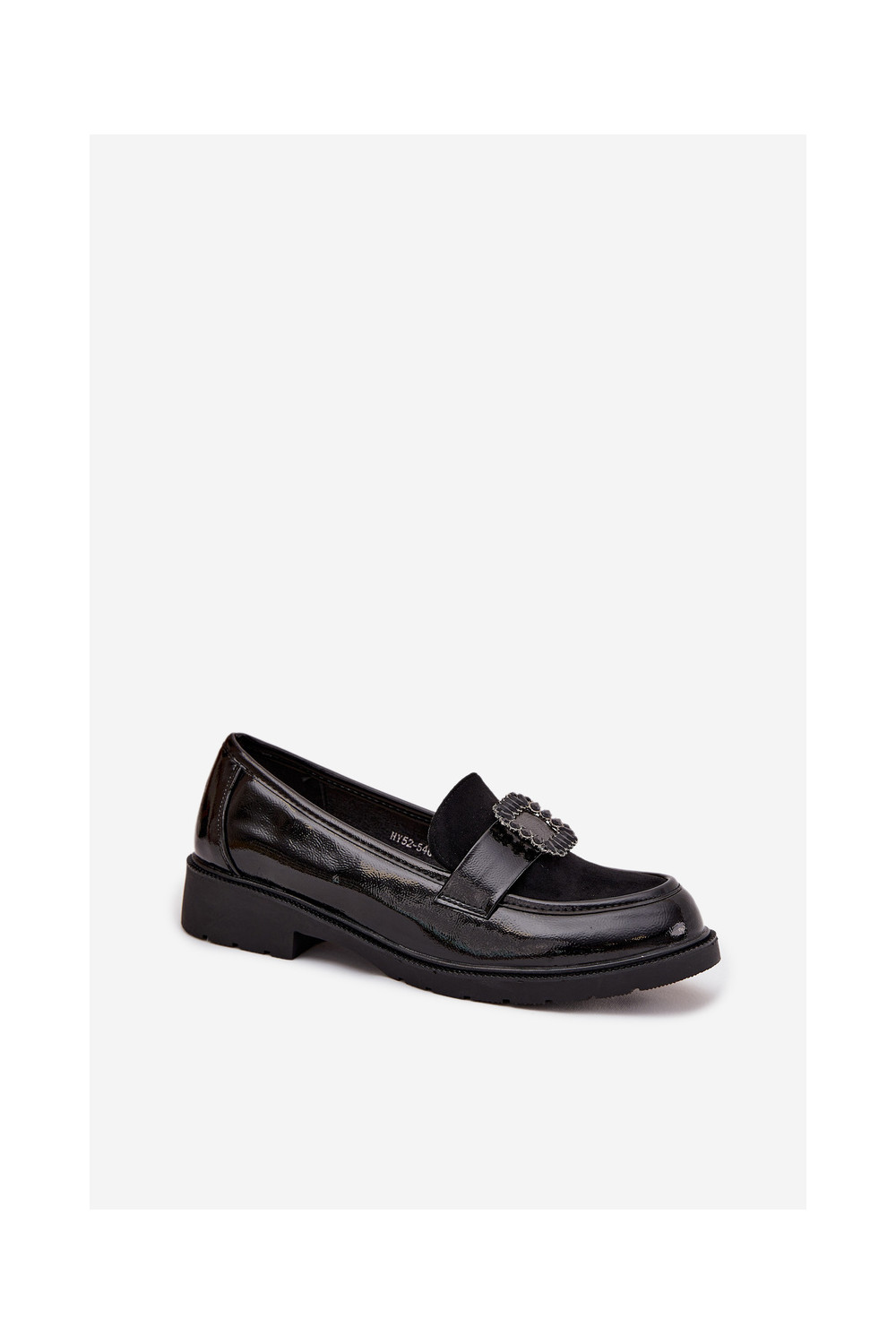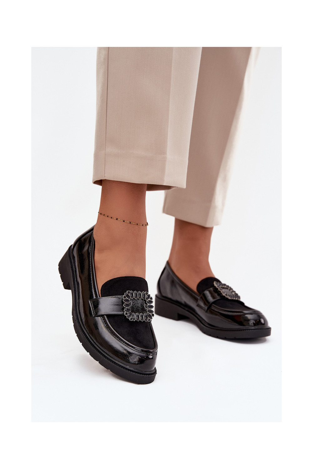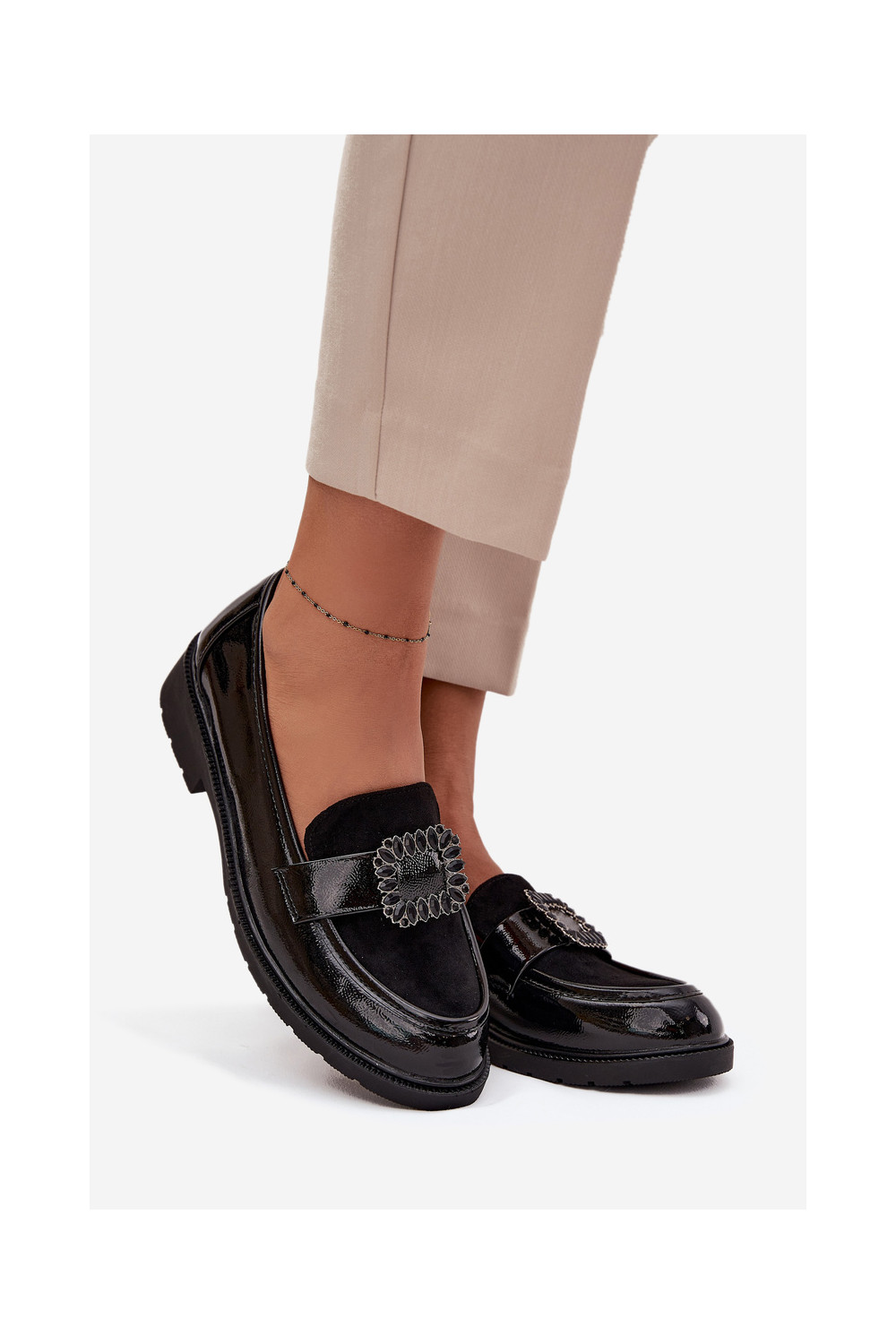 S.Barski HY52-546 mustad lakk-nahast naiste mokasiinid kaunistatud nööpidega