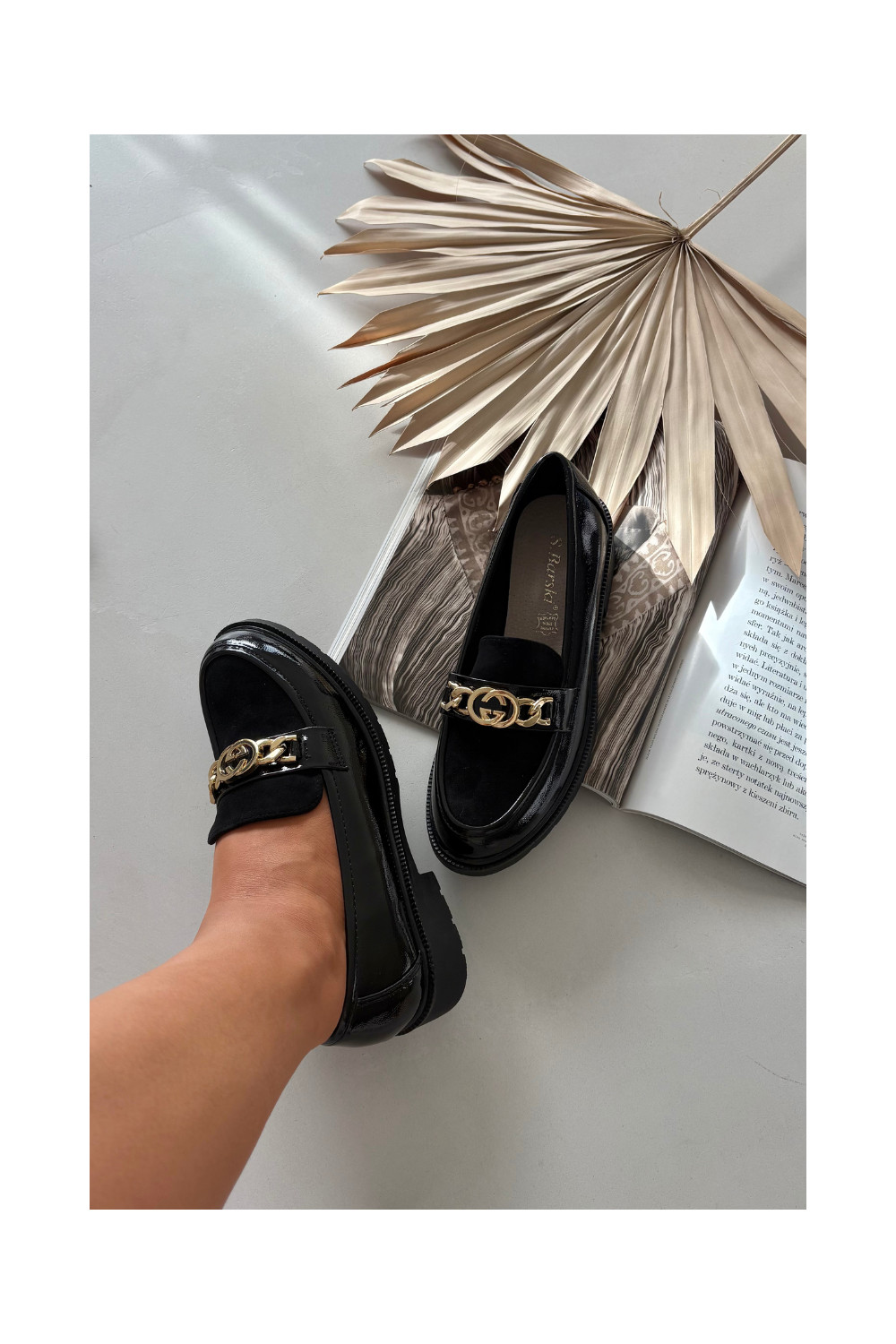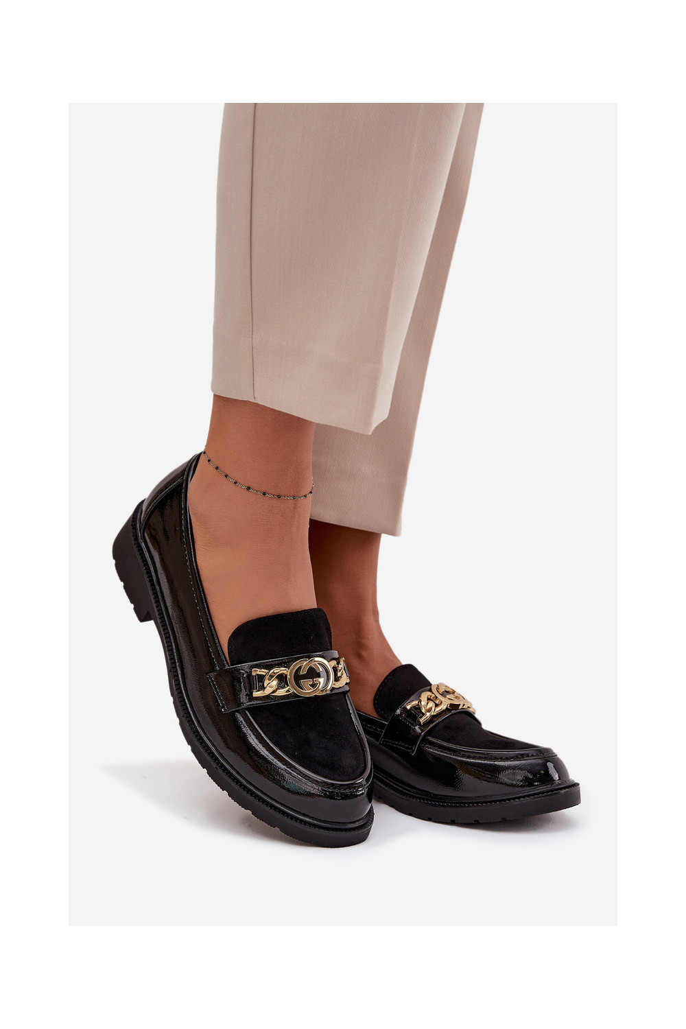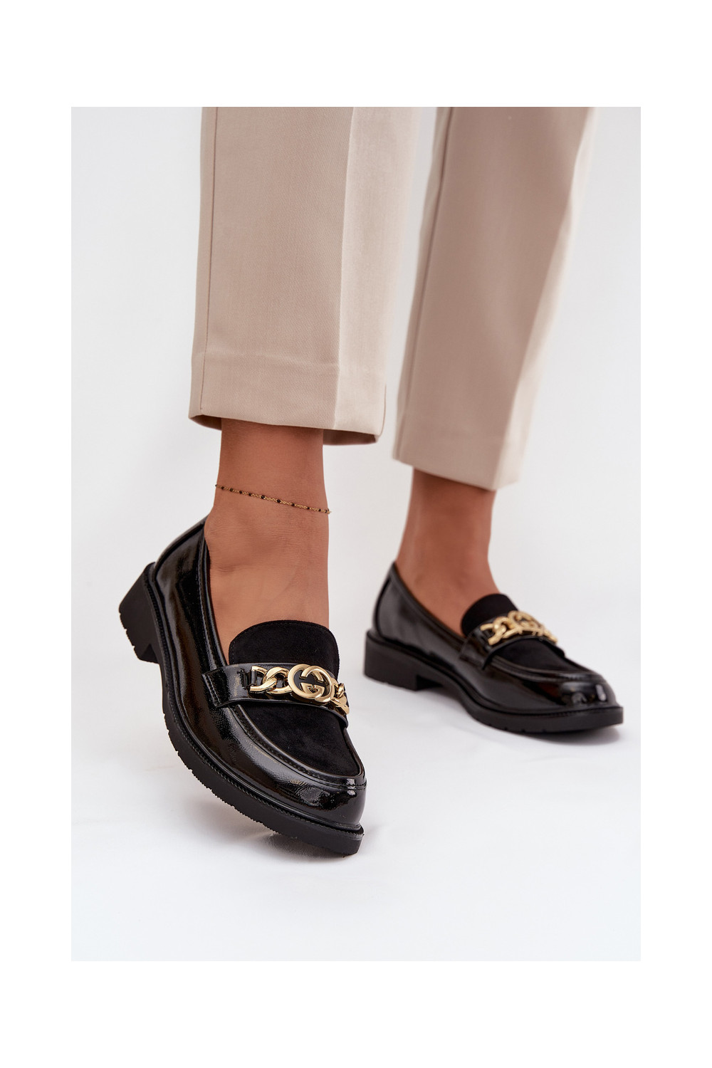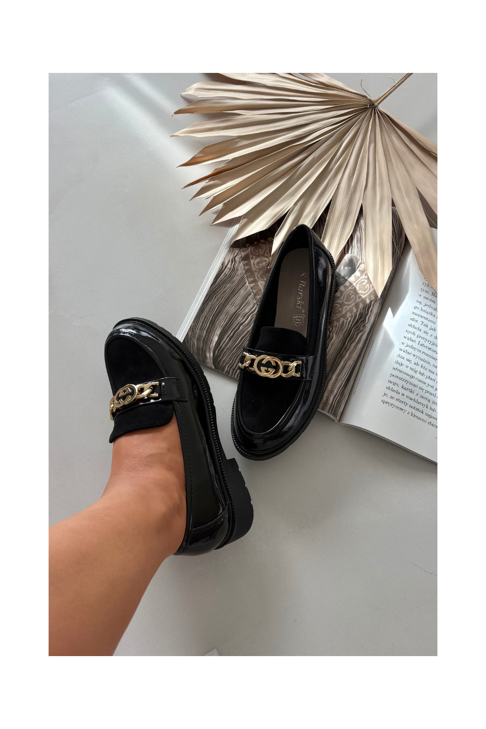 Läikivad naiste mokasiinid kuldsete detailidega S.Barski HY52-540 musta värvi