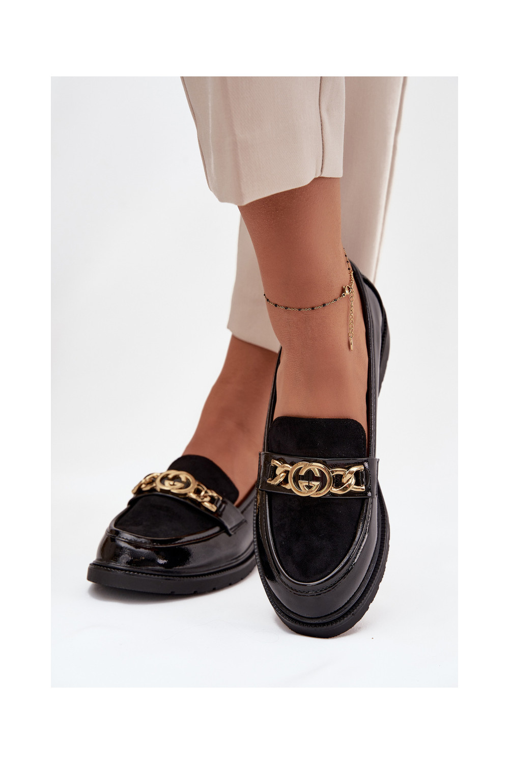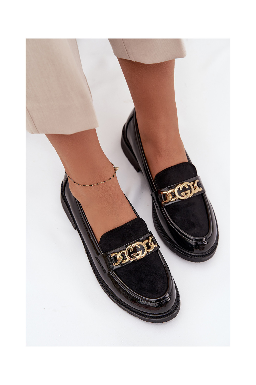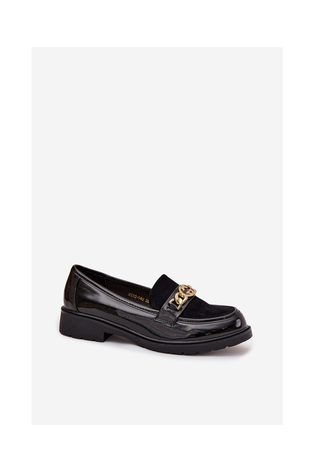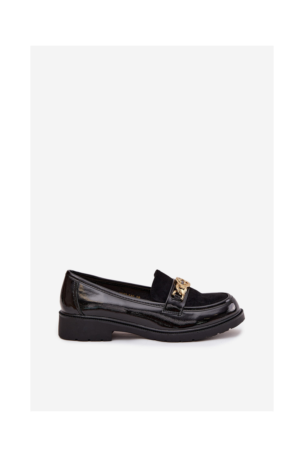 Läikivad naiste mokasiinid kuldsete detailidega S.Barski HY52-540 musta värvi