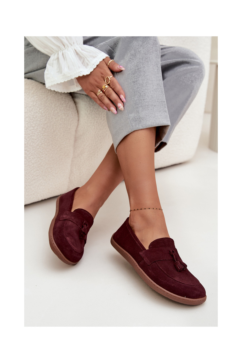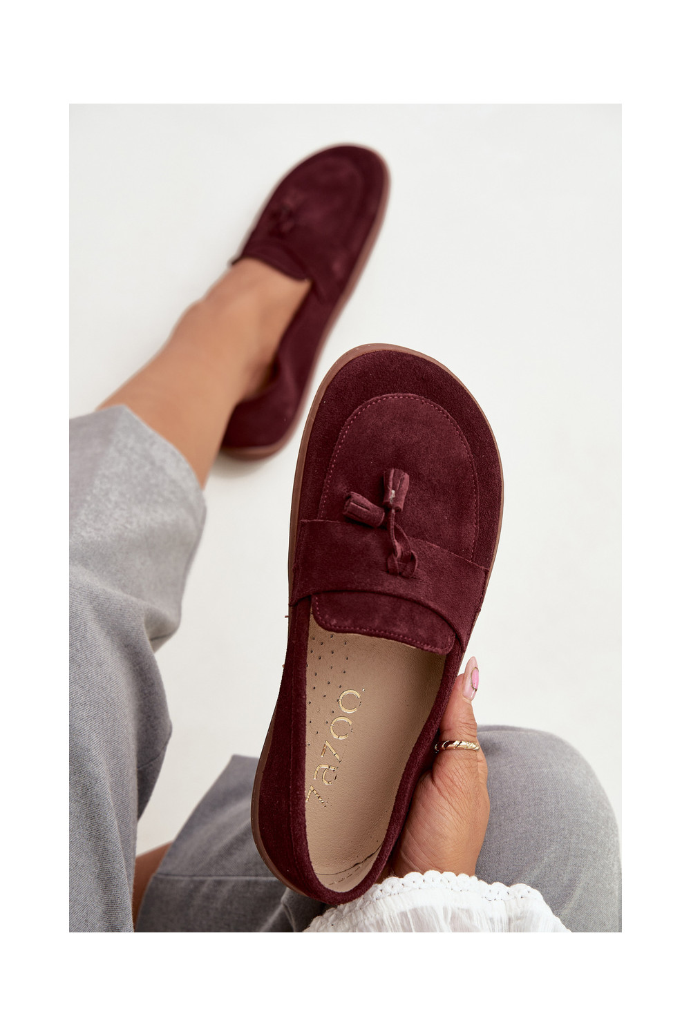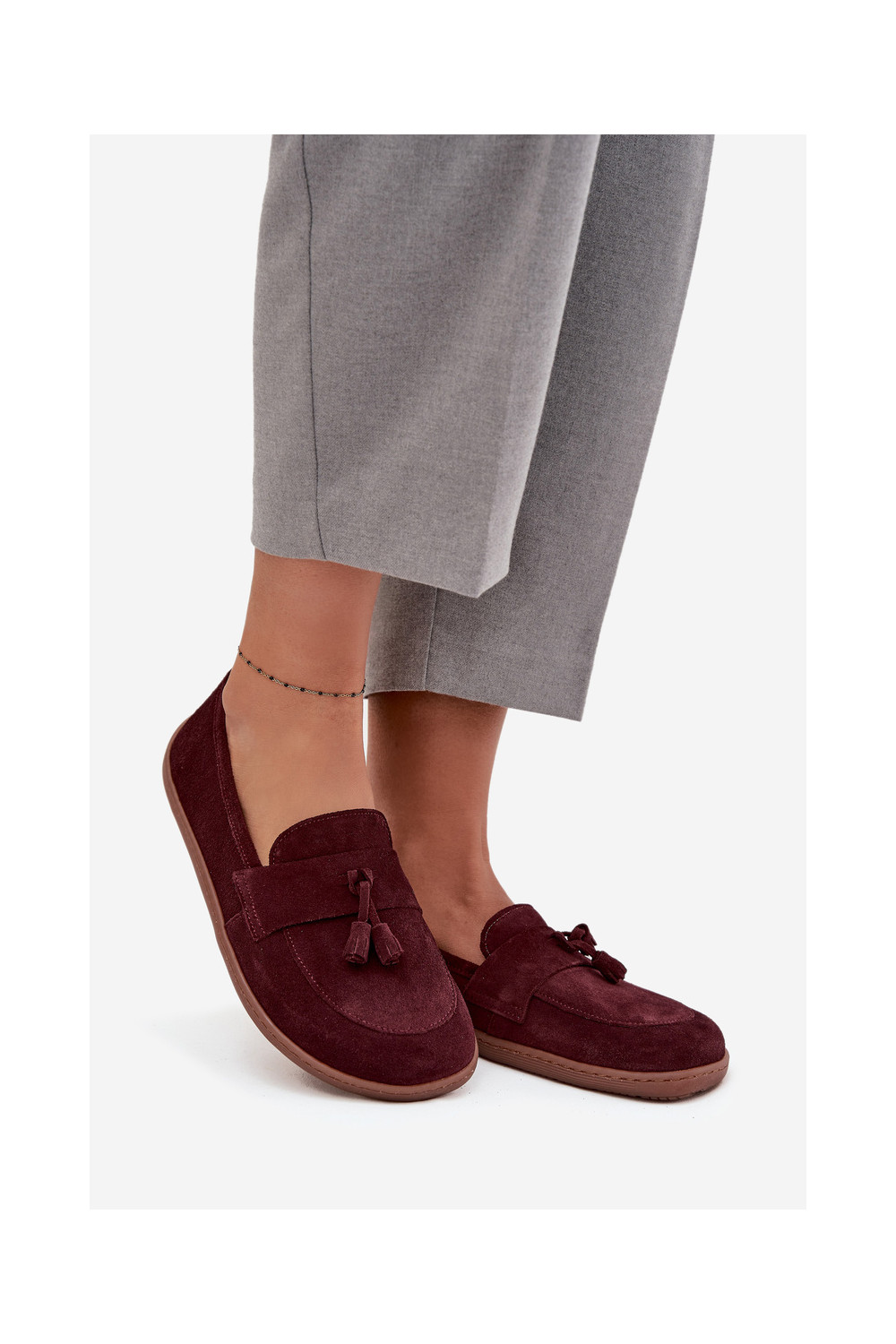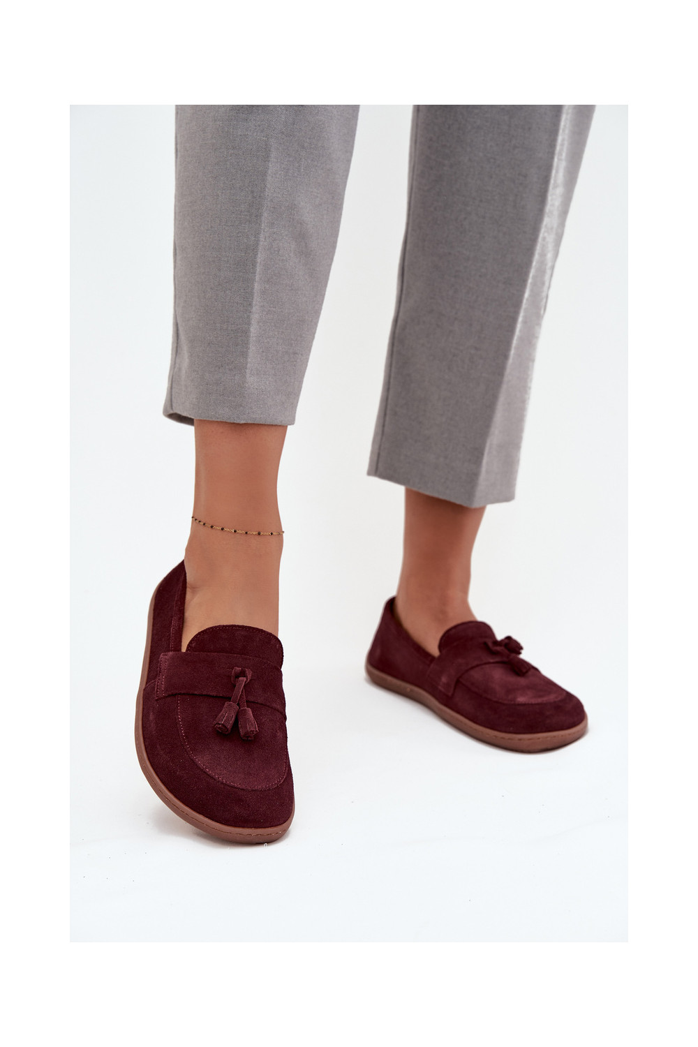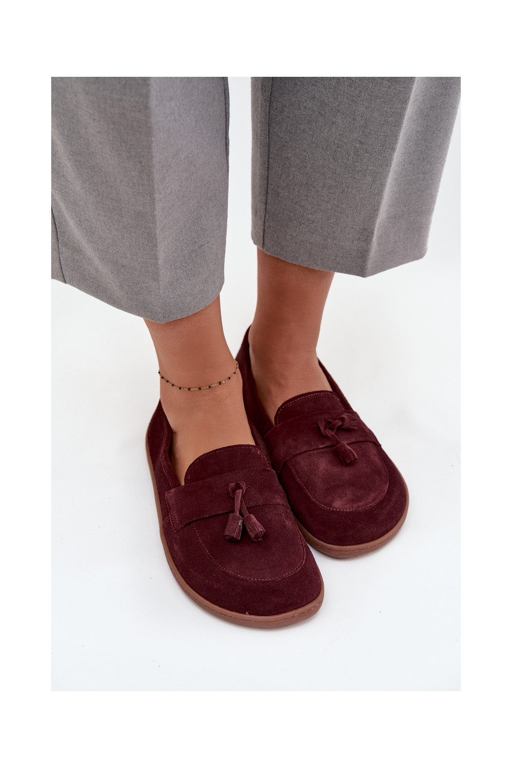 Nahast sametist mokasiinid "Barefoot" tüüpi Zazoo 322 bordoopunane