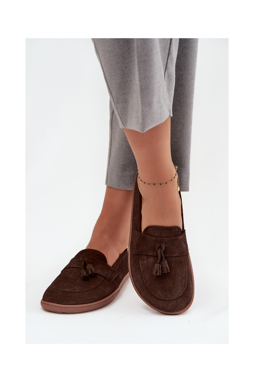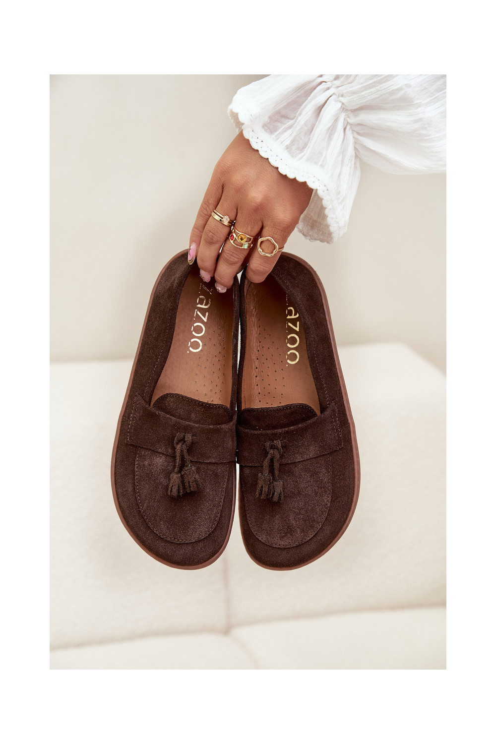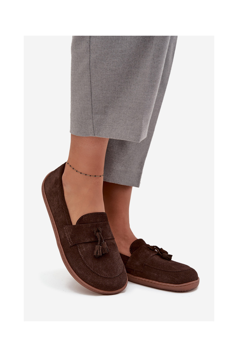Nahast sametist mokasiinid "Barefoot" tüüpi Zazoo 322 šokolaad
