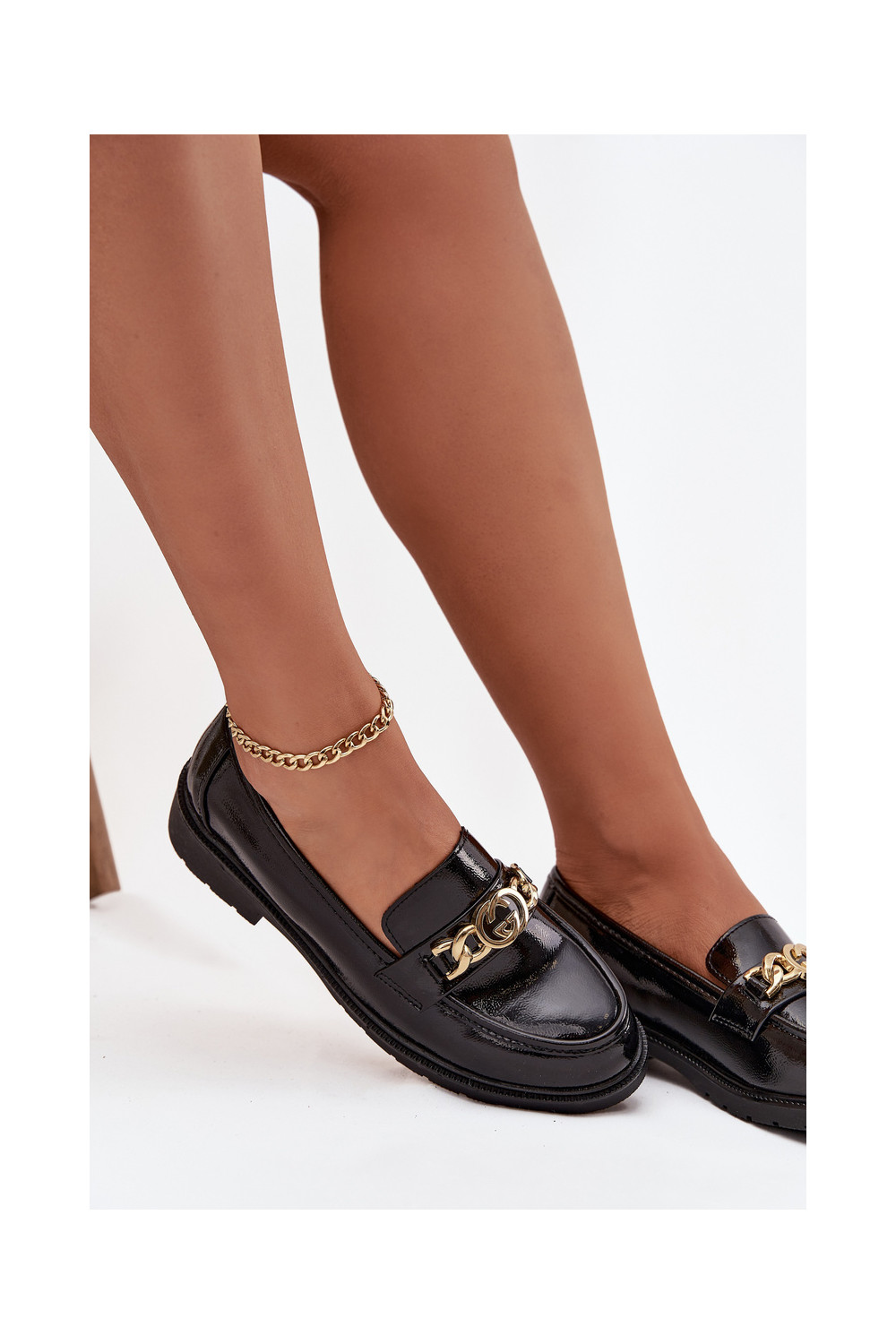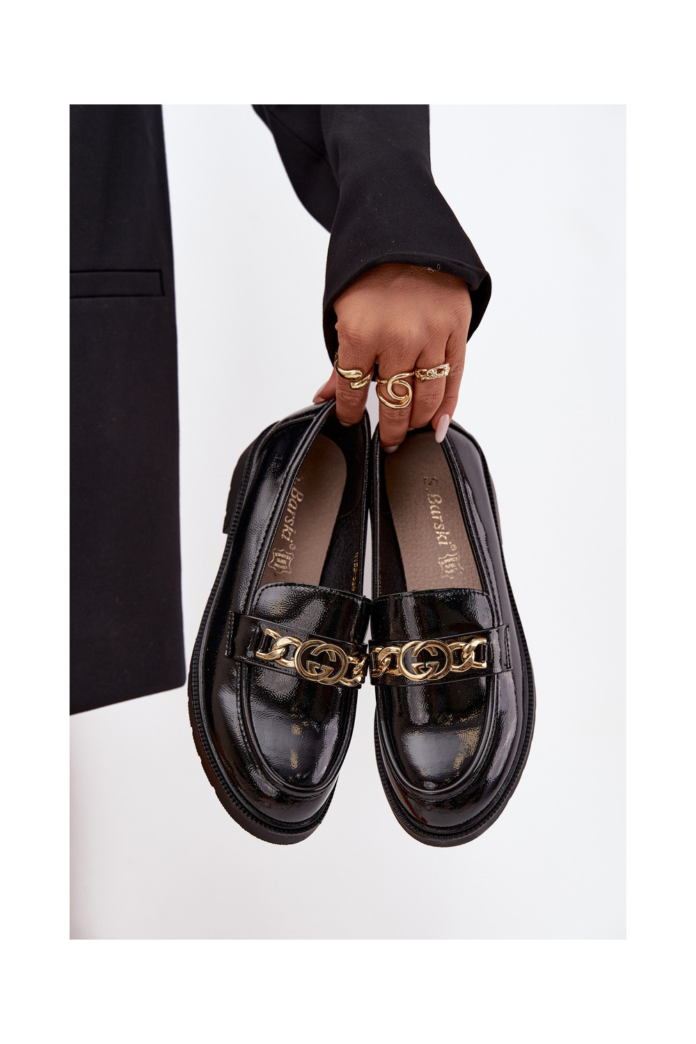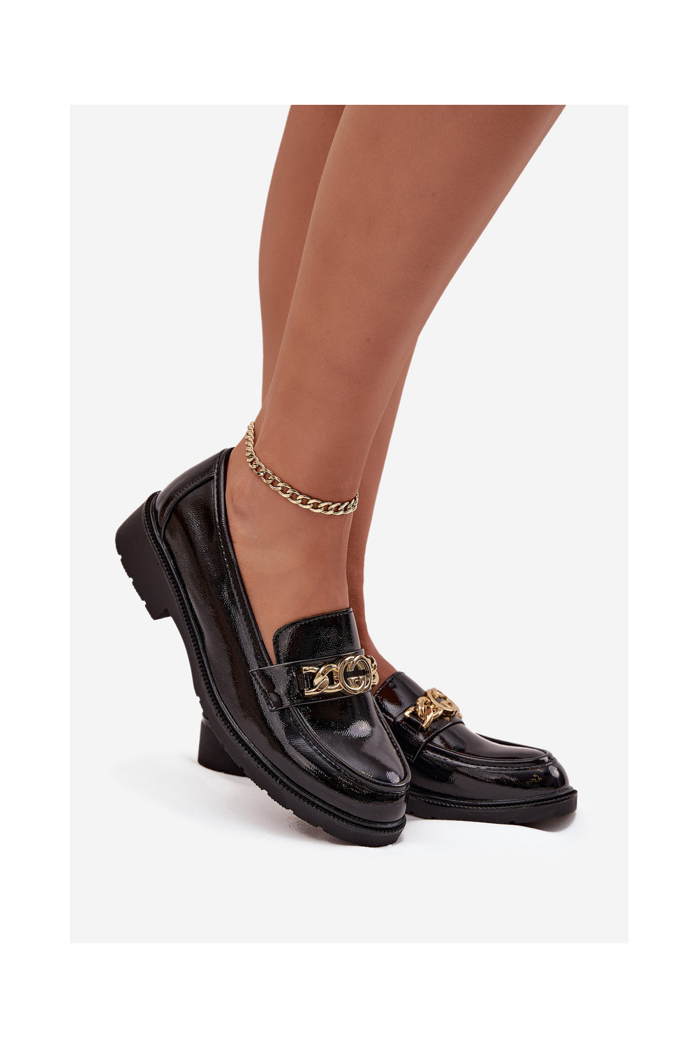 Lakitud mokasiinid naistele kuldsete detailidega S.Barski HY52-539 musta värviga