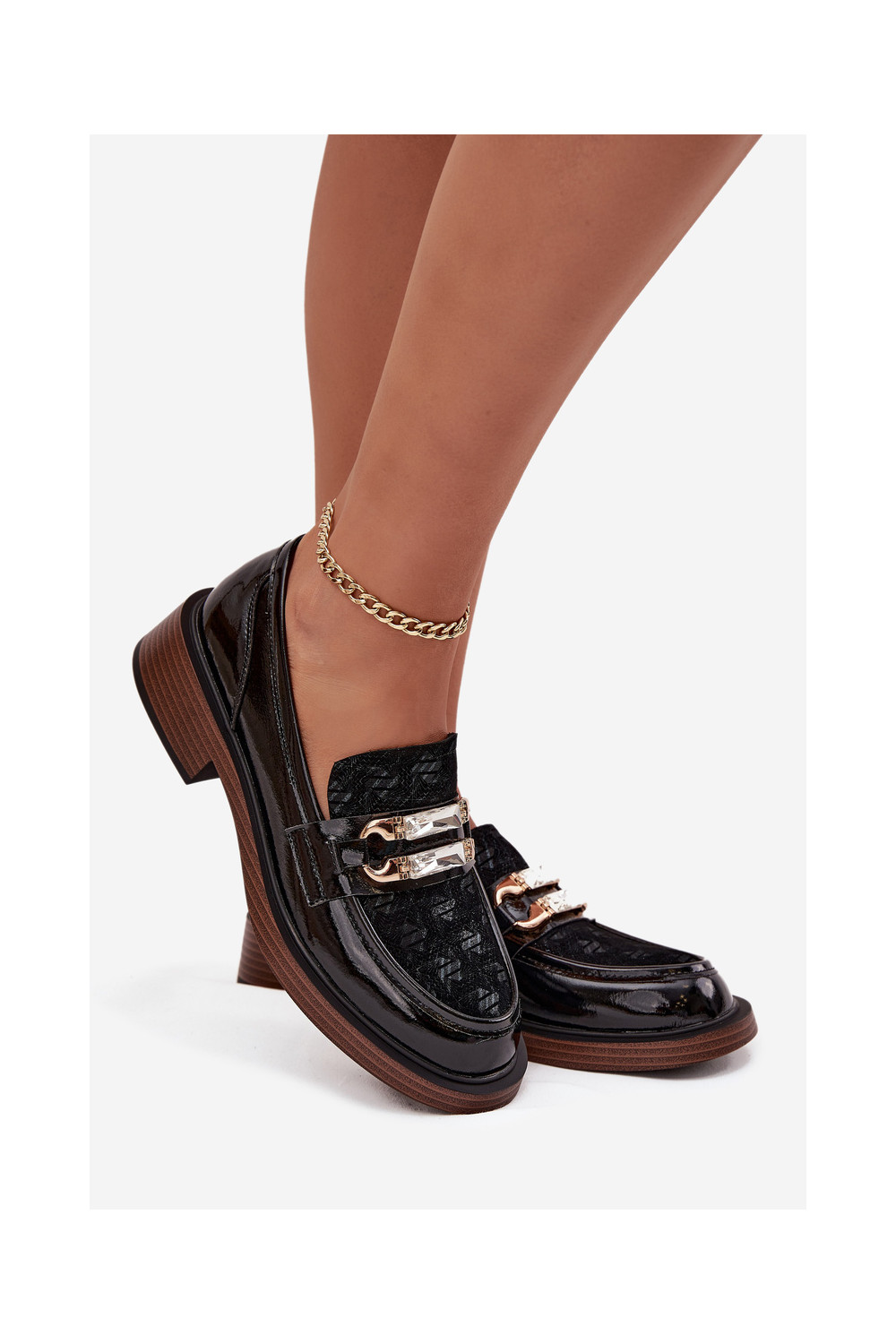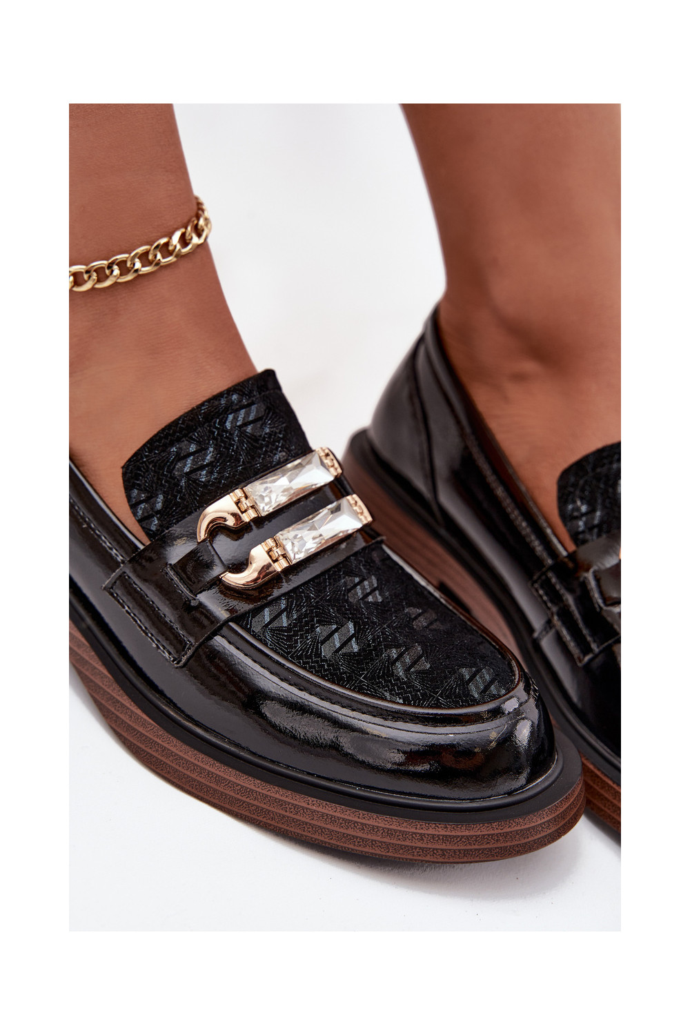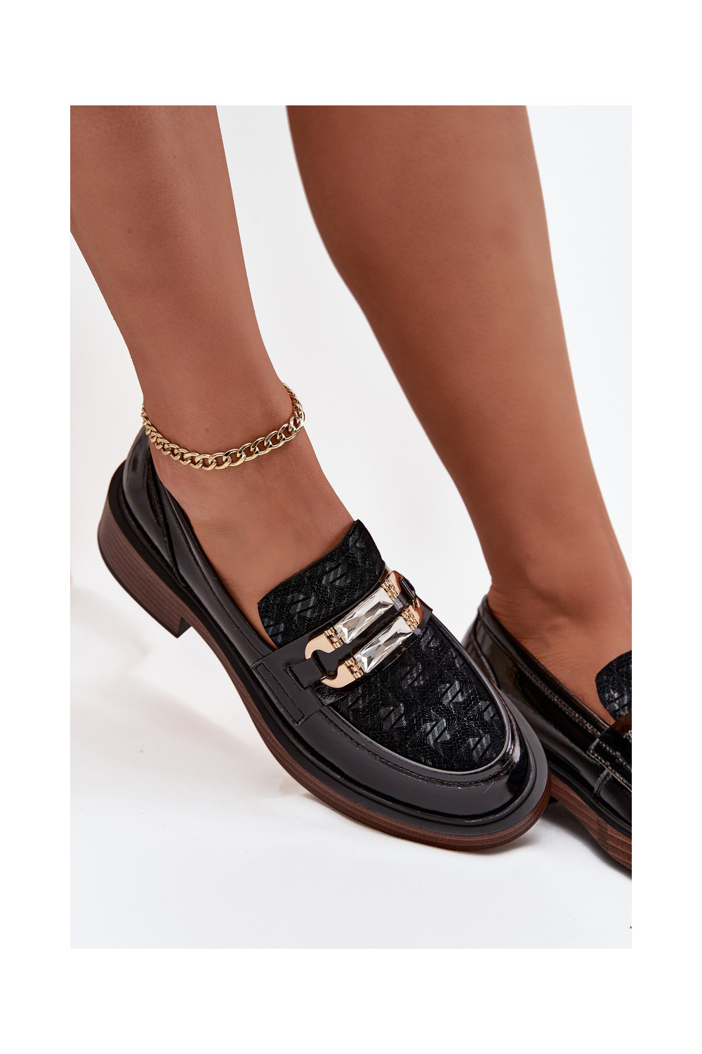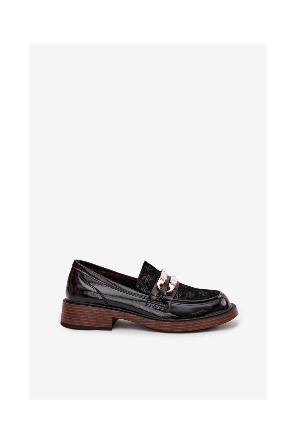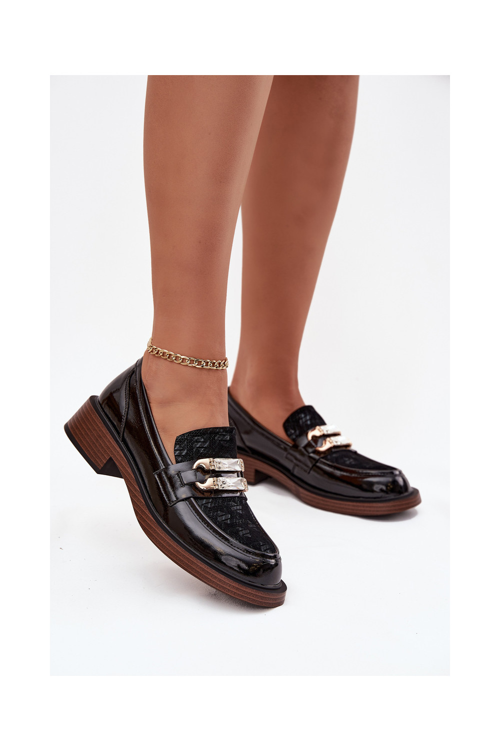Lakitud kunstnahast naiste mokasiinid kaunistuse detailiga D&A MR52-173 musta värvi