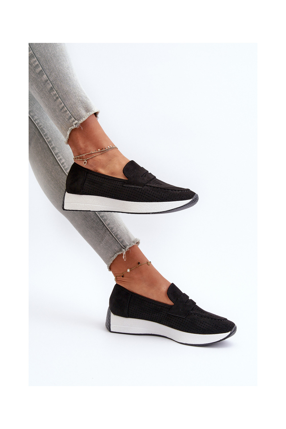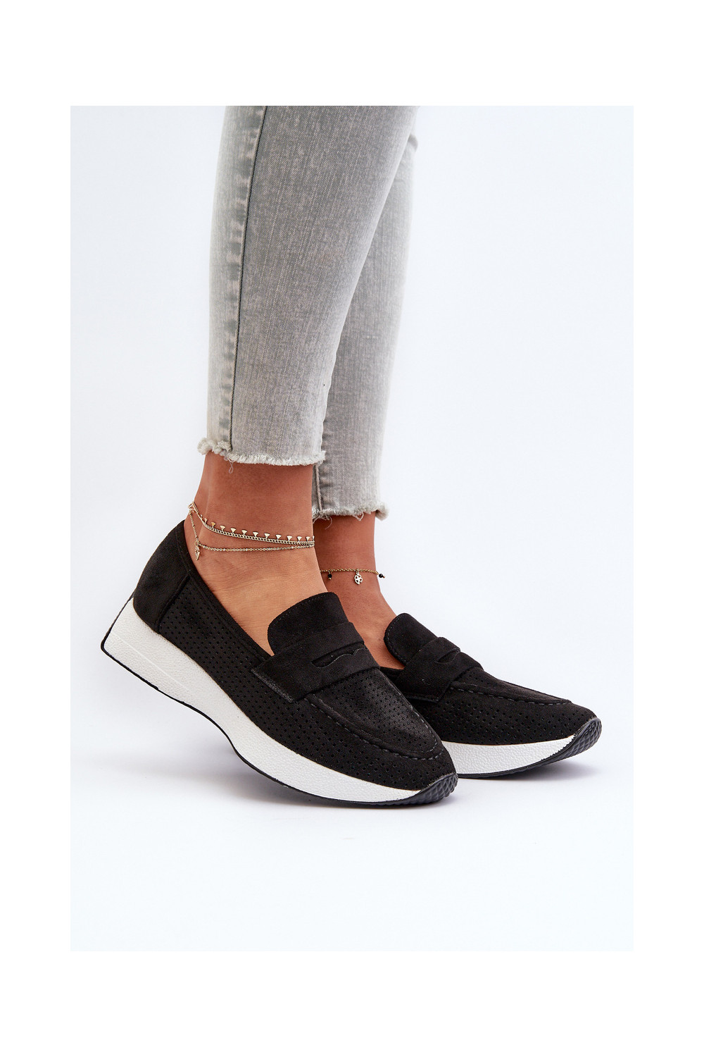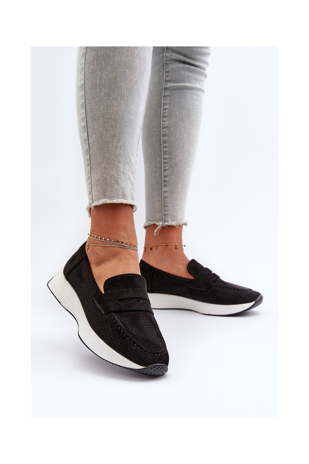 Naistele mokasiinid platvormil kunstnahast musta värvi Inesqua