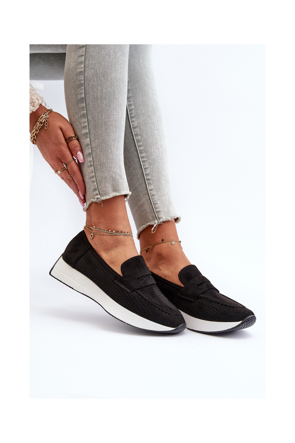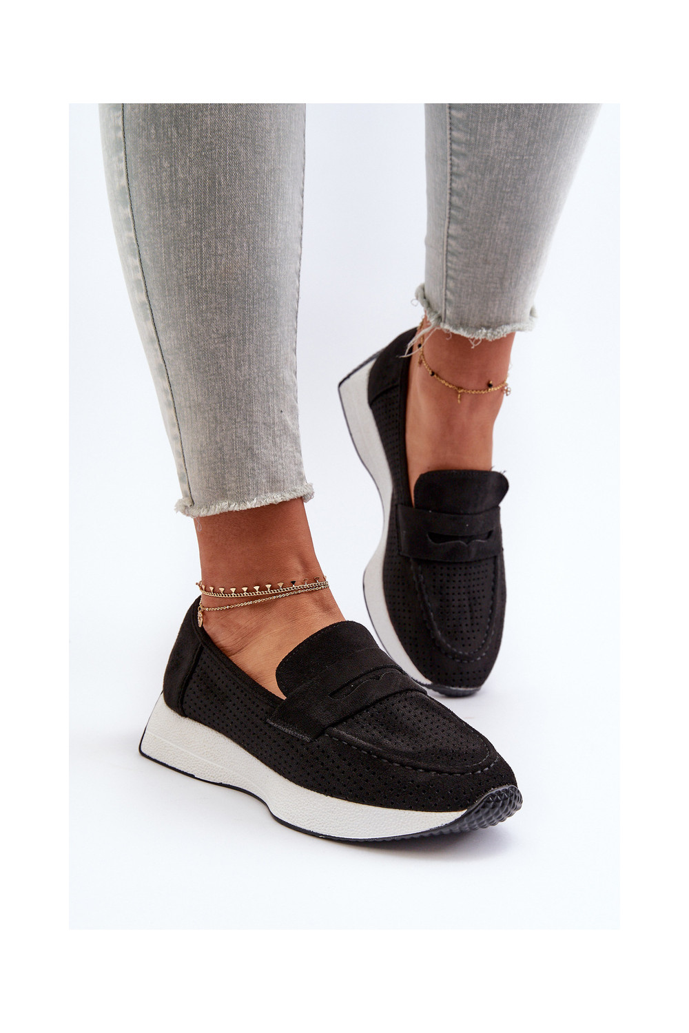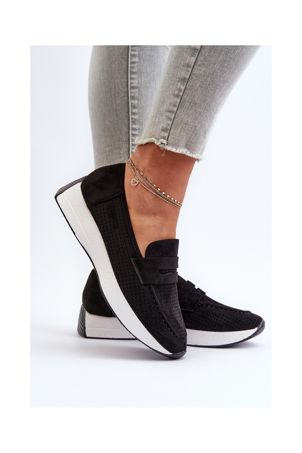 Naistele mokasiinid platvormil kunstnahast musta värvi Inesqua