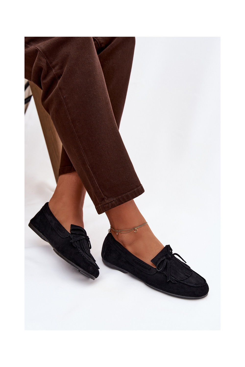 Naistel mustad mokasiinid tupsudega Janelisse