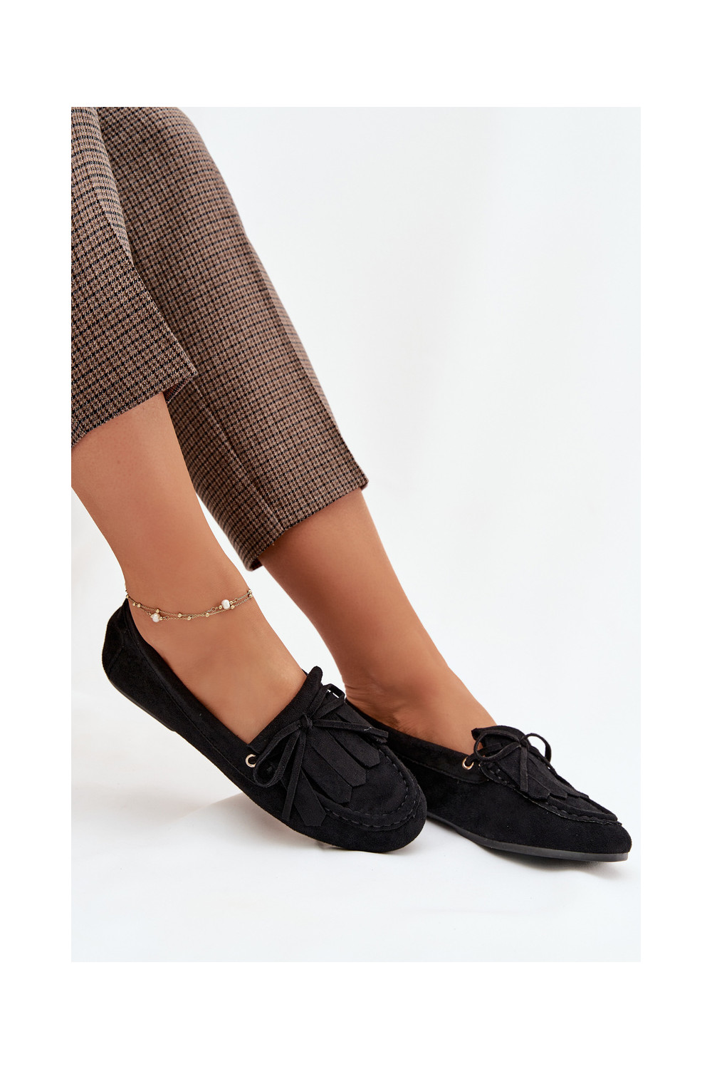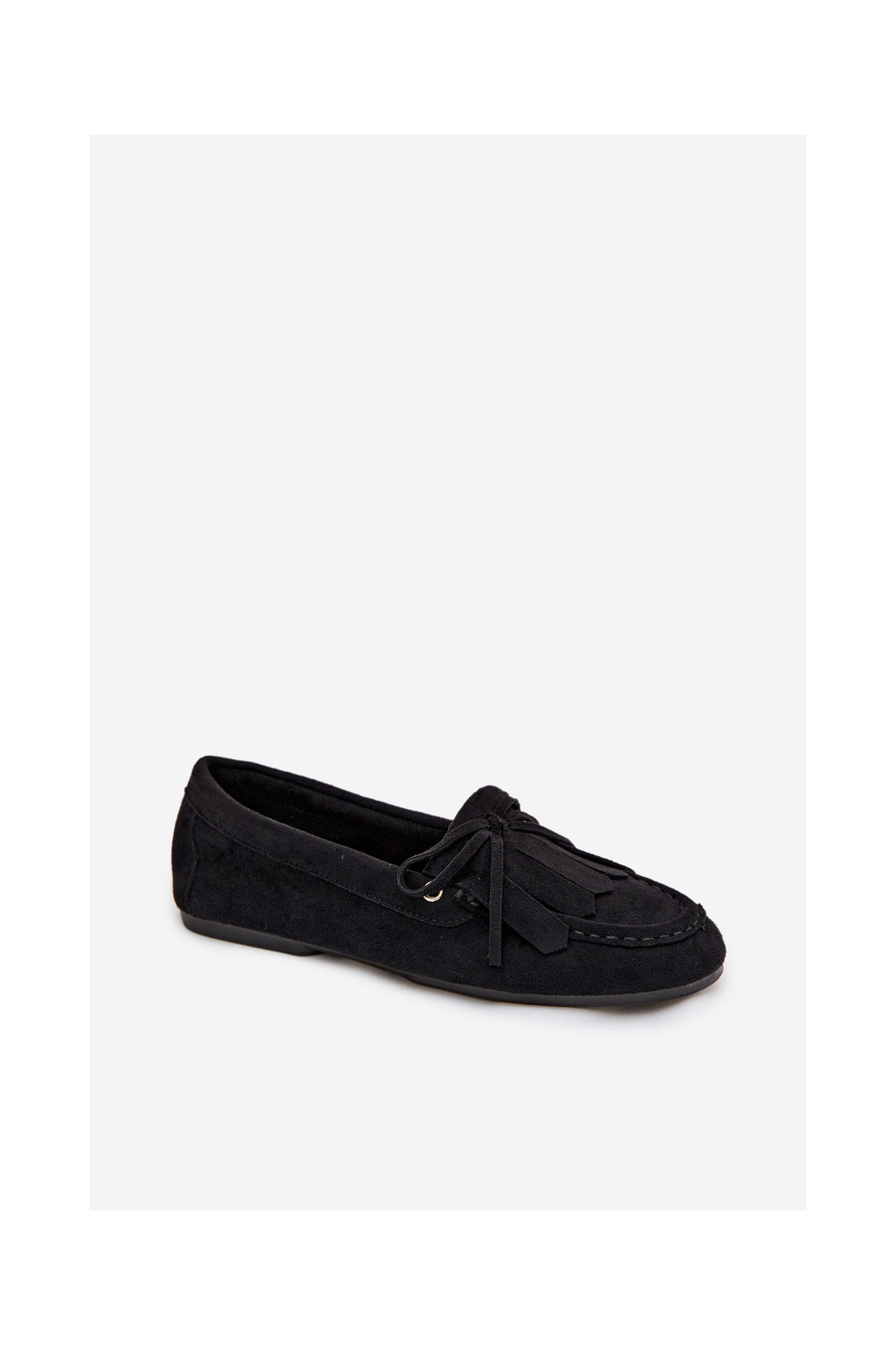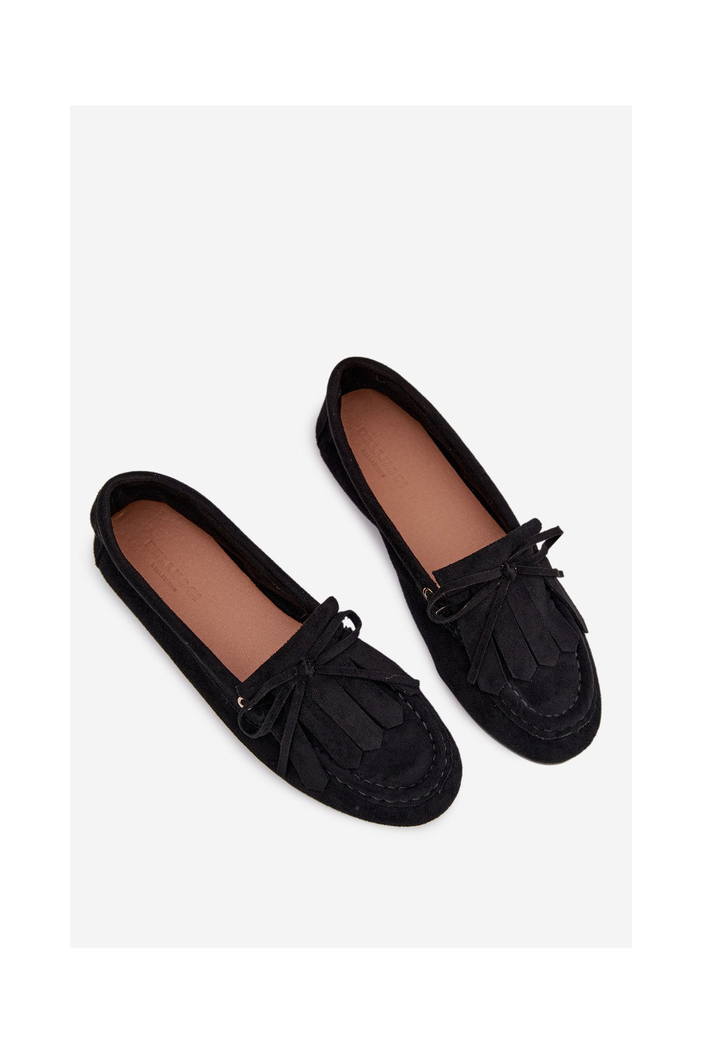Mustad Glorina naiste mokasiinid stiilsete detailide ja narmastega