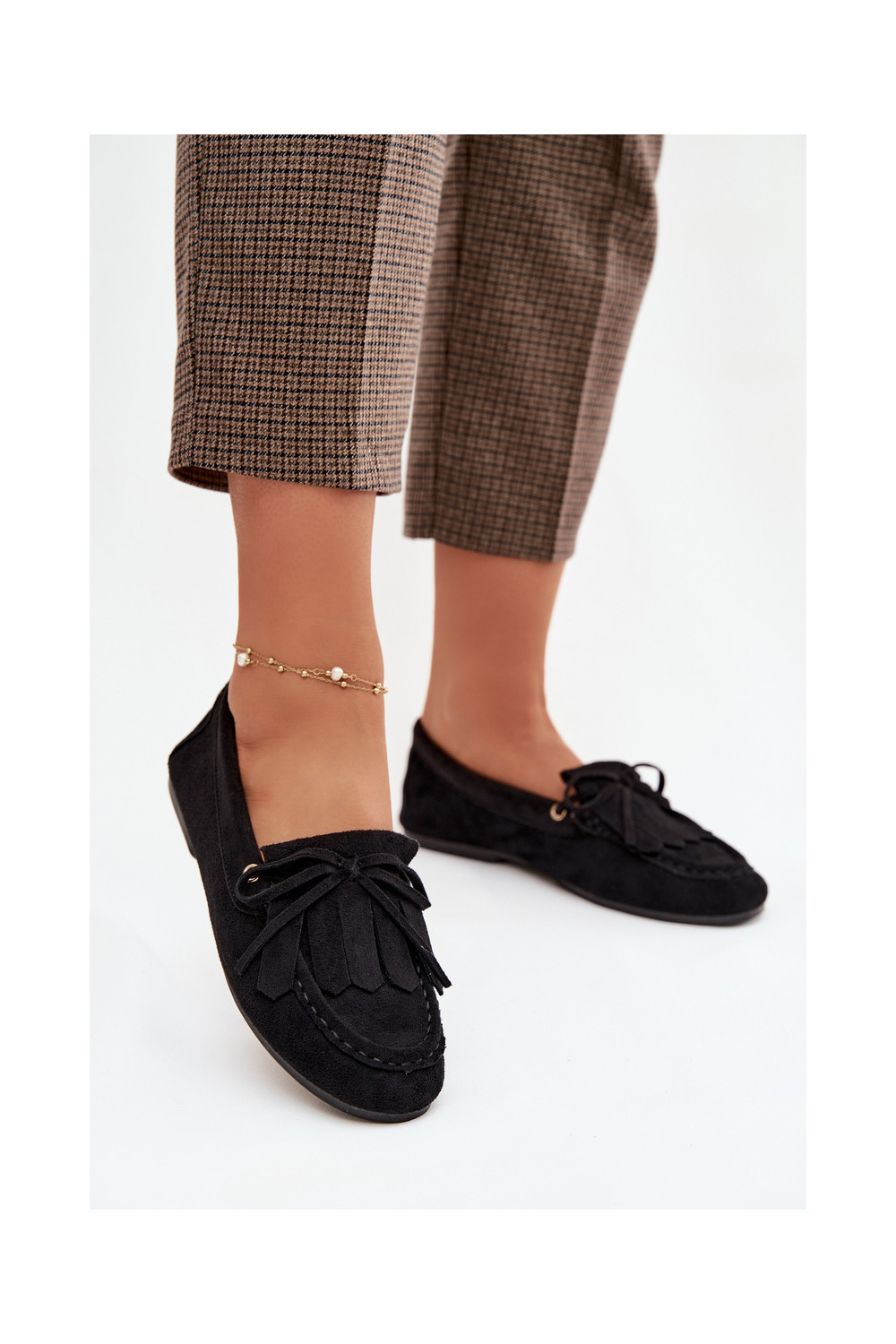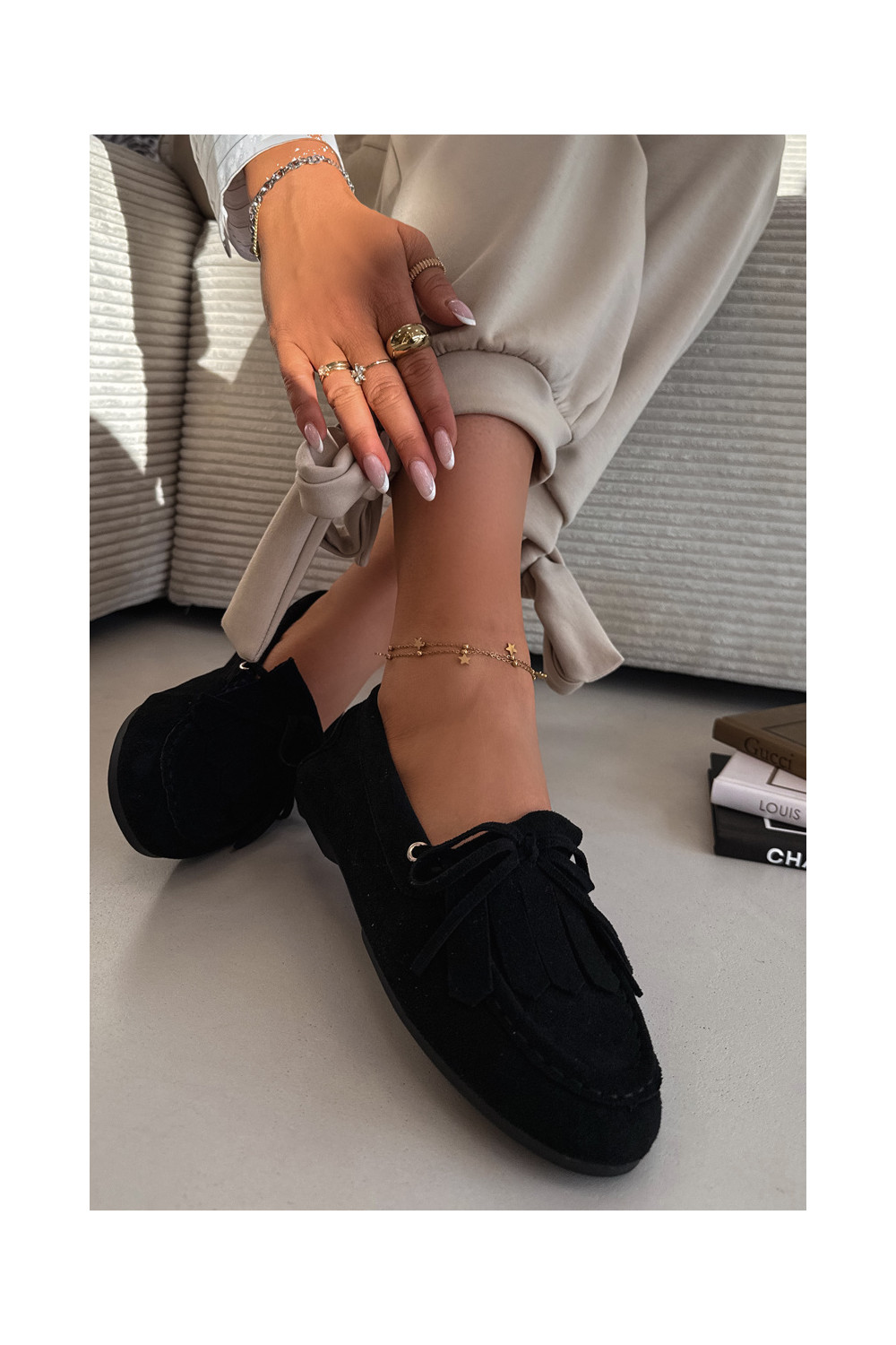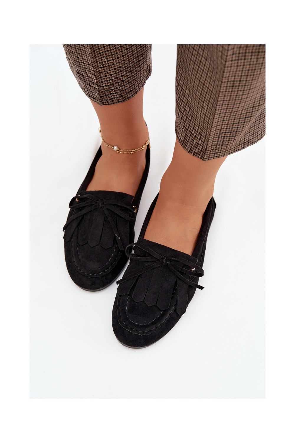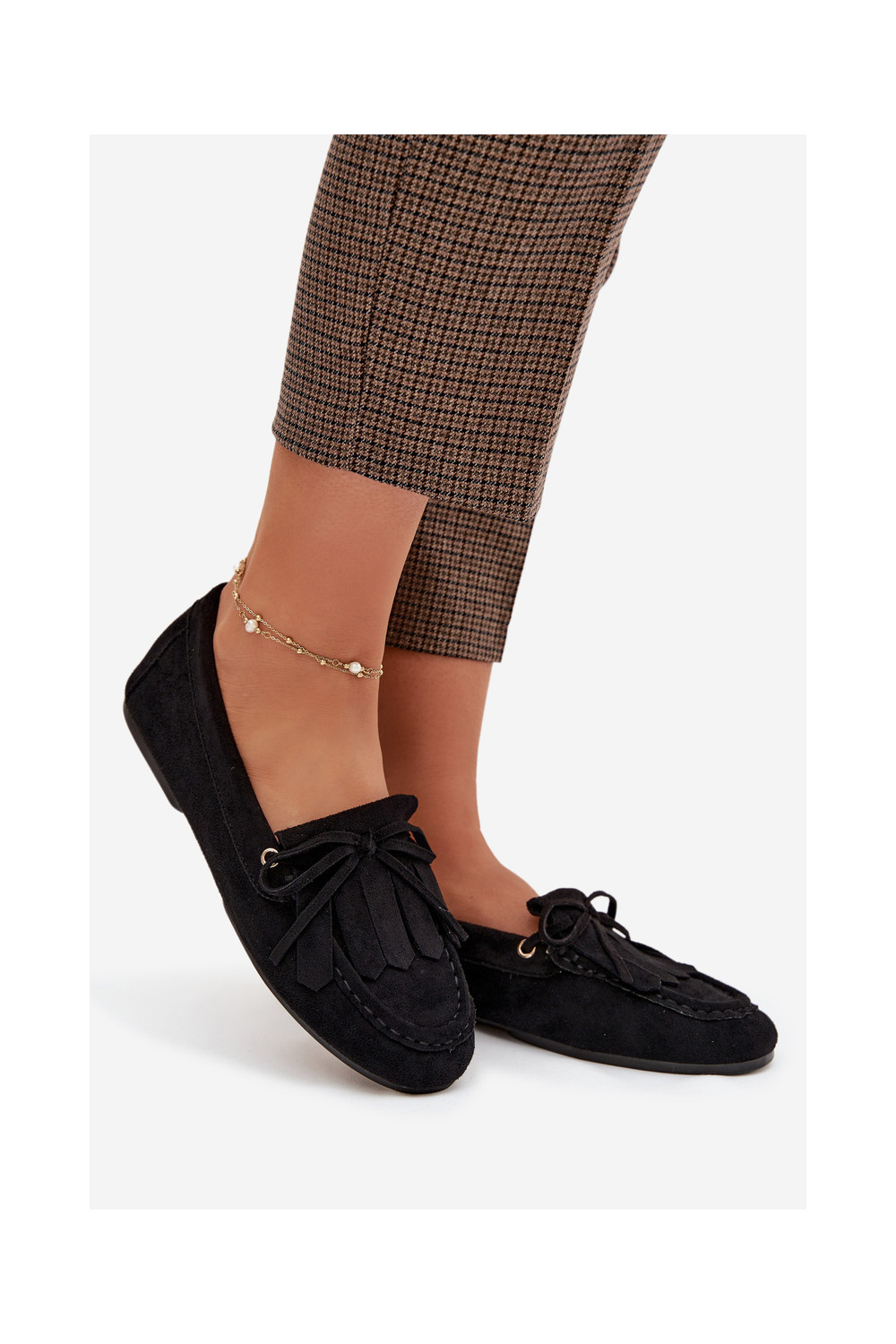 Mustad Glorina naiste mokasiinid stiilsete detailide ja narmastega