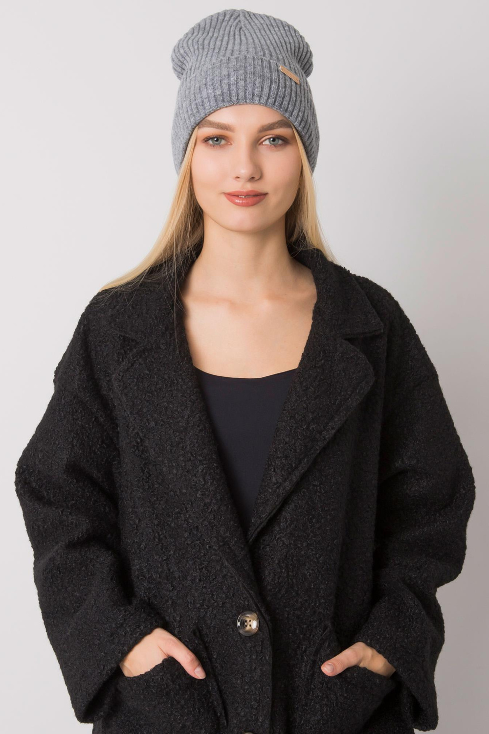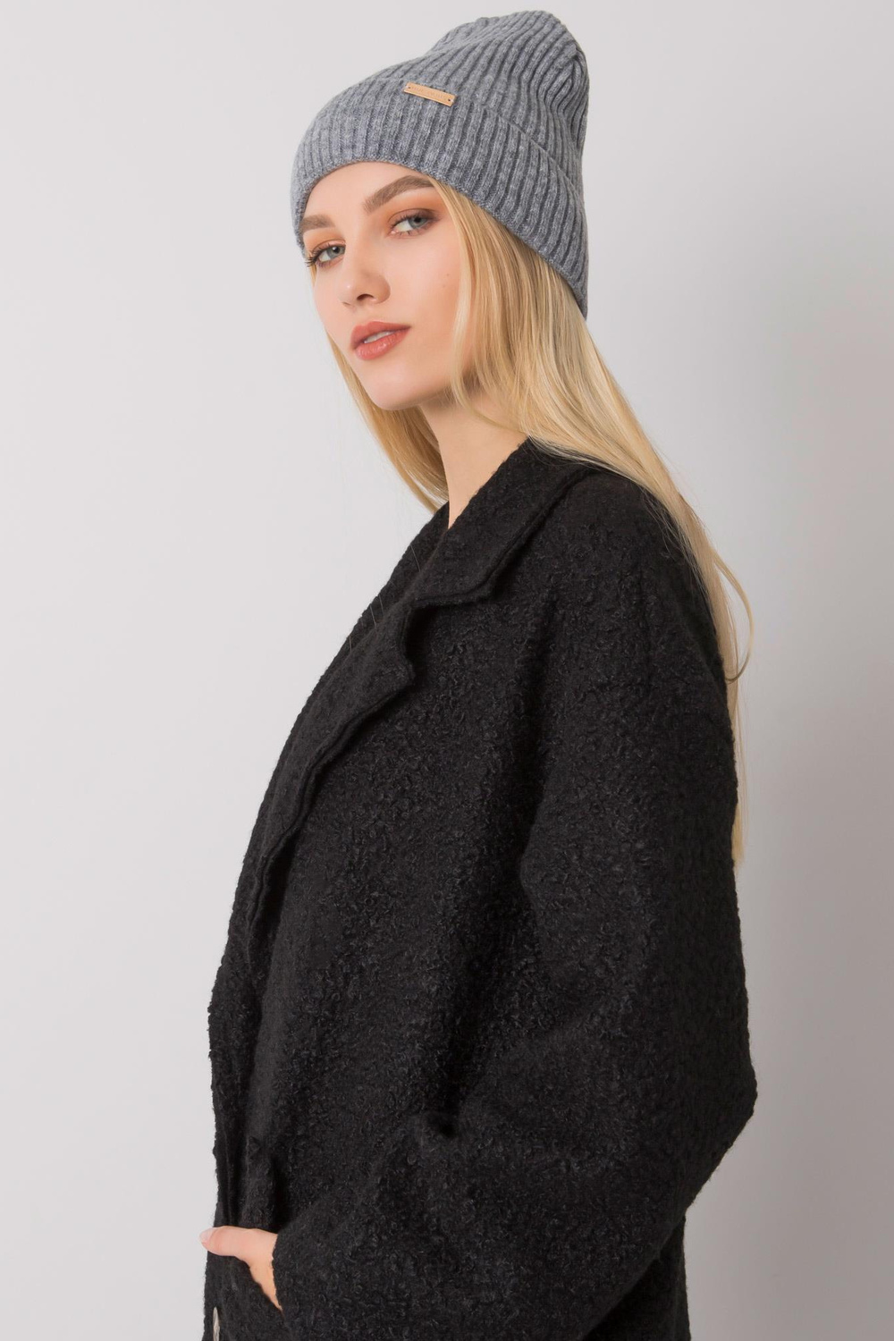 Tumevärvi kootud naiste müts RUE PARIS. Materjali koostis: 100% akrüül pesumeetod: masinpesu 30°C