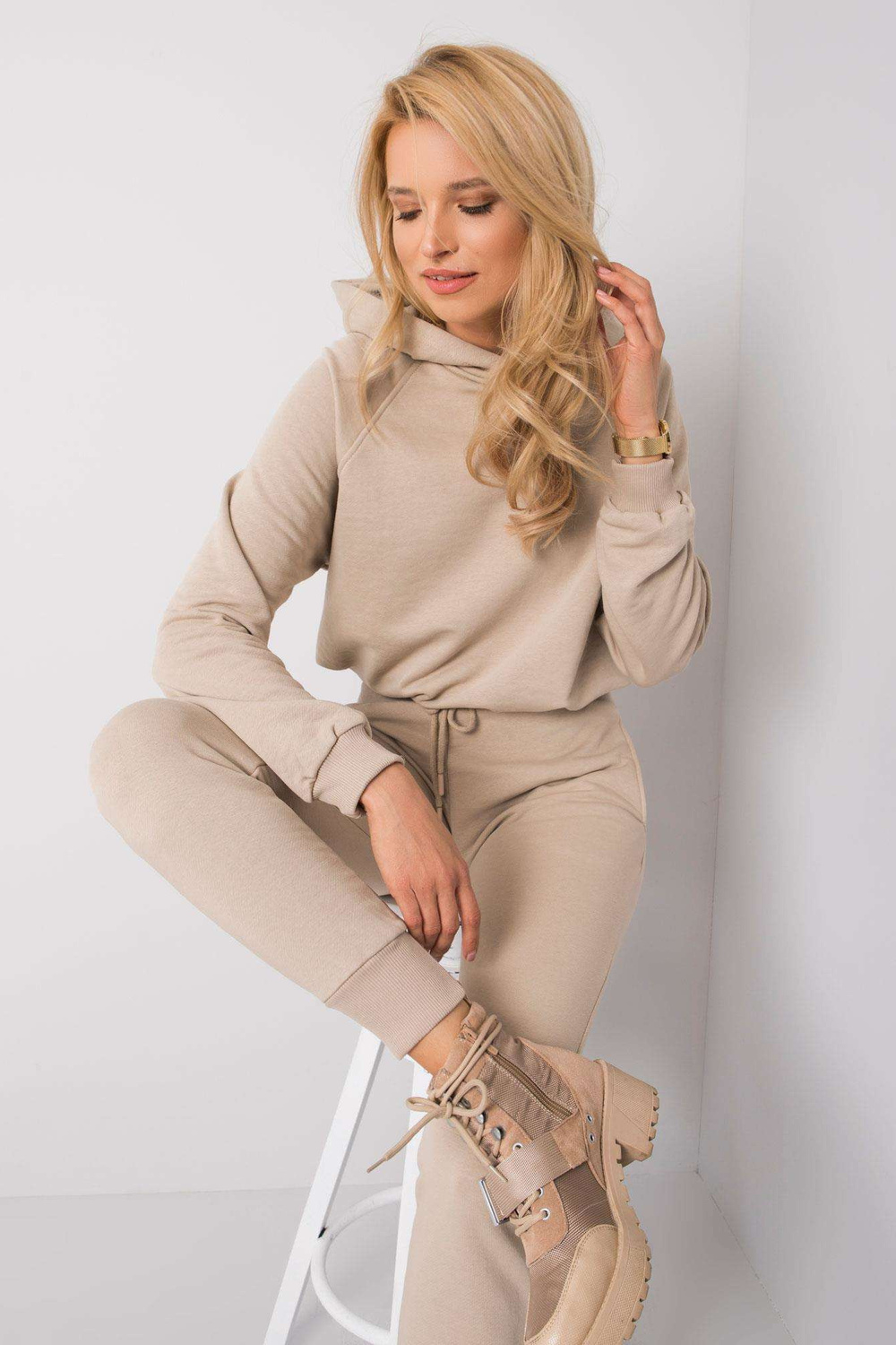 Beež Adoria. Komplekti kuulub: dressipluus, pükste materjal koostis: 90% puuvill, 10% elastaan pesumeetod: masinpesu 30°C Mudel kannab suurust S. Mudeli mõõdud: kõrgus 175 cm, rinnaümbermõõt 85 cm, vööümbermõõt 63 cm, puusad 95 cm. Mõõdud