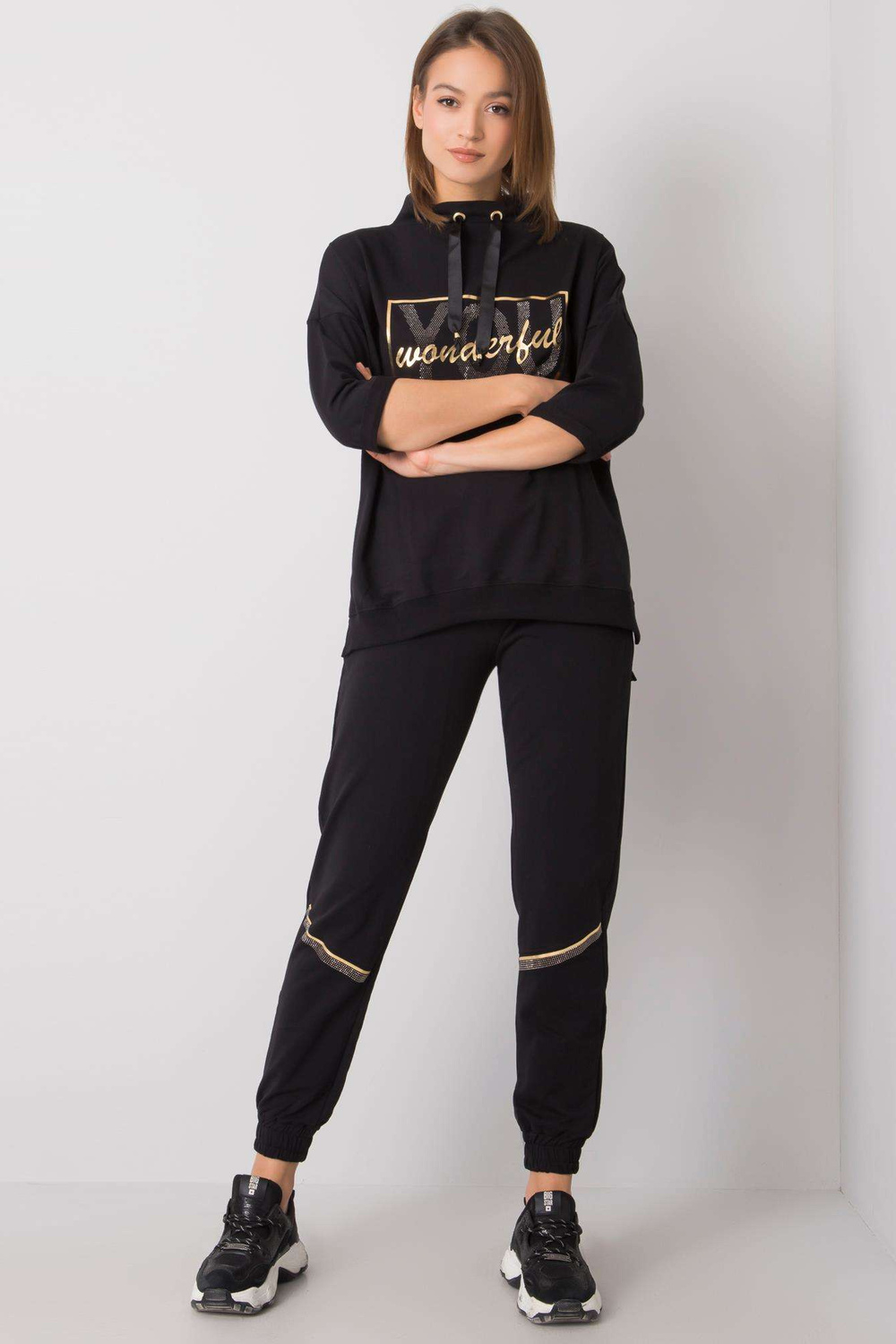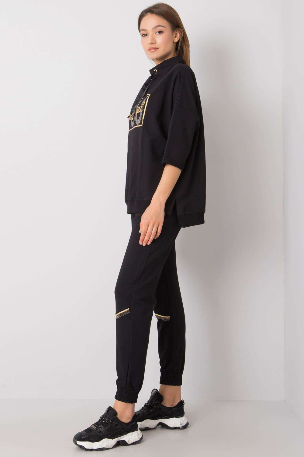 BlackGiverny komplekt. Komplekti kuulub: dressipluus, pükste materjal koostis: 90% puuvill, 10% elastaan pesumeetod: masinpesu 30°C Mudel kannab suurust S/M. Modelli mõõdud: kõrgus 180 cm, rind 89 cm, vöö 63 cm, puus 93 cm. th