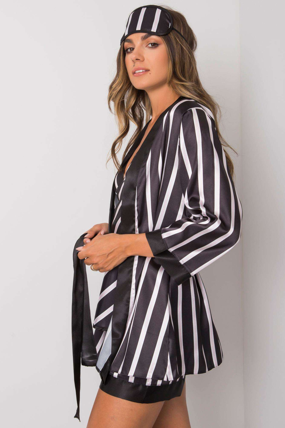 komplektis: T-särk, lühikesed püksid, hommikumantel, silmaklapp