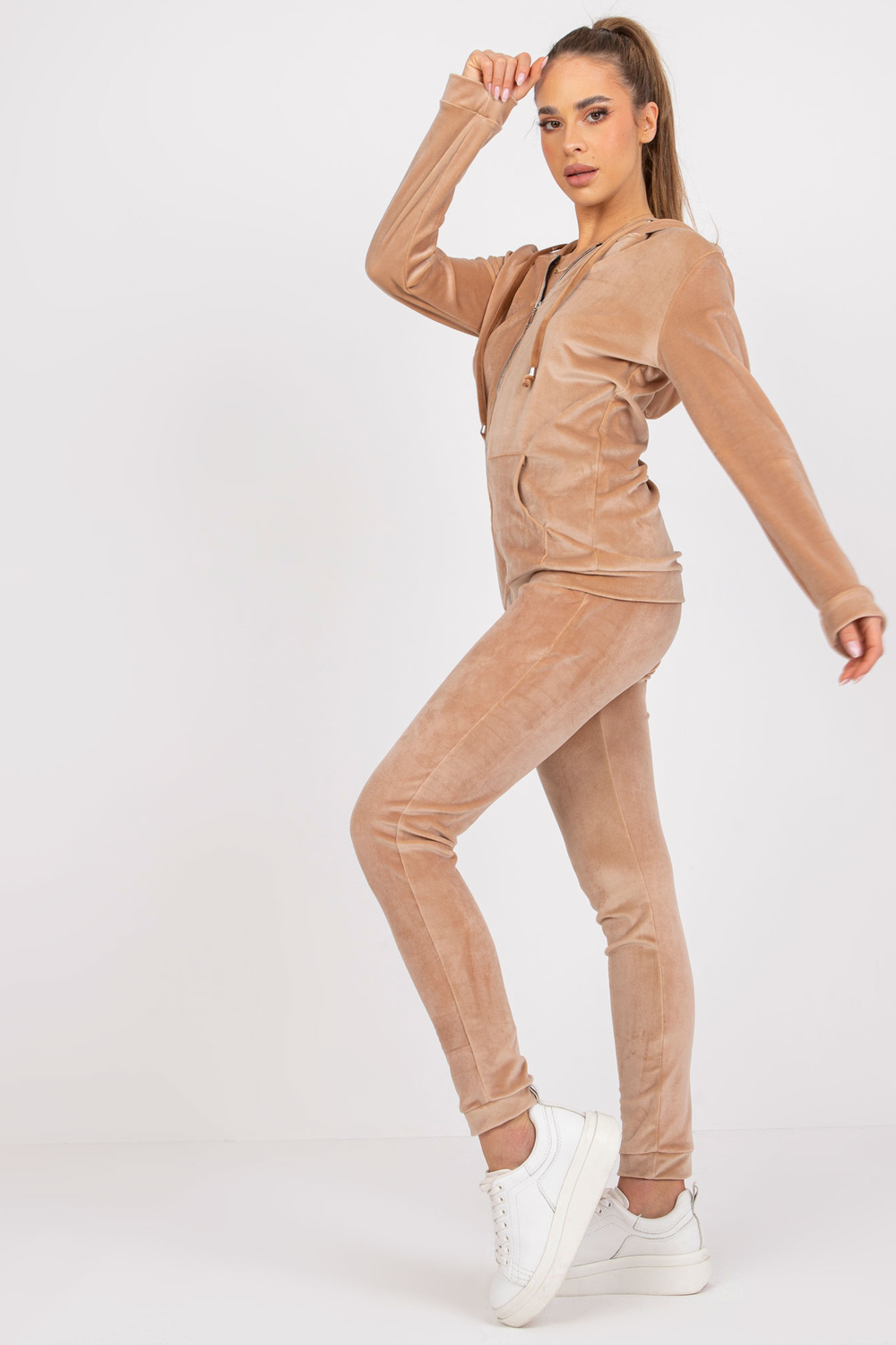Beiget kaheosaline veluurkomplekt pükstega Ilaria.