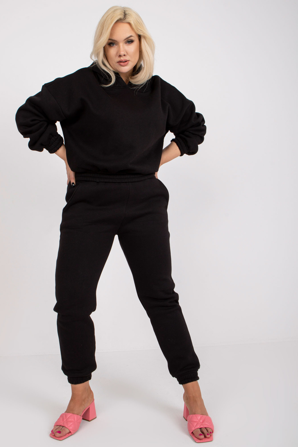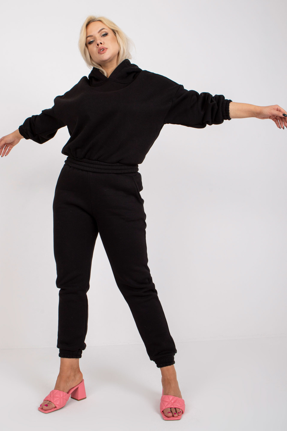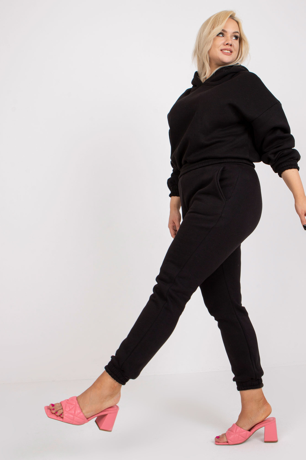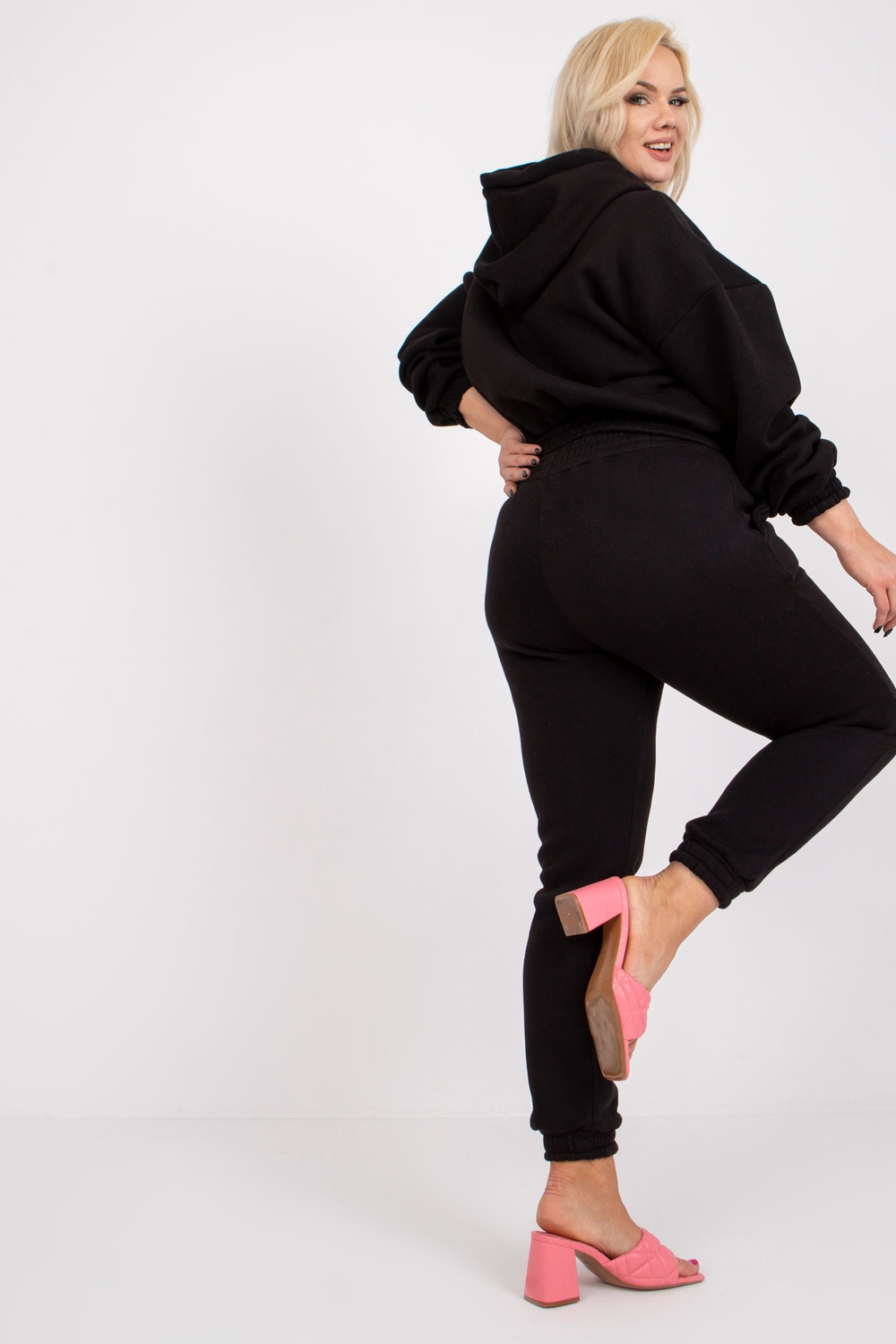 Musta kampsuni komplekt plusssuuruses kapuutsiga .