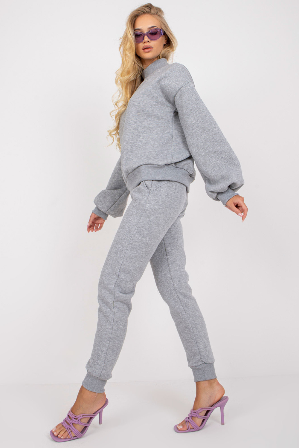 Greymelange dressipluusi komplekt koos püstkraega .