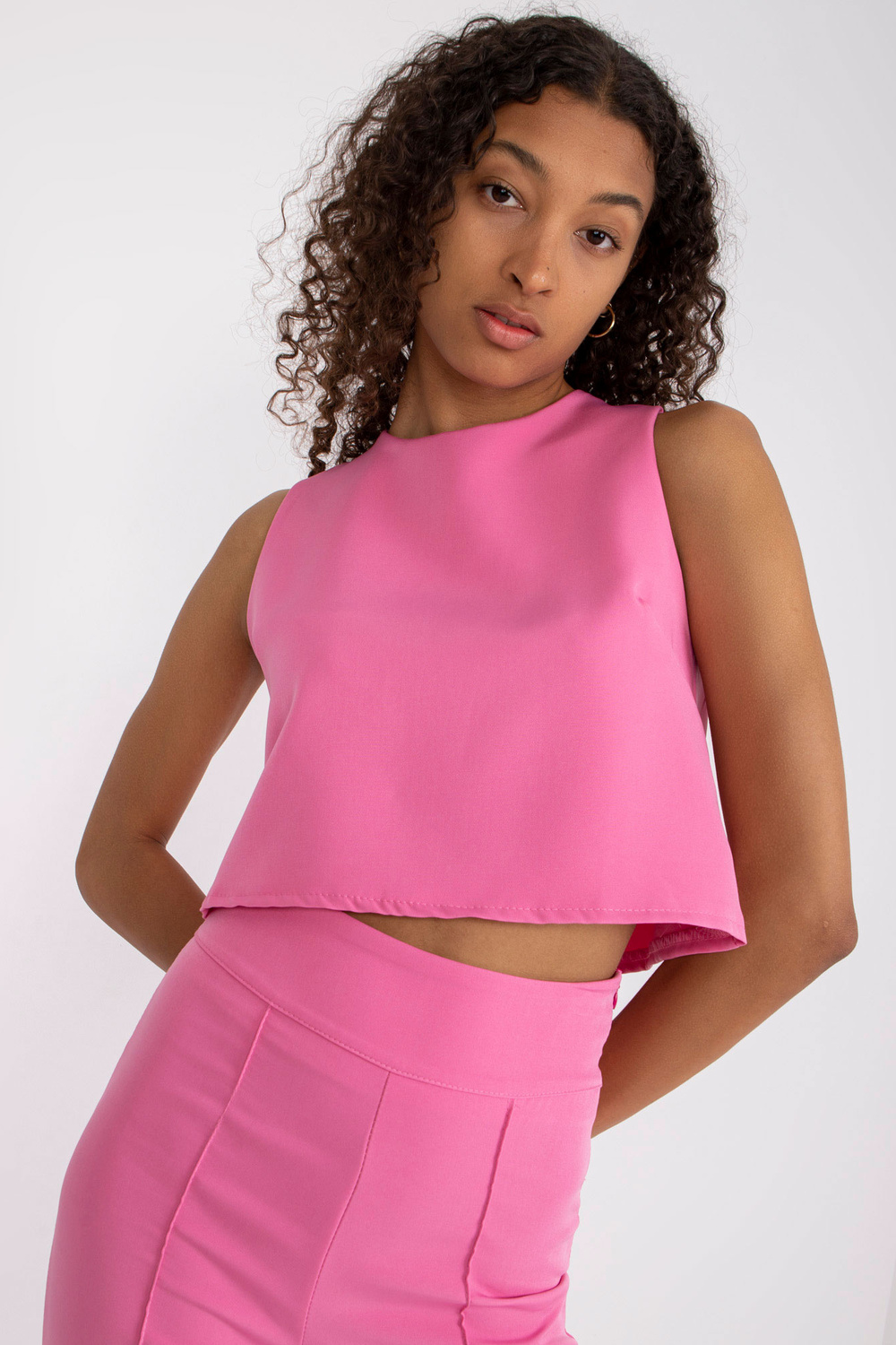 Roosa kaheosaline elegantne lühikese ülaosaga komplekt .