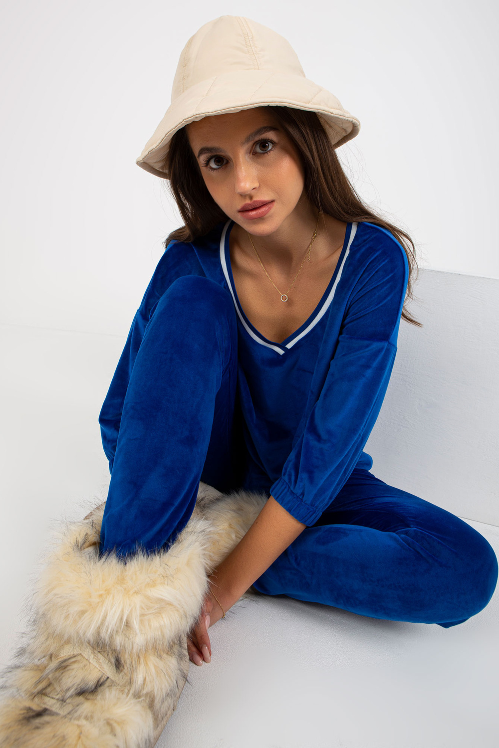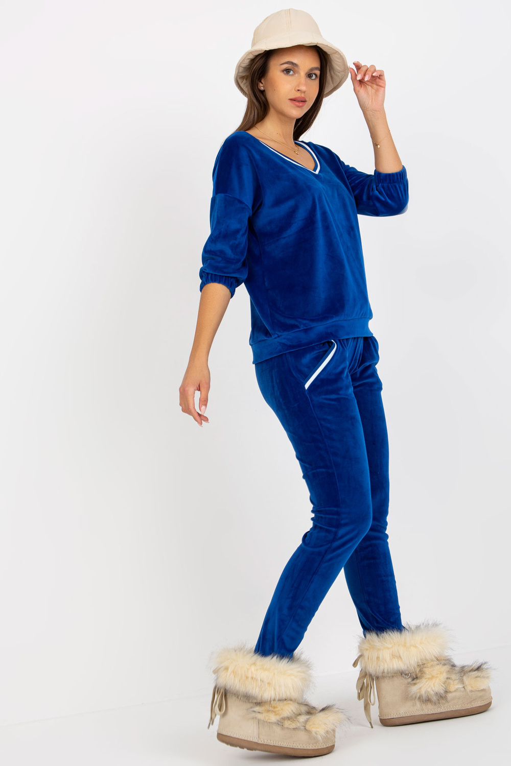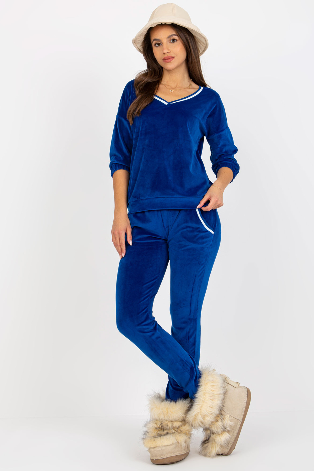 3/4 varrukatega naiste veluurkomplekt Cobalt.