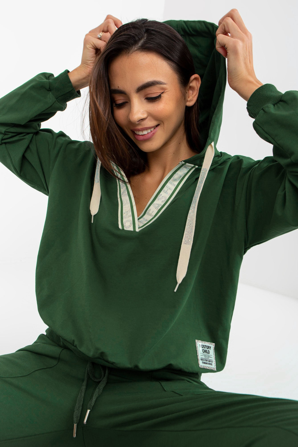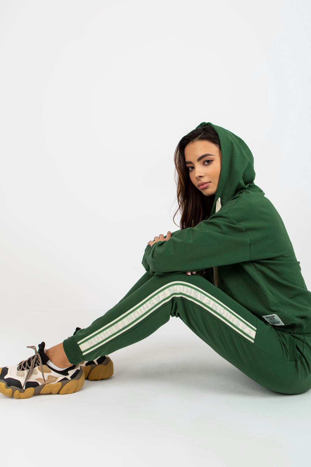 Dunkelgrünes Baumwoll-Lässiges Set mit Aplikation.