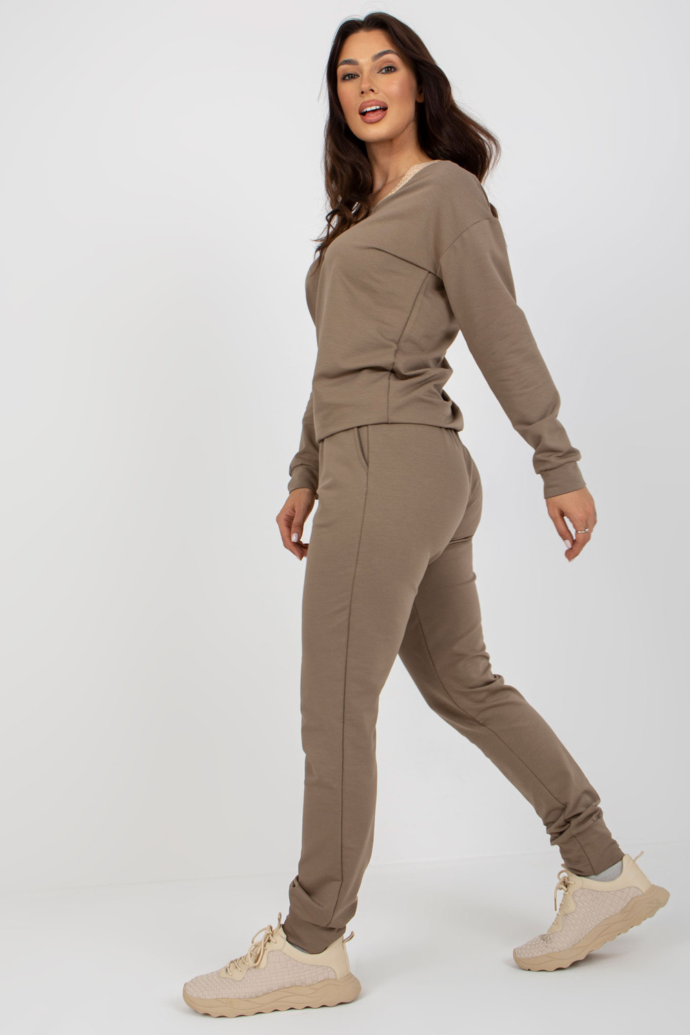 Dunkelbeiges Damen Freizitset mit Hose.