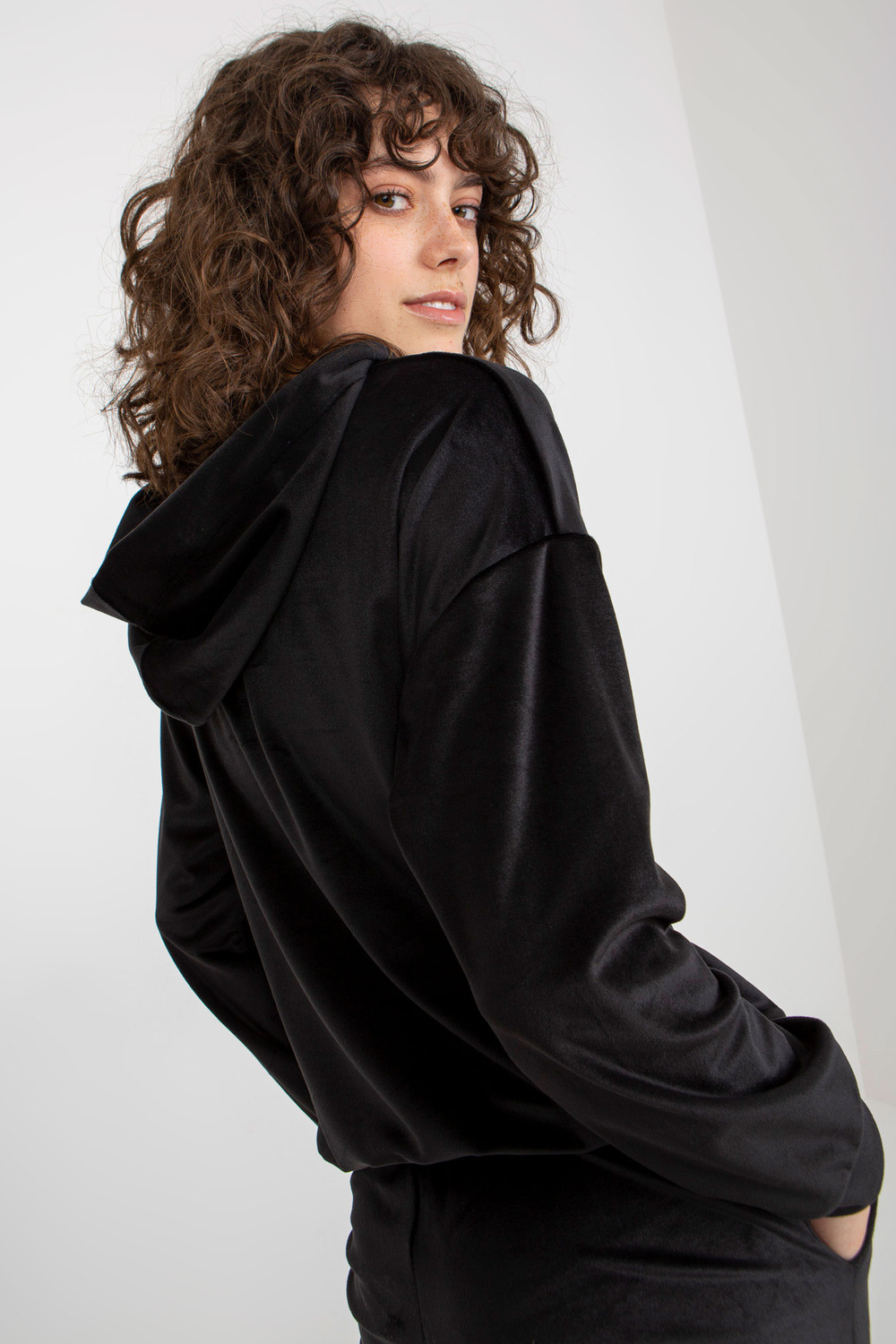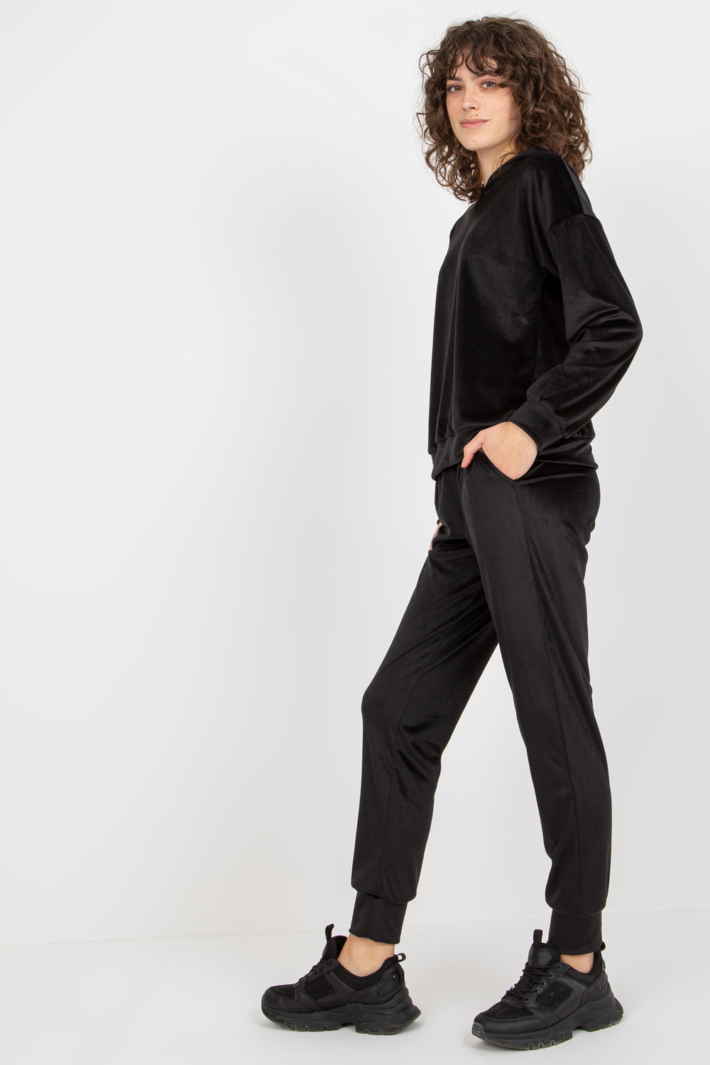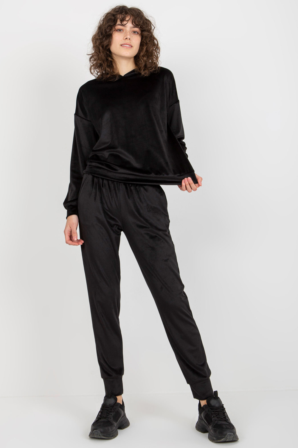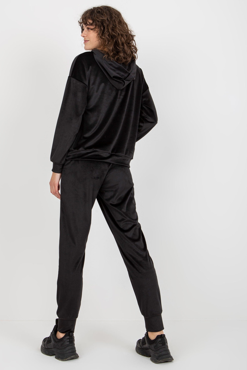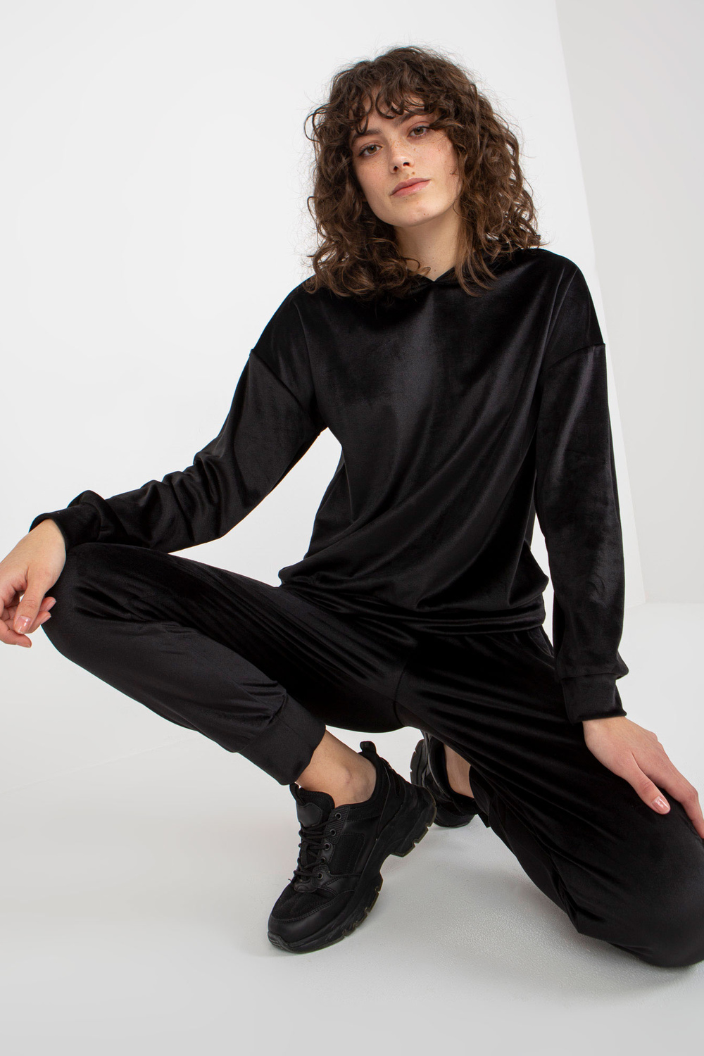 Must naiste veluurkomplekt dressipluusi ja pükstega.