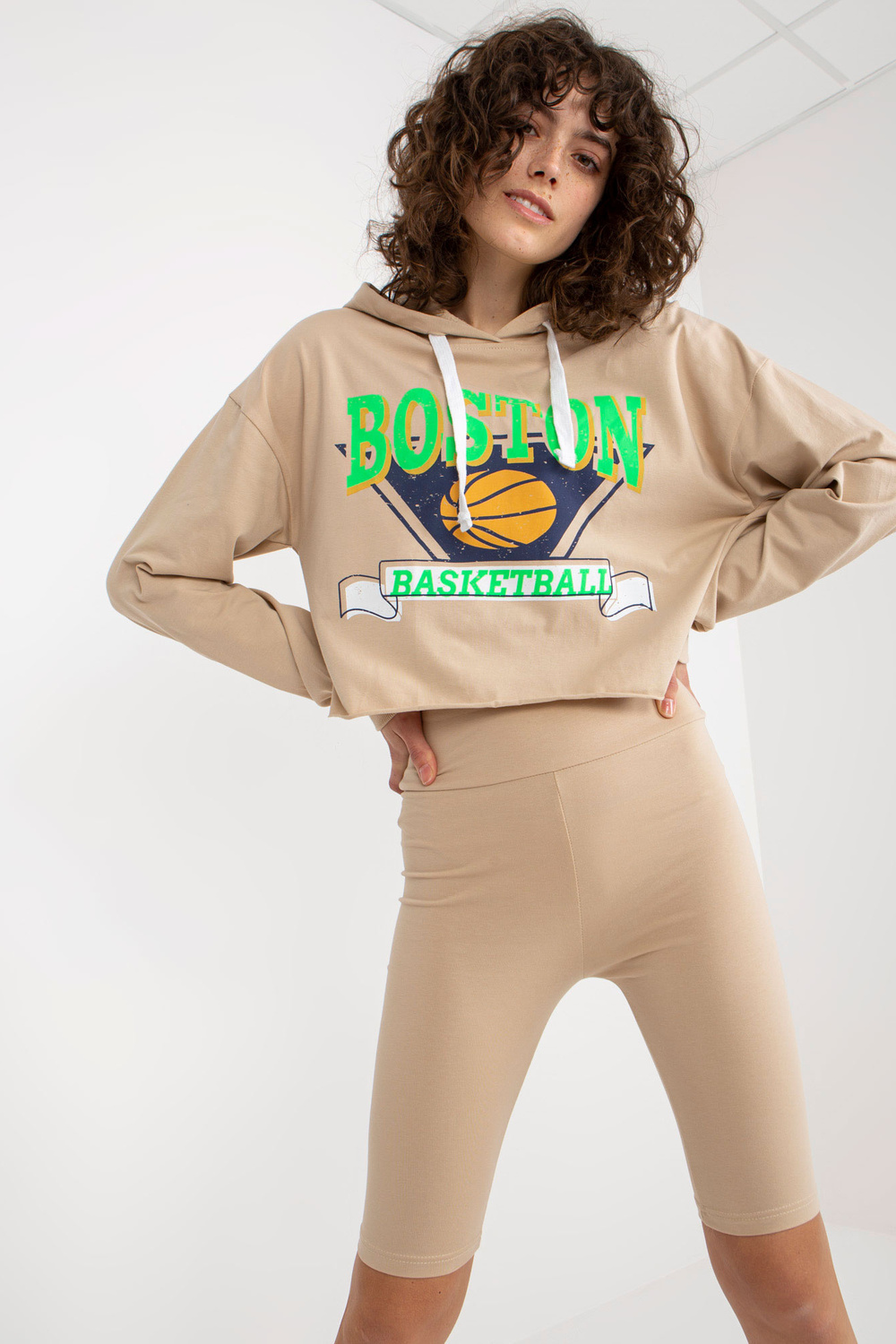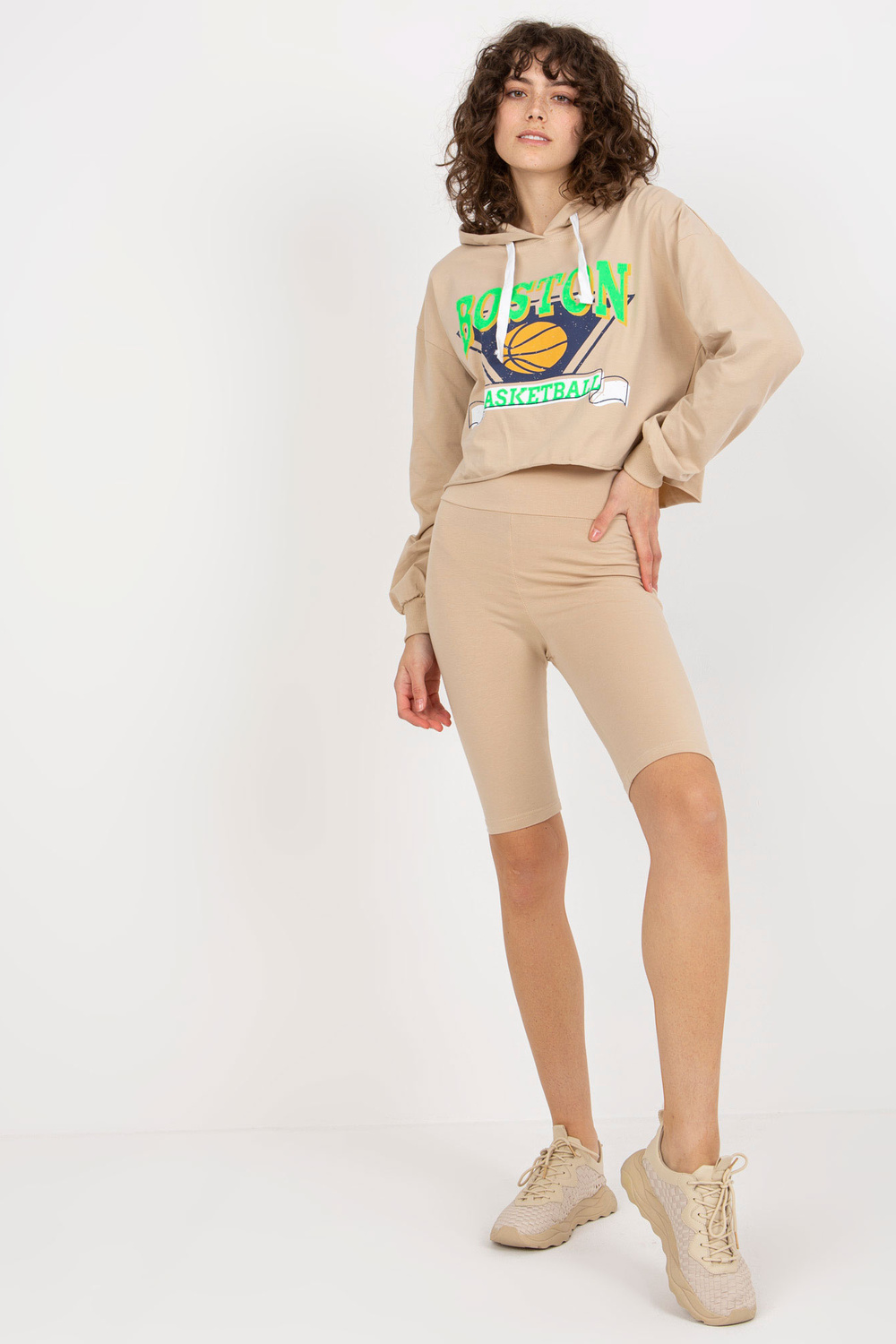 Beež vabaaja komplekt jalgratturi lühikeste pükstega.