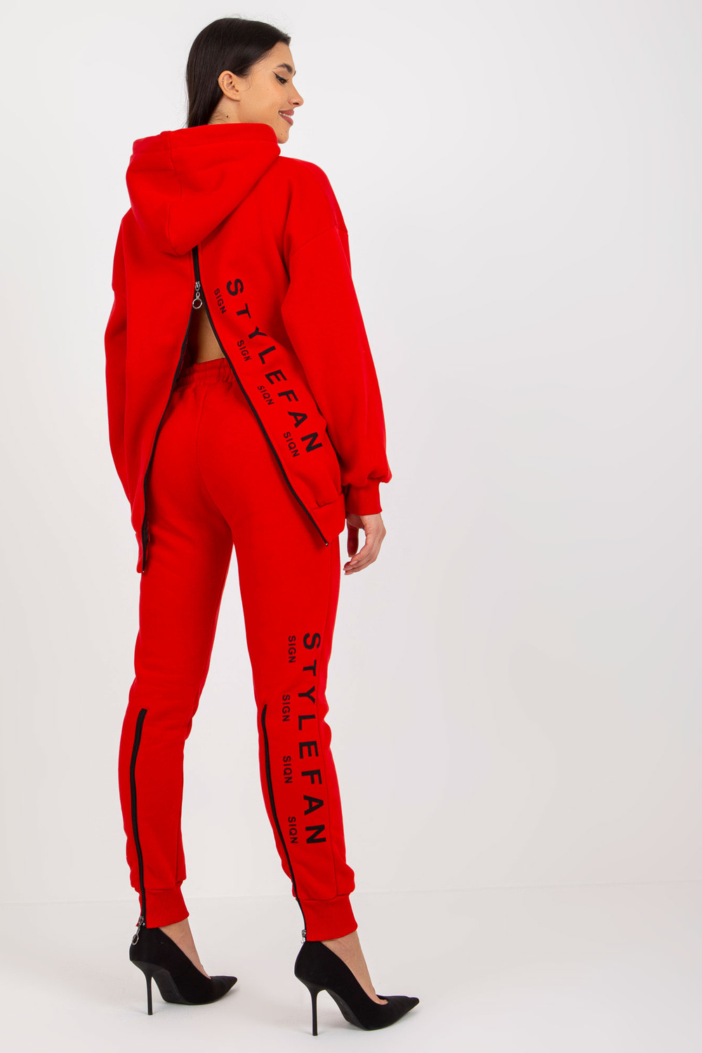 Punane naiste dressipluus tekstide ja tõmblukuga.