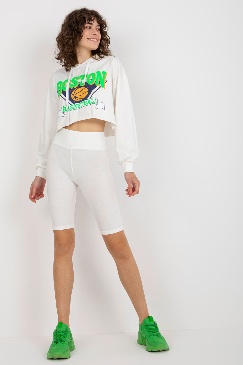 Ecru vabaaja komplekt mustriga dressipluusi ja jalgrattasõiduga.