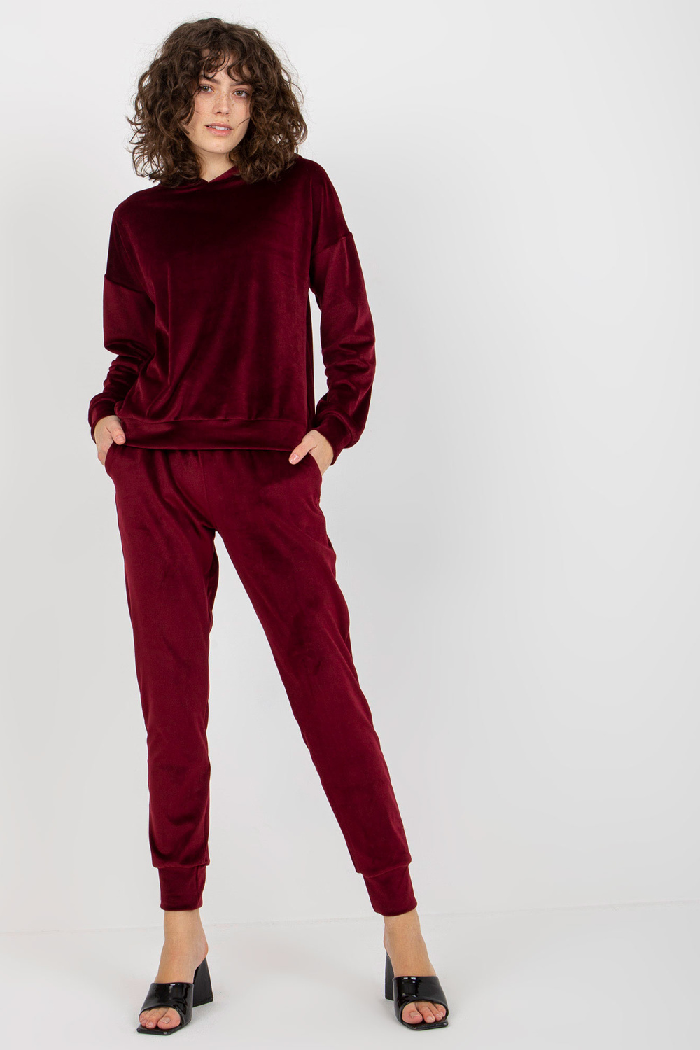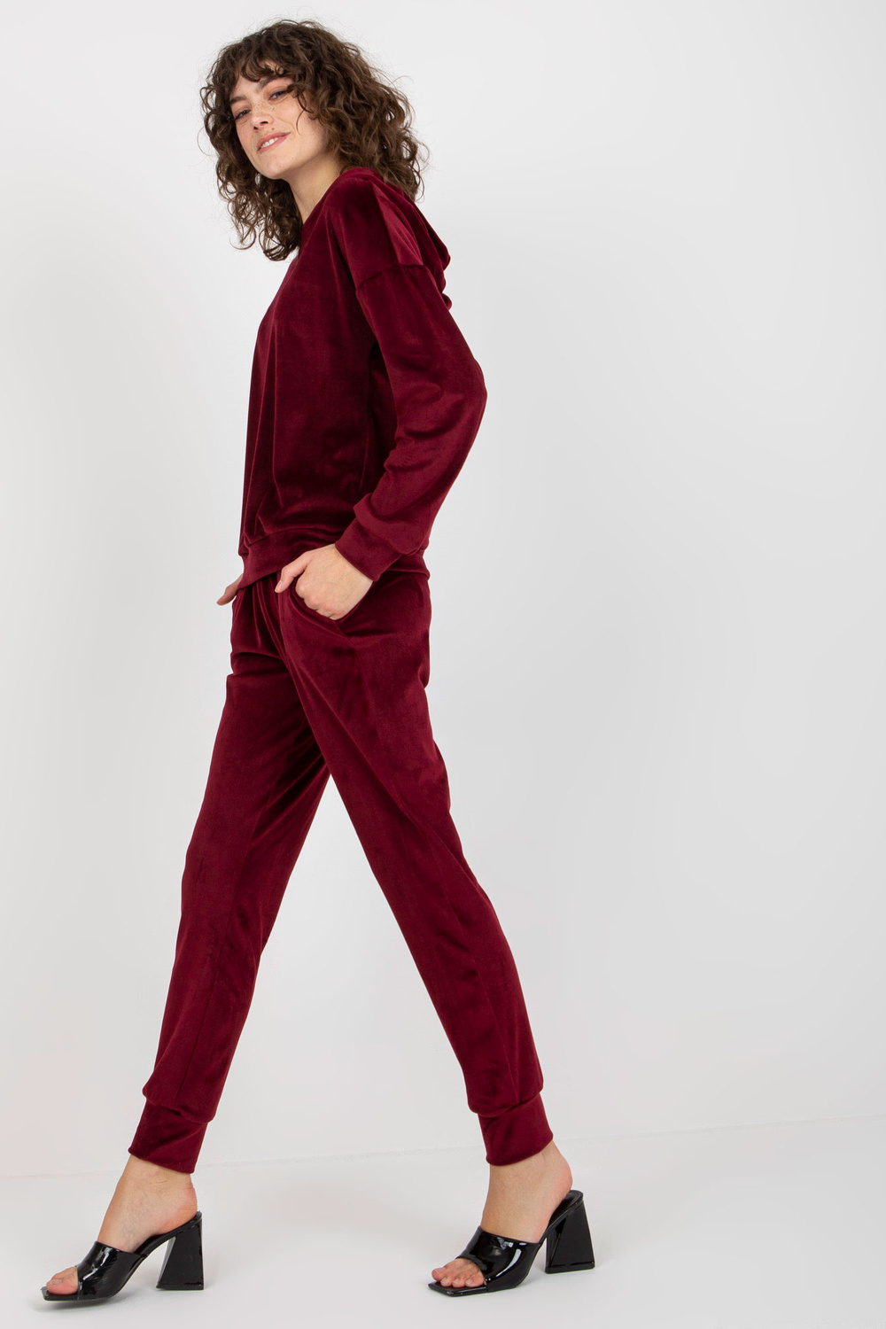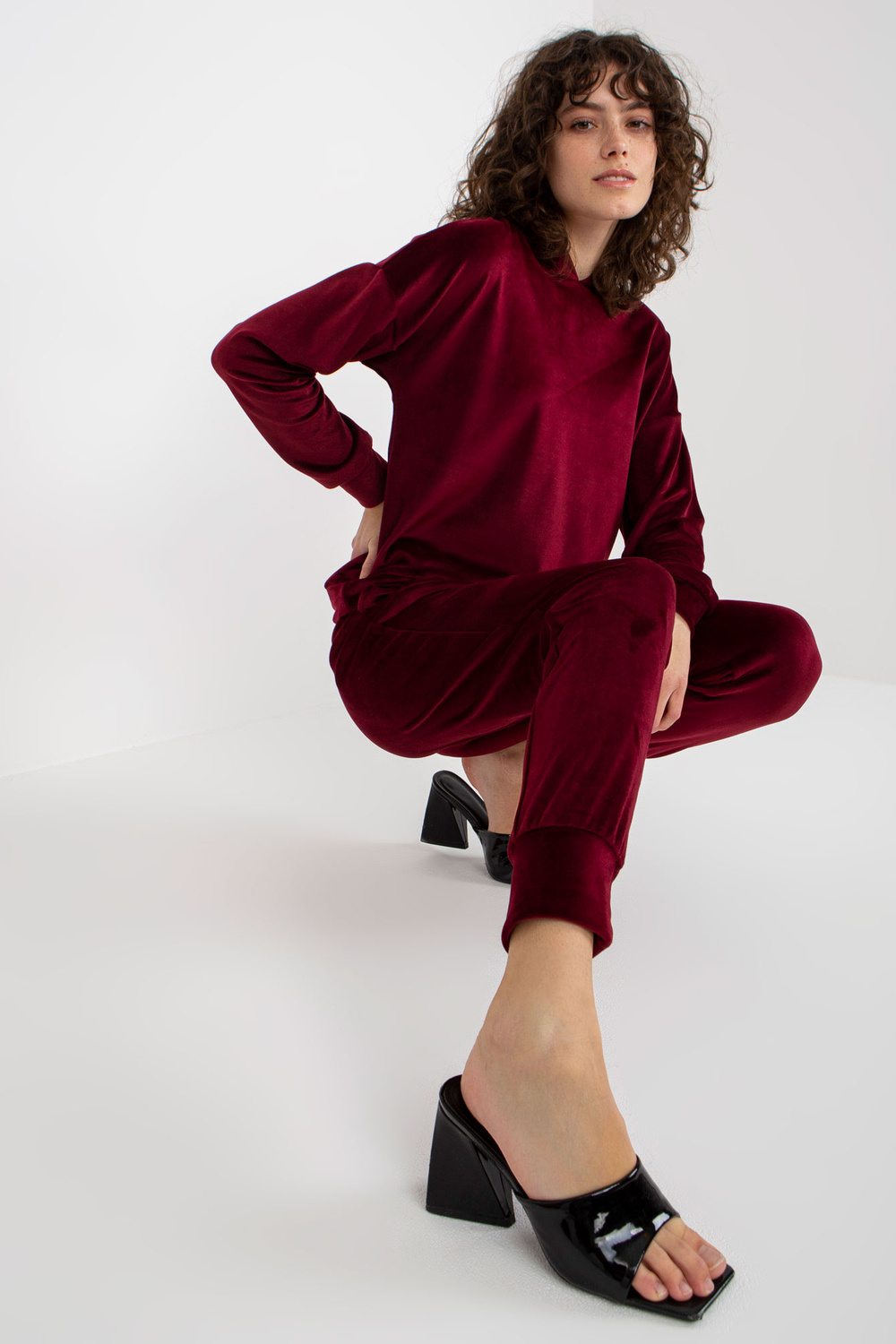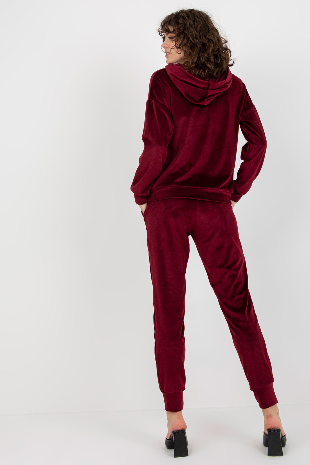 Burgundia naiste veluurkomplekt koos kapuutsiga.