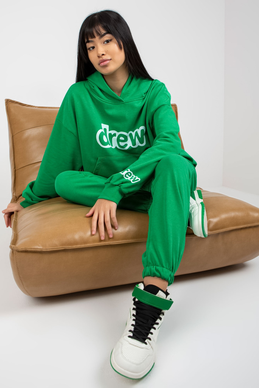 Roheline kaheosaline tekstidega dressikomplekt.