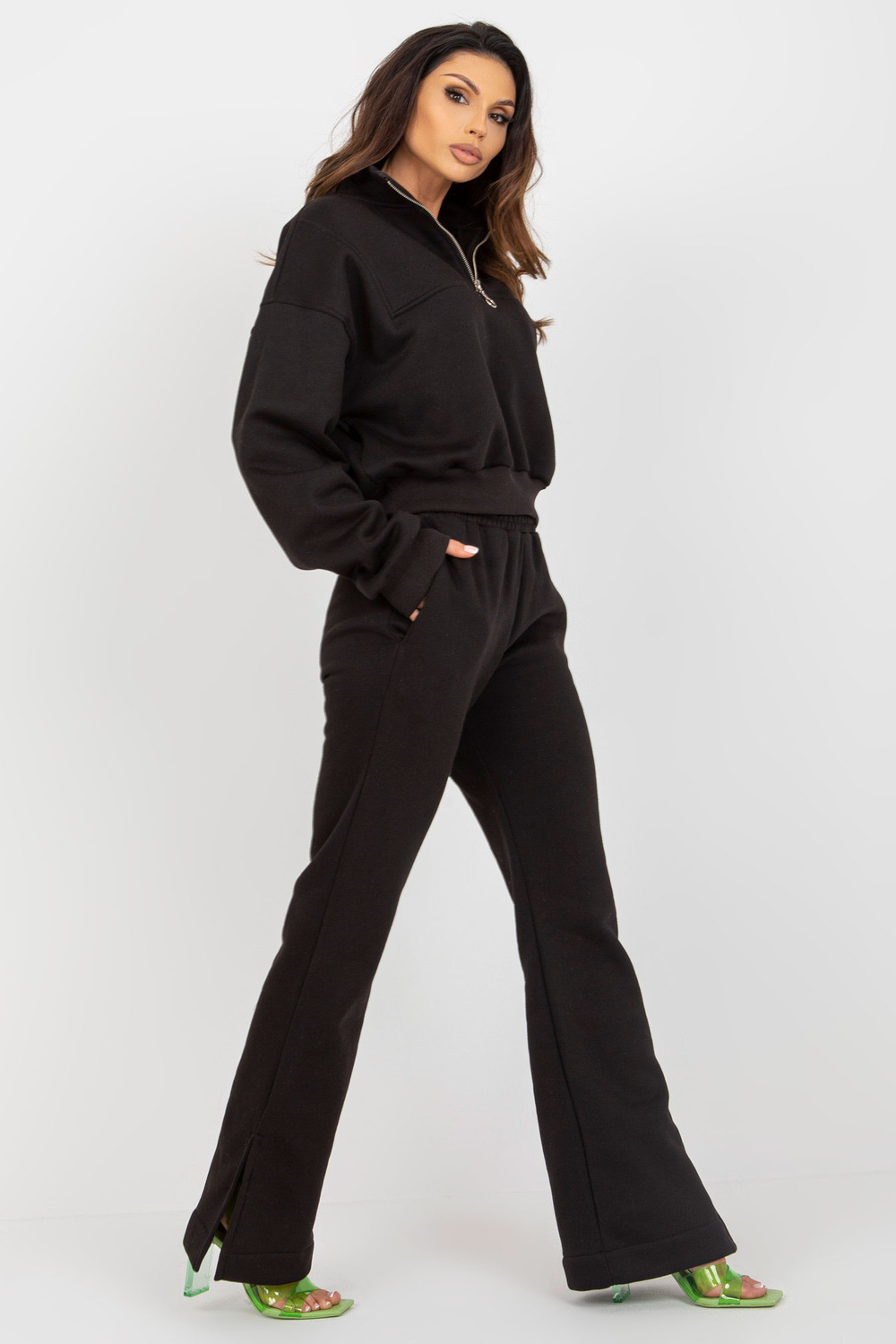 Komplekti mõõdud suuruses one, mõõdetuna tasapinnaliselt: dressipluusi laius all käed - 60 cm, varruka pikkus - 66 cm, dressipluusi pikkus - 58 cm, pükste vöö laius - 35 cm, vöö kõrgus - 34 cm, pükste pikkus - 107 cm.
