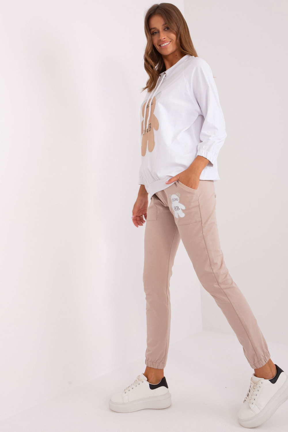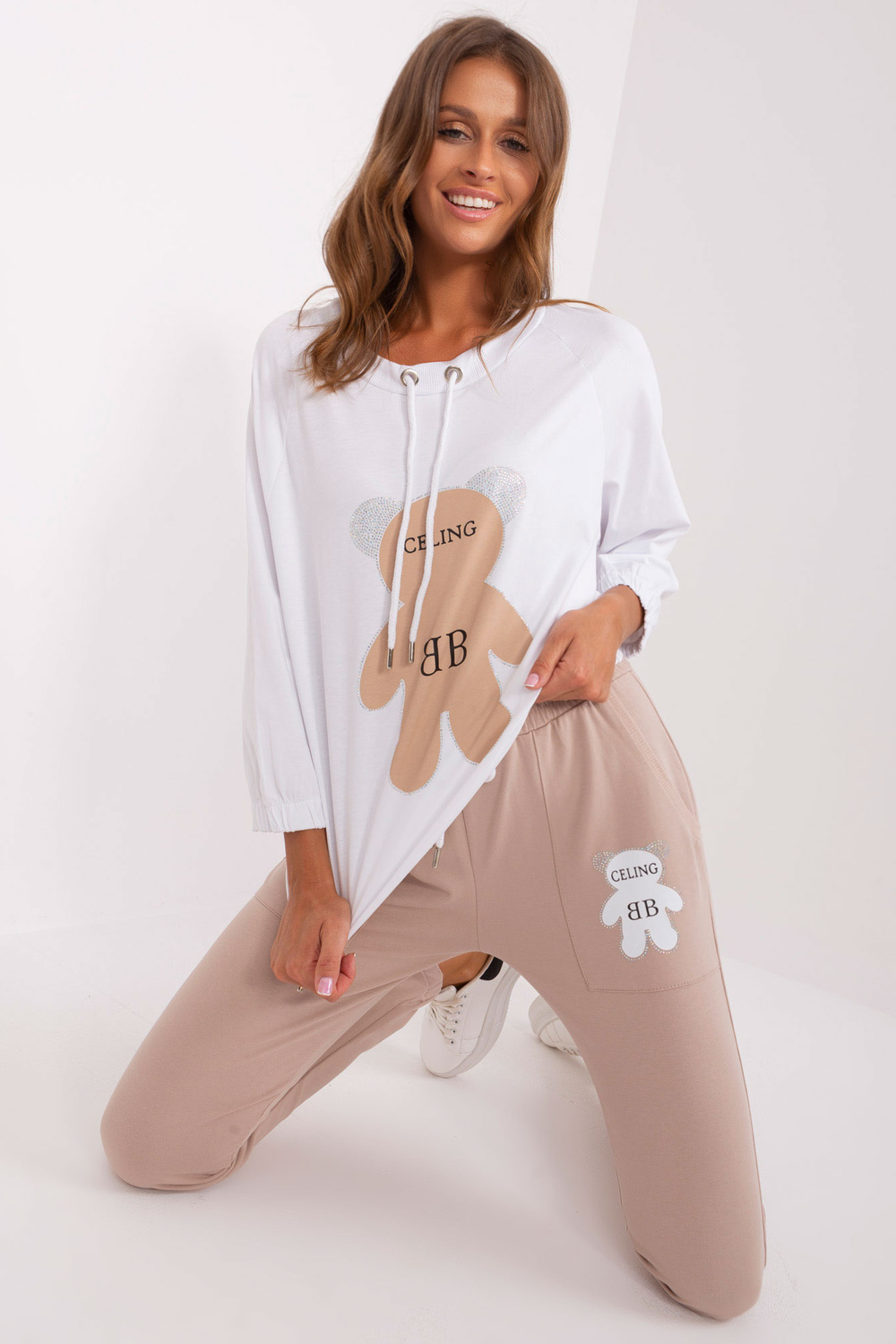 Komplekti mõõdud S/M suuruses mõõdetuna tasapinnaliselt: dressipluusi laius all käed - 60 cm, varruka pikkus - 55 cm, dressipluusi pikkus - 68 cm, pükste vöö laius - 36 cm, vöö kõrgus - 32 cm, pükste pikkus - 98 cm.