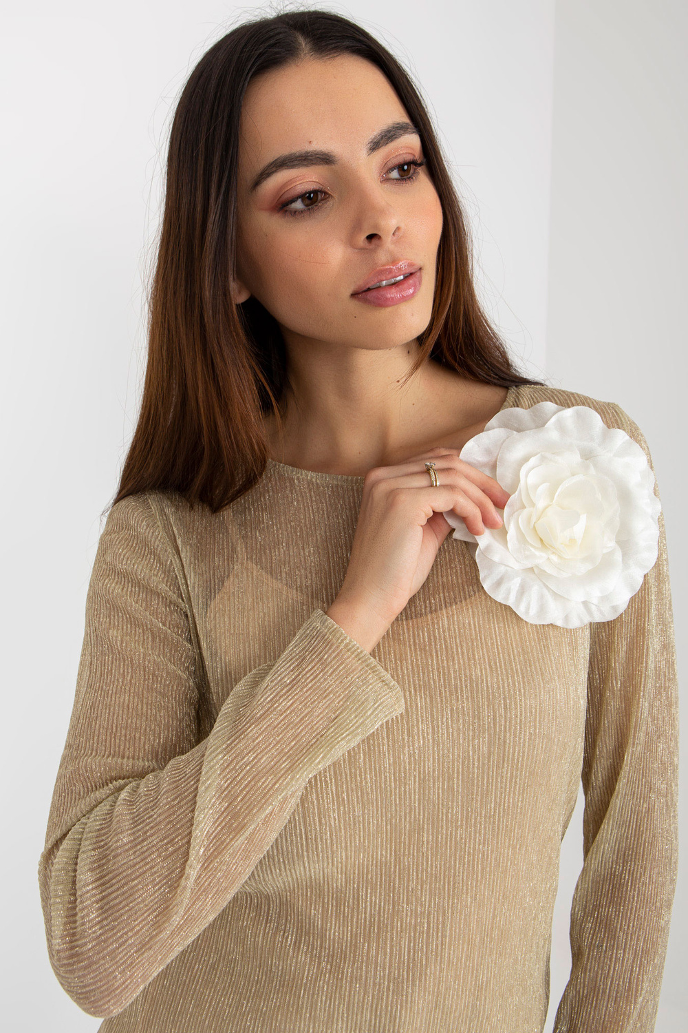 Kuldbeež kaheosaline prossiga pidulik pluus