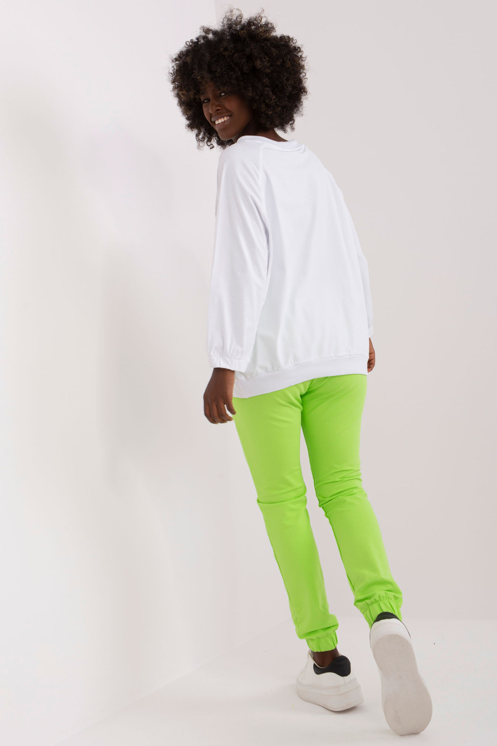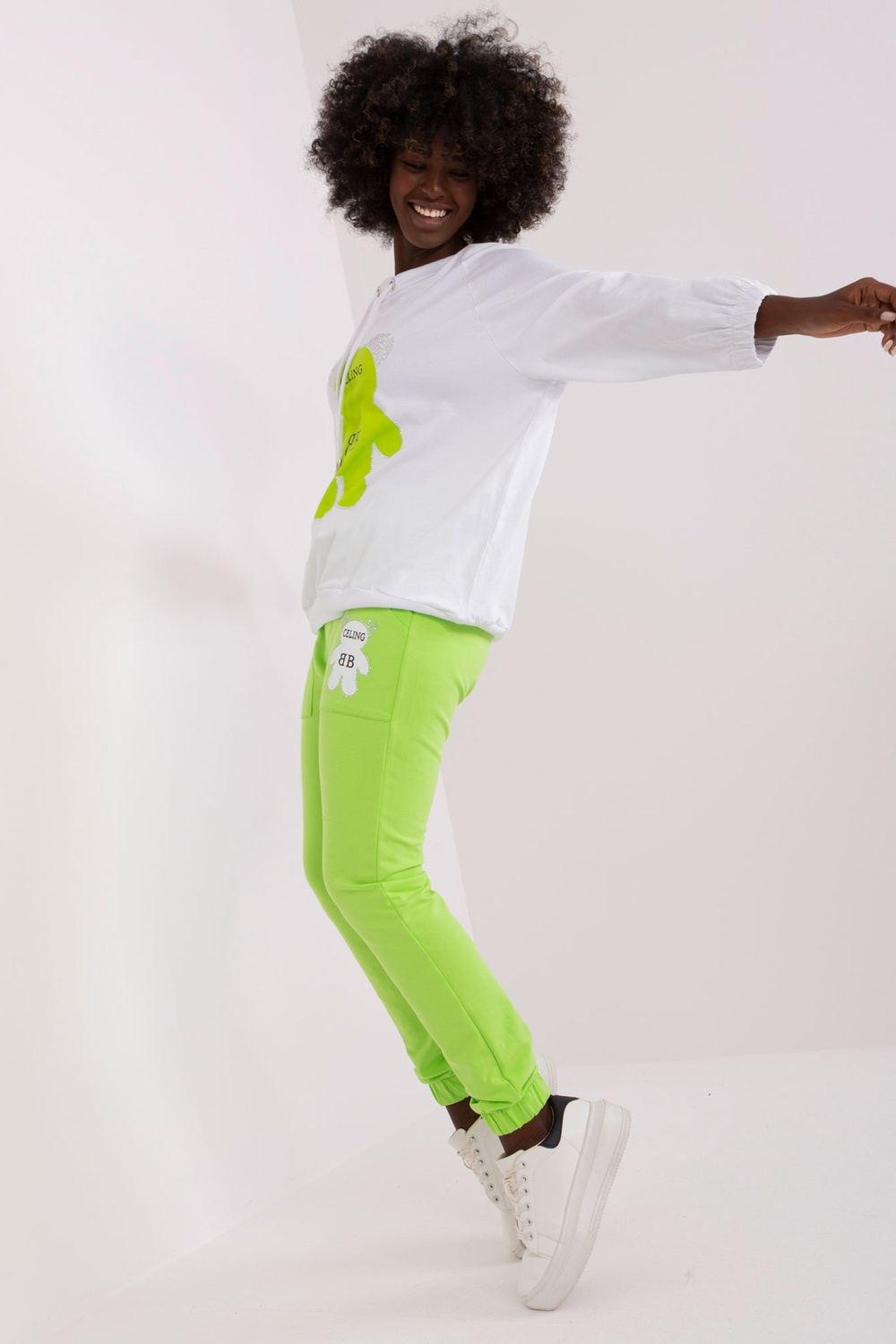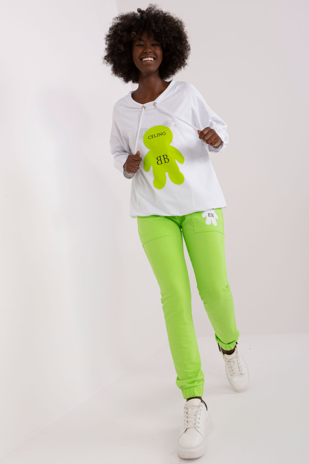 Komplekti mõõdud S/M suuruses mõõdetuna tasapinnaliselt: dressipluusi laius all käed - 60 cm, varruka pikkus - 55 cm, dressipluusi pikkus - 68 cm, pükste vöö laius - 36 cm, vöö kõrgus - 32 cm, pükste pikkus - 98 cm.