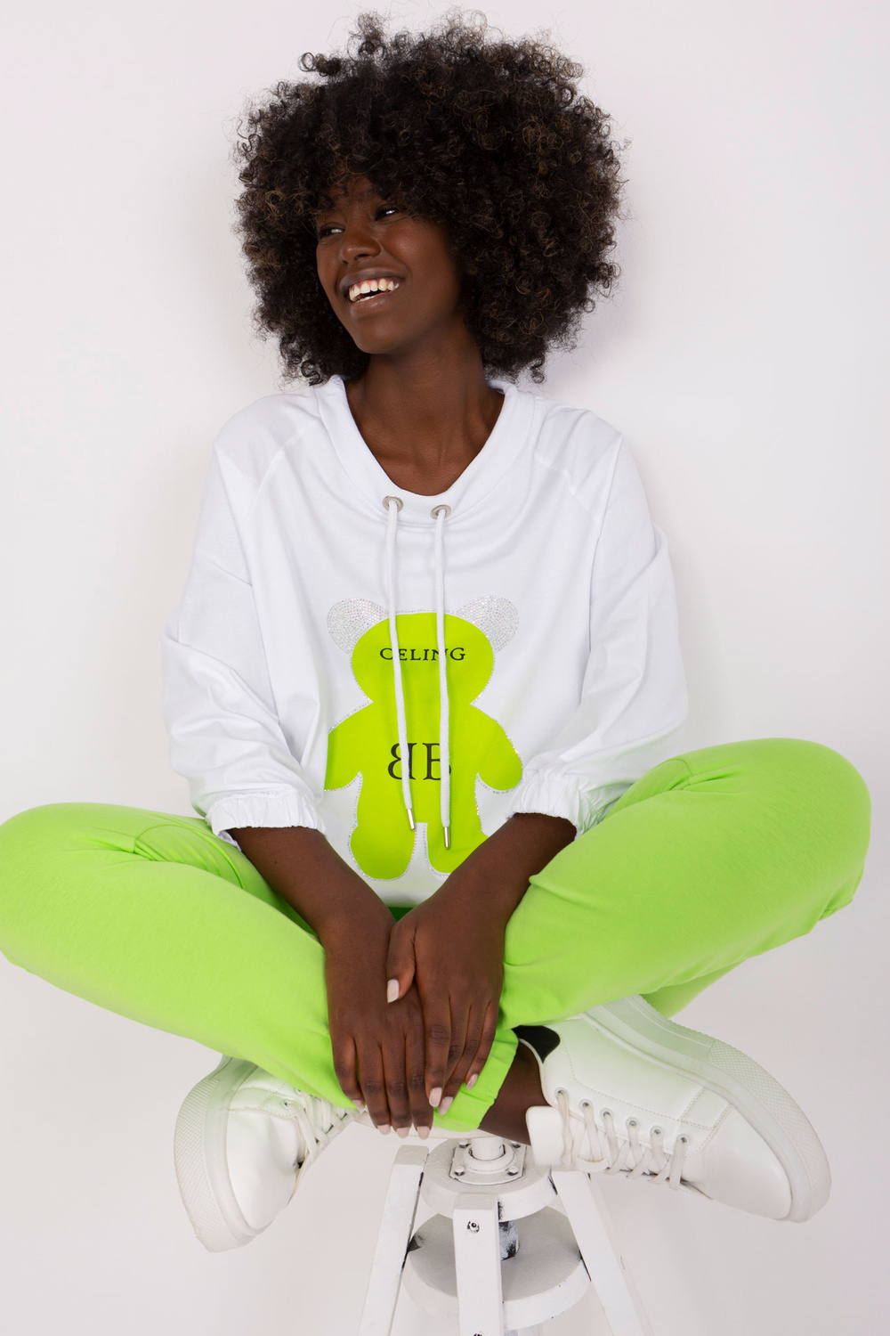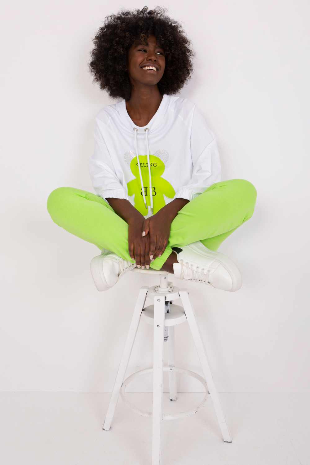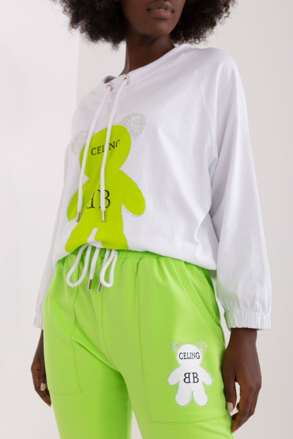Komplekti mõõdud S/M suuruses mõõdetuna tasapinnaliselt: dressipluusi laius all käed - 60 cm, varruka pikkus - 55 cm, dressipluusi pikkus - 68 cm, pükste vöö laius - 36 cm, vöö kõrgus - 32 cm, pükste pikkus - 98 cm.