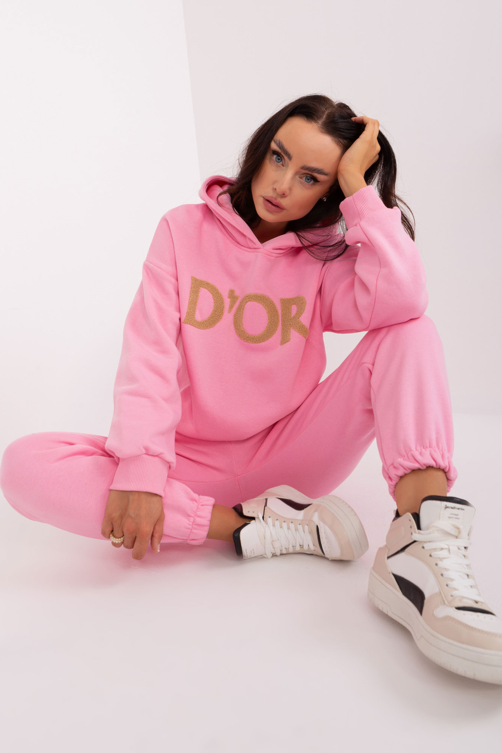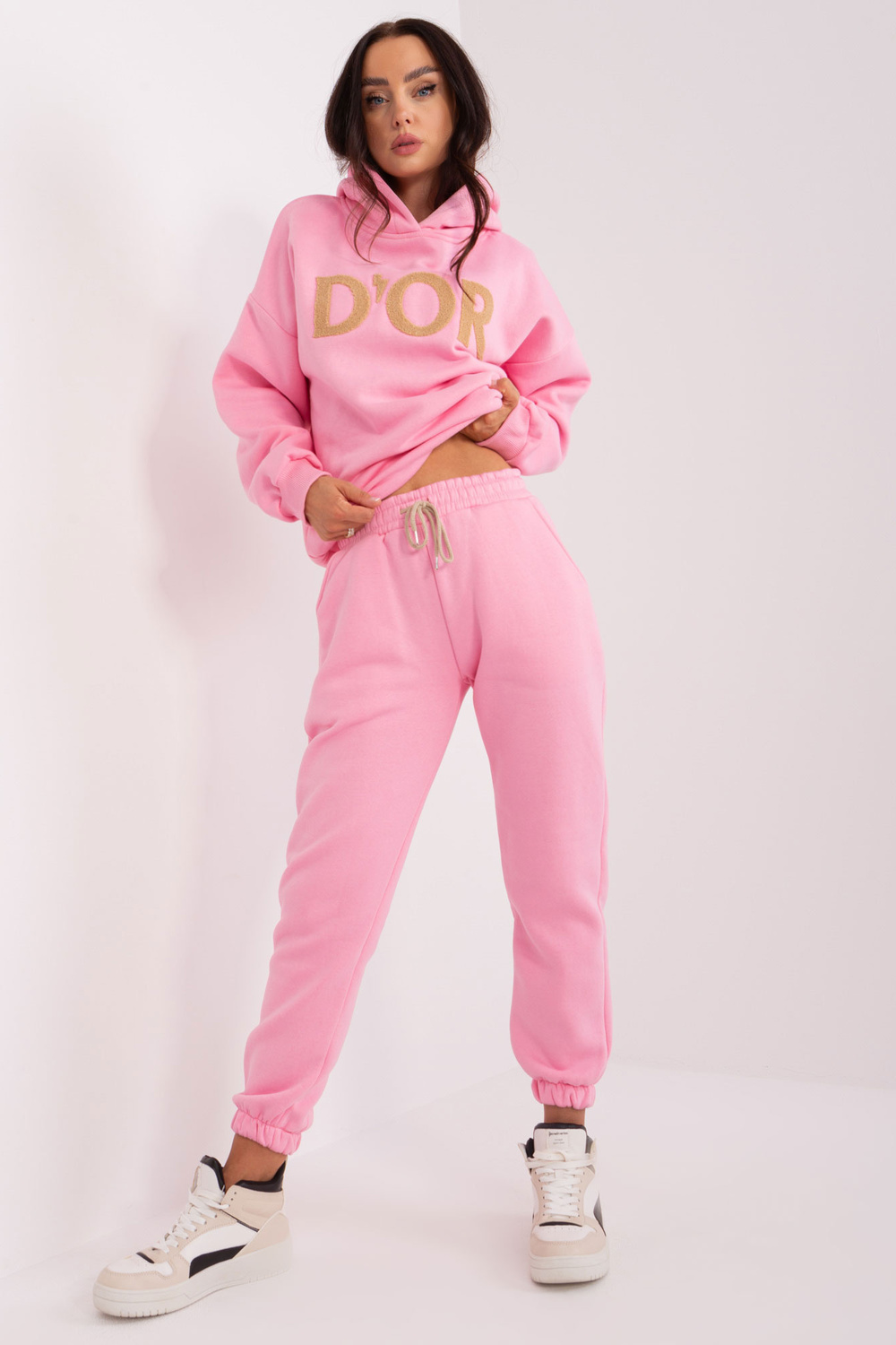 Komplekti mõõdud suuruses one, mõõdetuna tasapinnaliselt: dressipluusi laius all käed - 53 cm, varruka pikkus - 60 cm, dressipluusi pikkus - 67 cm, pükste vöö laius - 38 cm, vöö kõrgus - 29 cm, pükste pikkus - 90 cm.