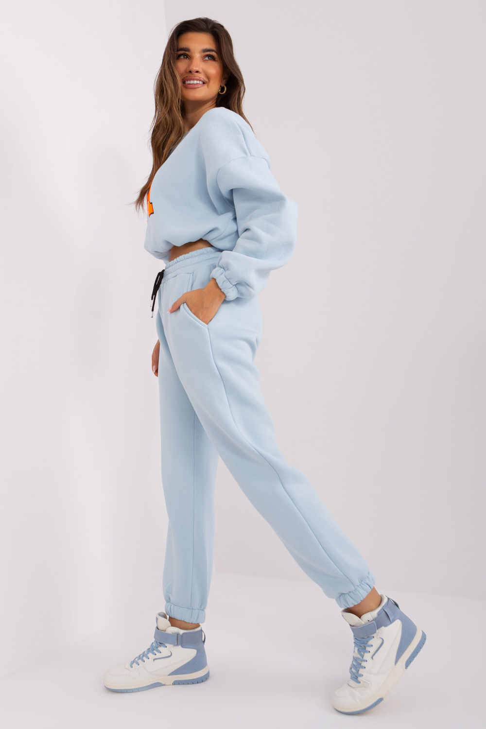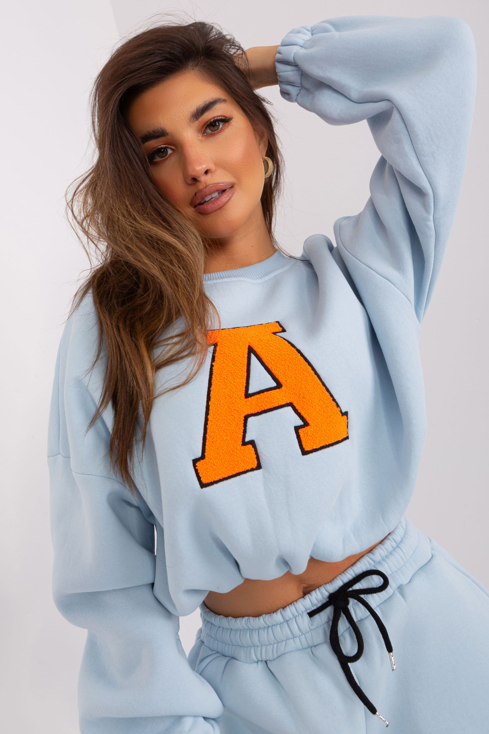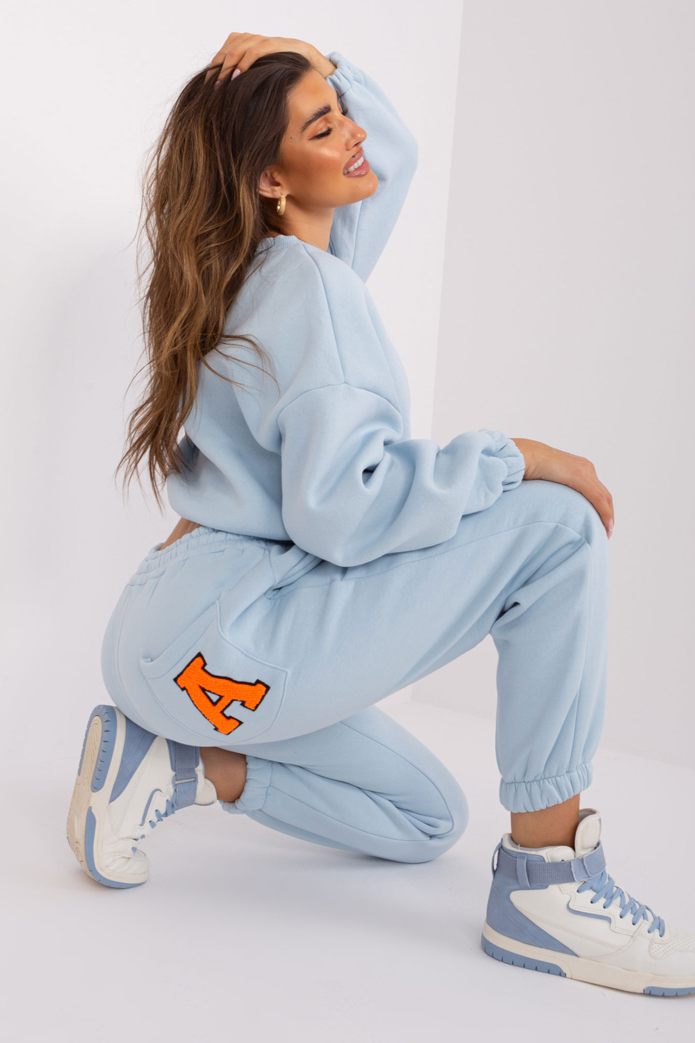 Komplekti mõõdud suuruses one, mõõdetuna tasapinnaliselt: dressipluusi laius all käed - 58 cm, varruka pikkus - 60 cm, dressipluusi pikkus - 50 cm, pükste vöö laius - 38 cm, vöö kõrgus - 29 cm, pükste pikkus - 93 cm.