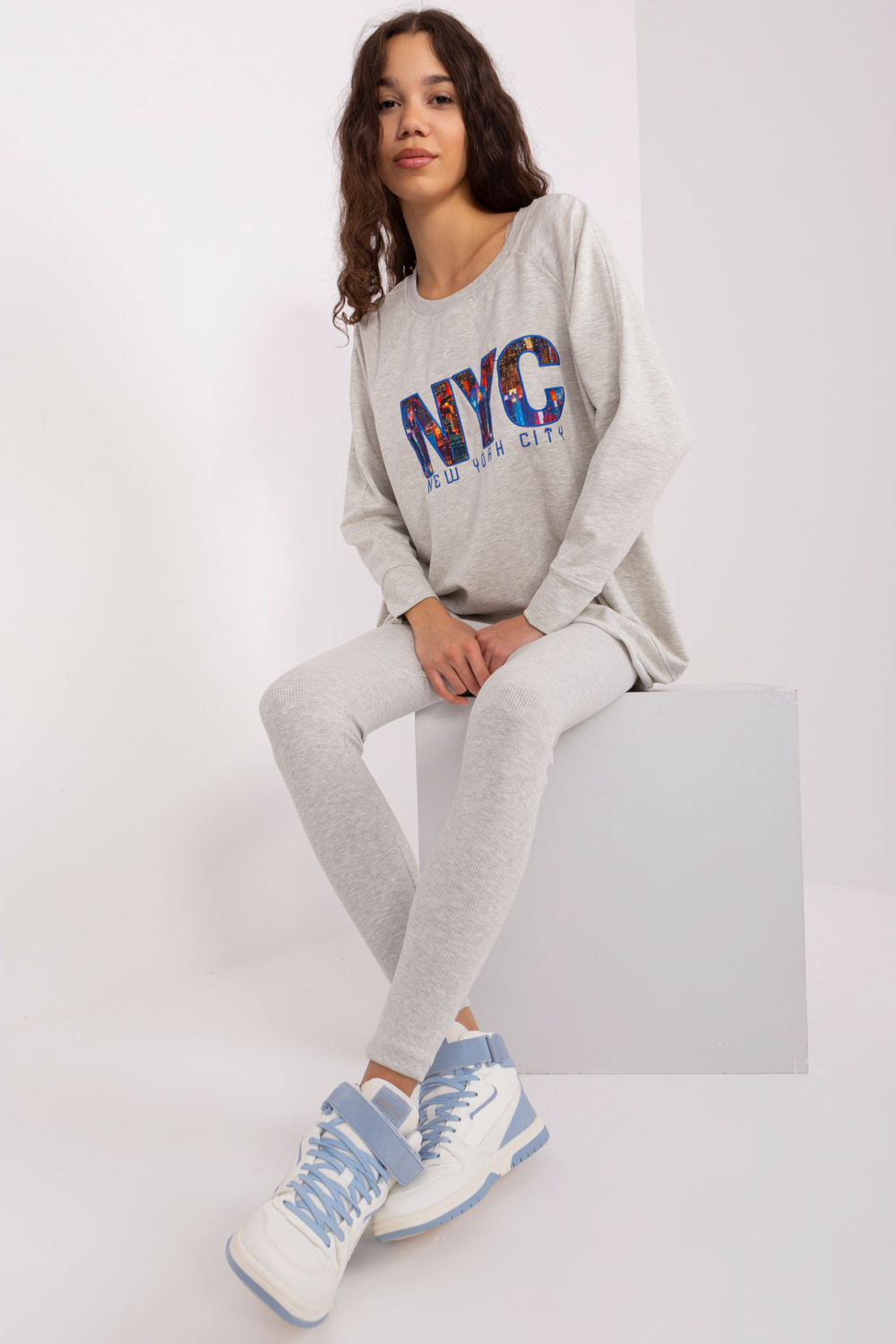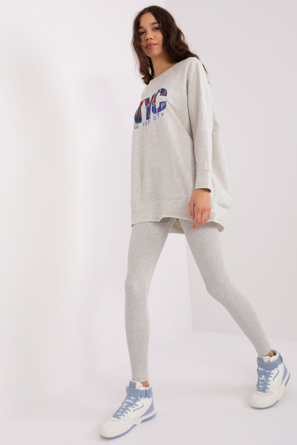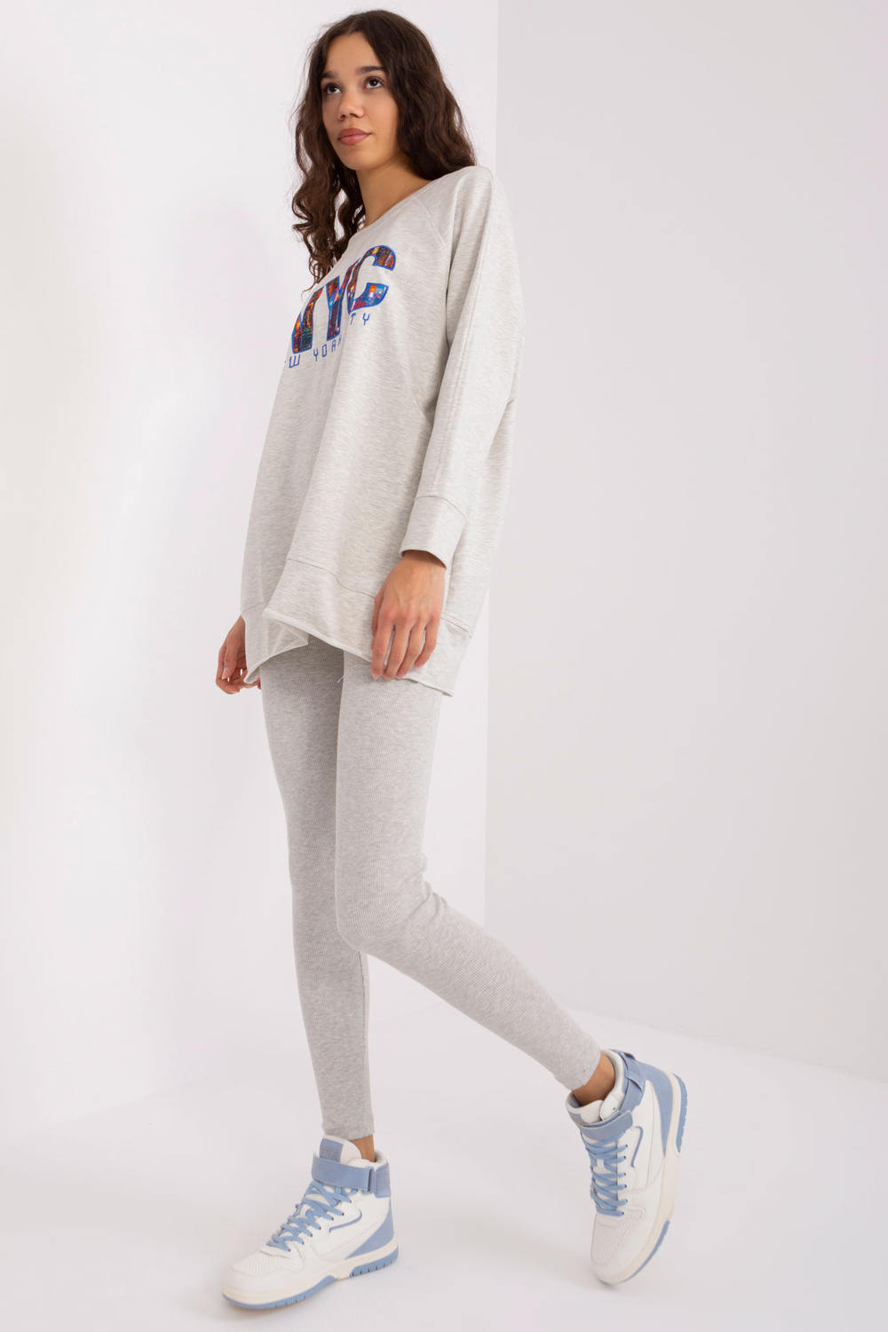 Komplekti mõõdud suuruses one, mõõdetuna tasapinnaliselt: dressipluusi laius all käed - 68 cm varruka pikkus - 58 cm, dressipluusi pikkus - 80 cm, säärised vöö laius - 32 cm, vöö kõrgus - 28 cm, retuuside pikkus - 98 cm.