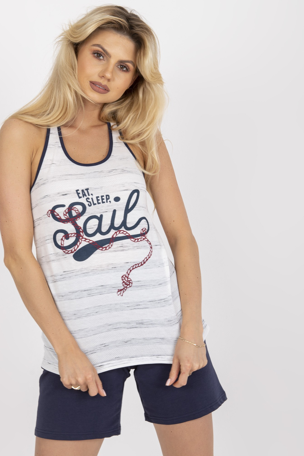 Ecru-tumesinine kaheosaline trükiga pidžaamad .