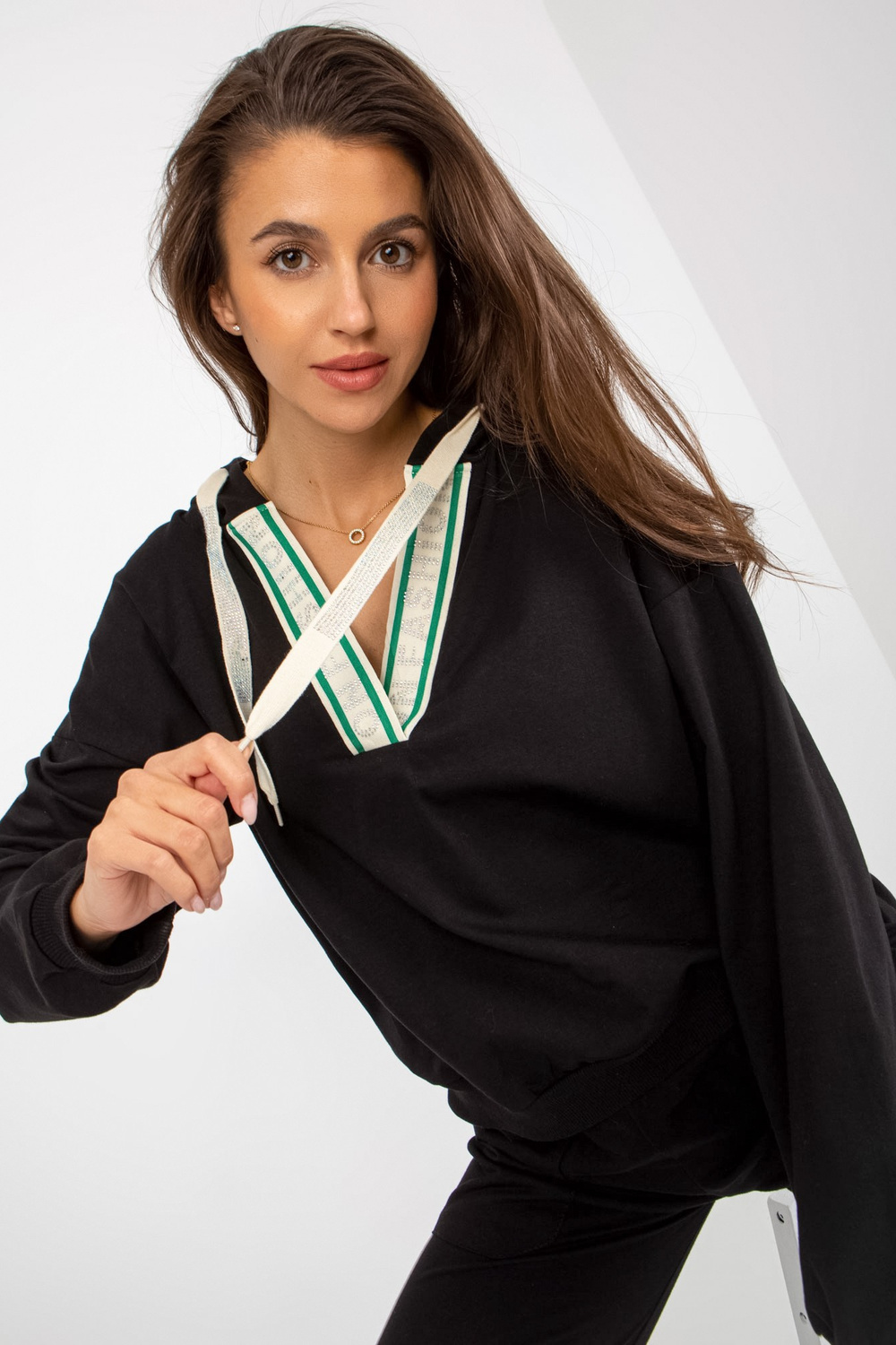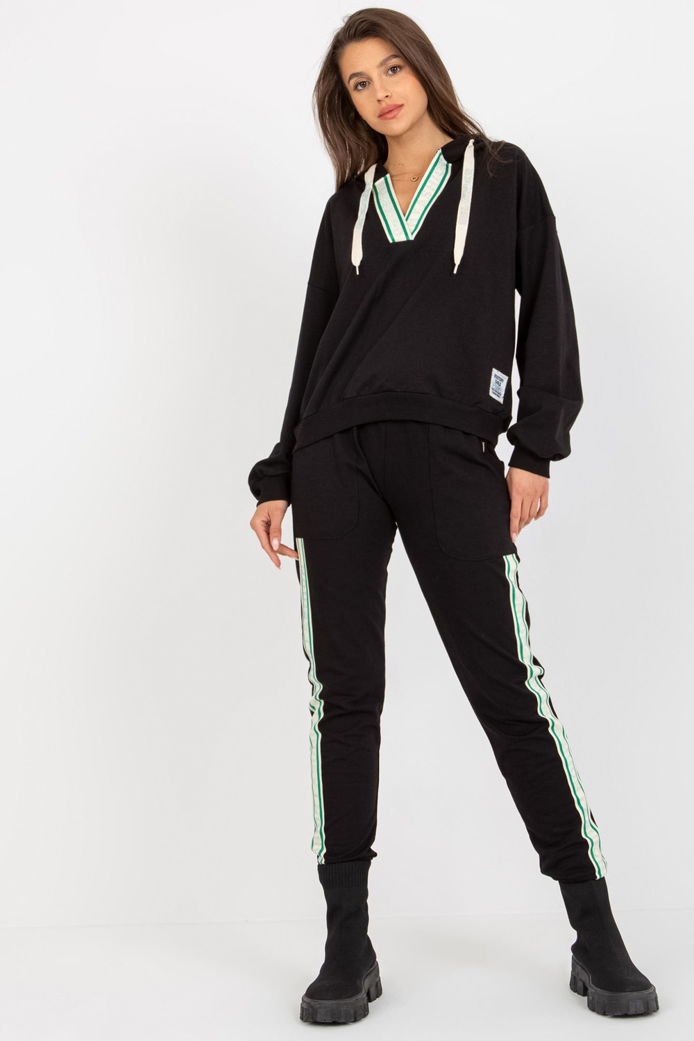 Legeres Set aus schwarzer Baumwolle mit V-Ausschnitt.
